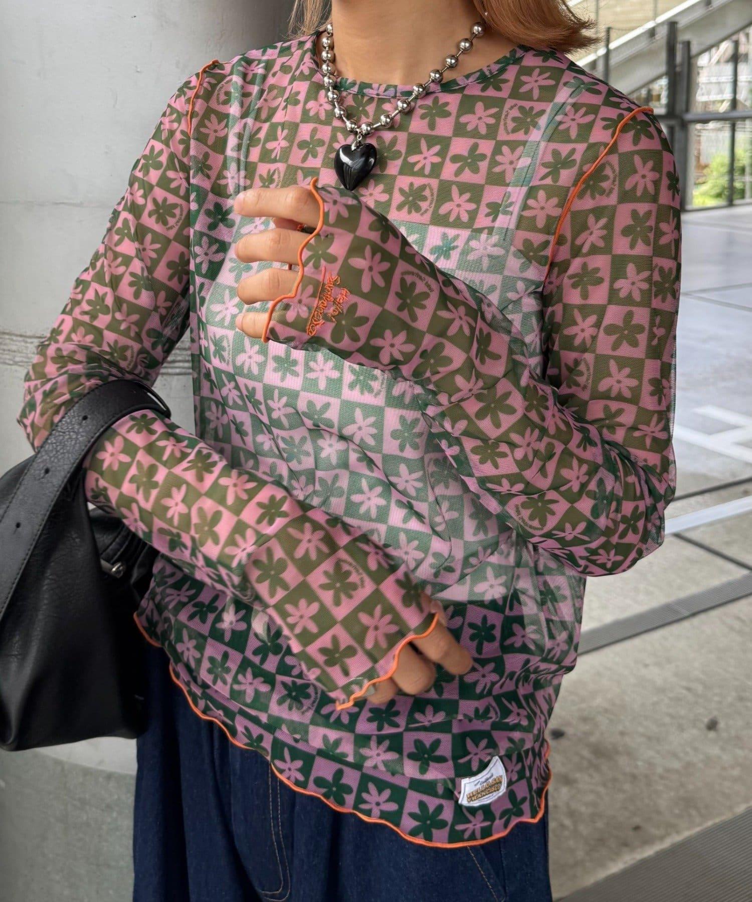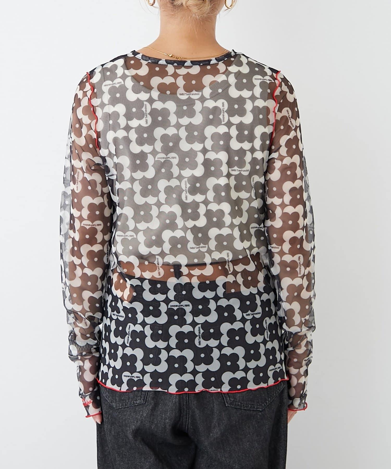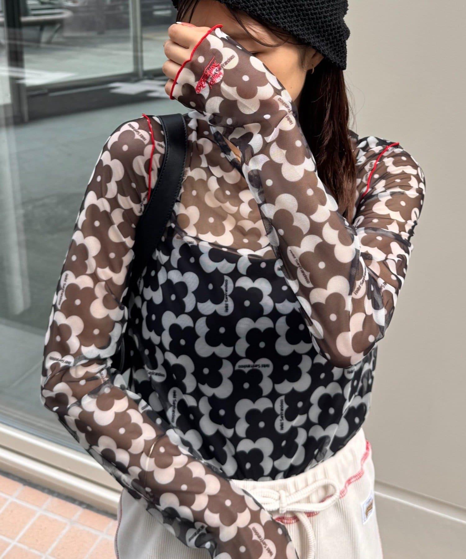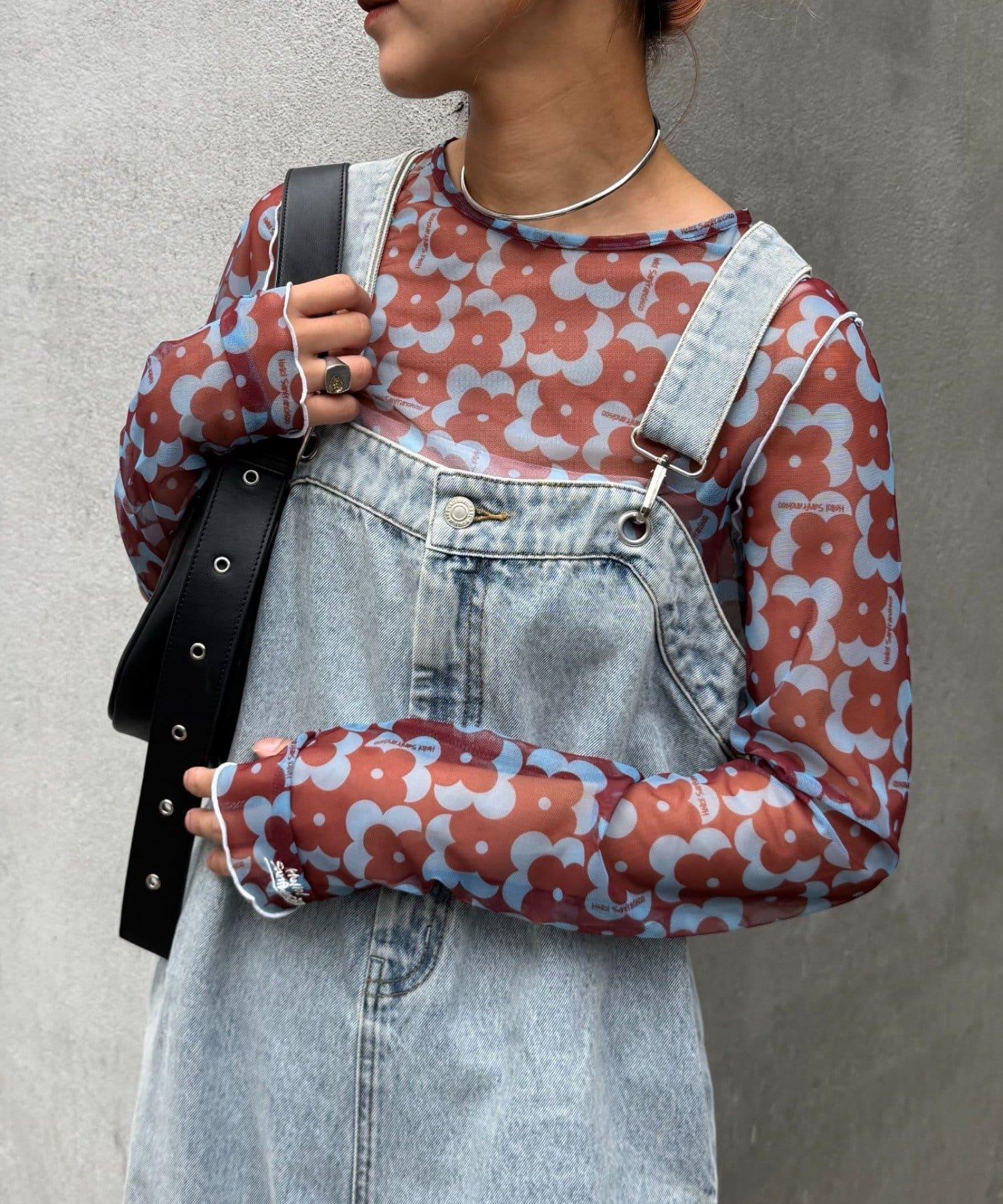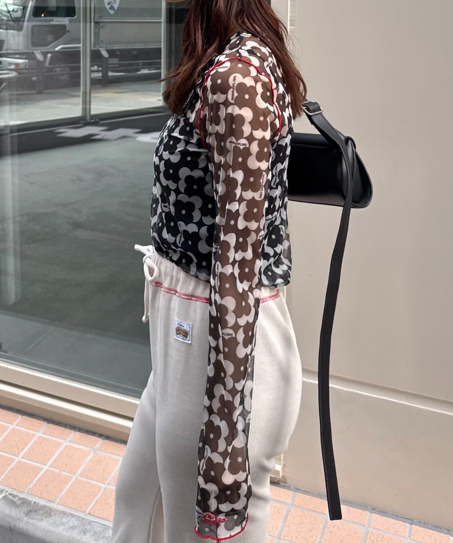 帶有可愛花朵圖案的薄紗上衣,讓層次搭配充滿樂趣。