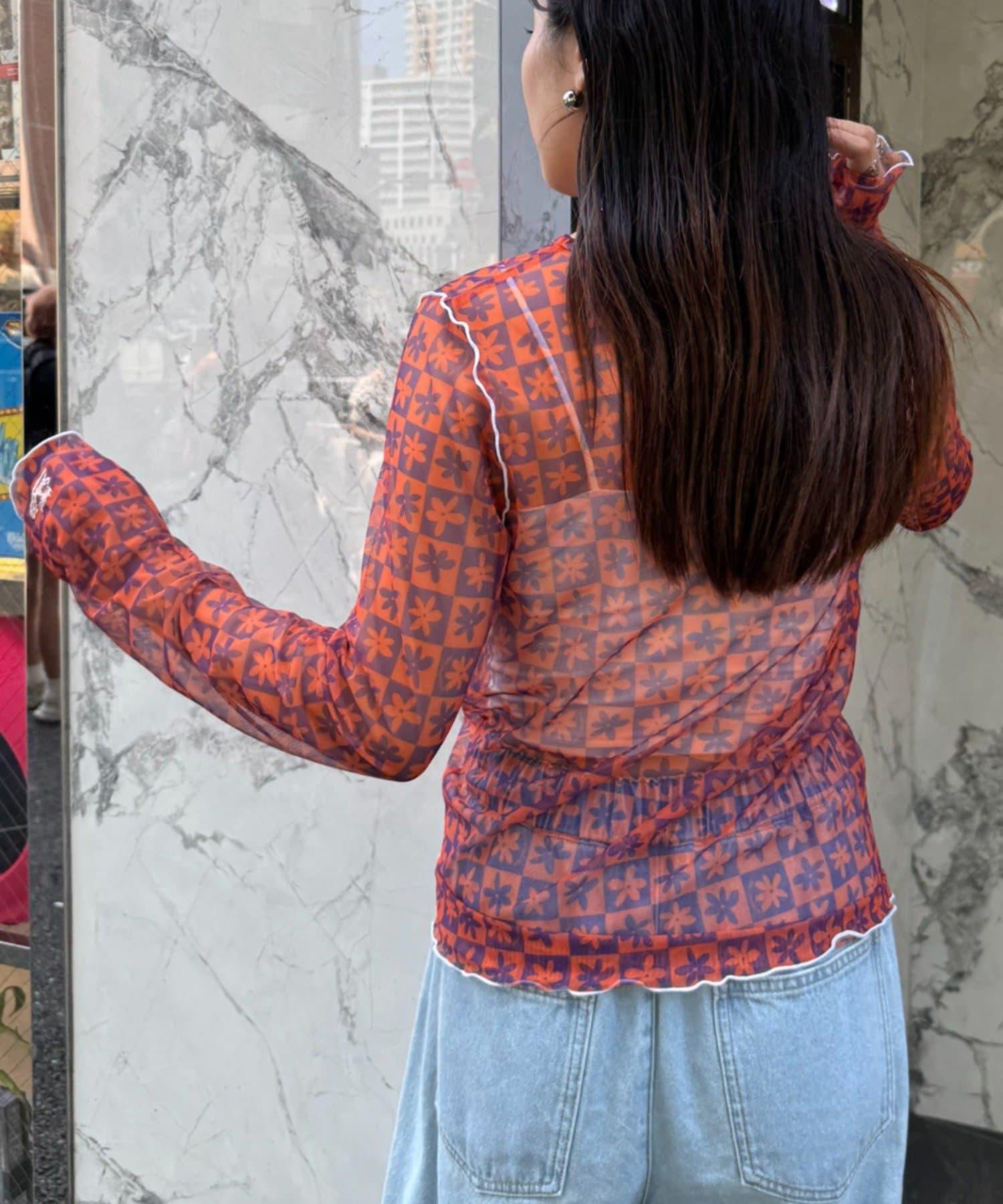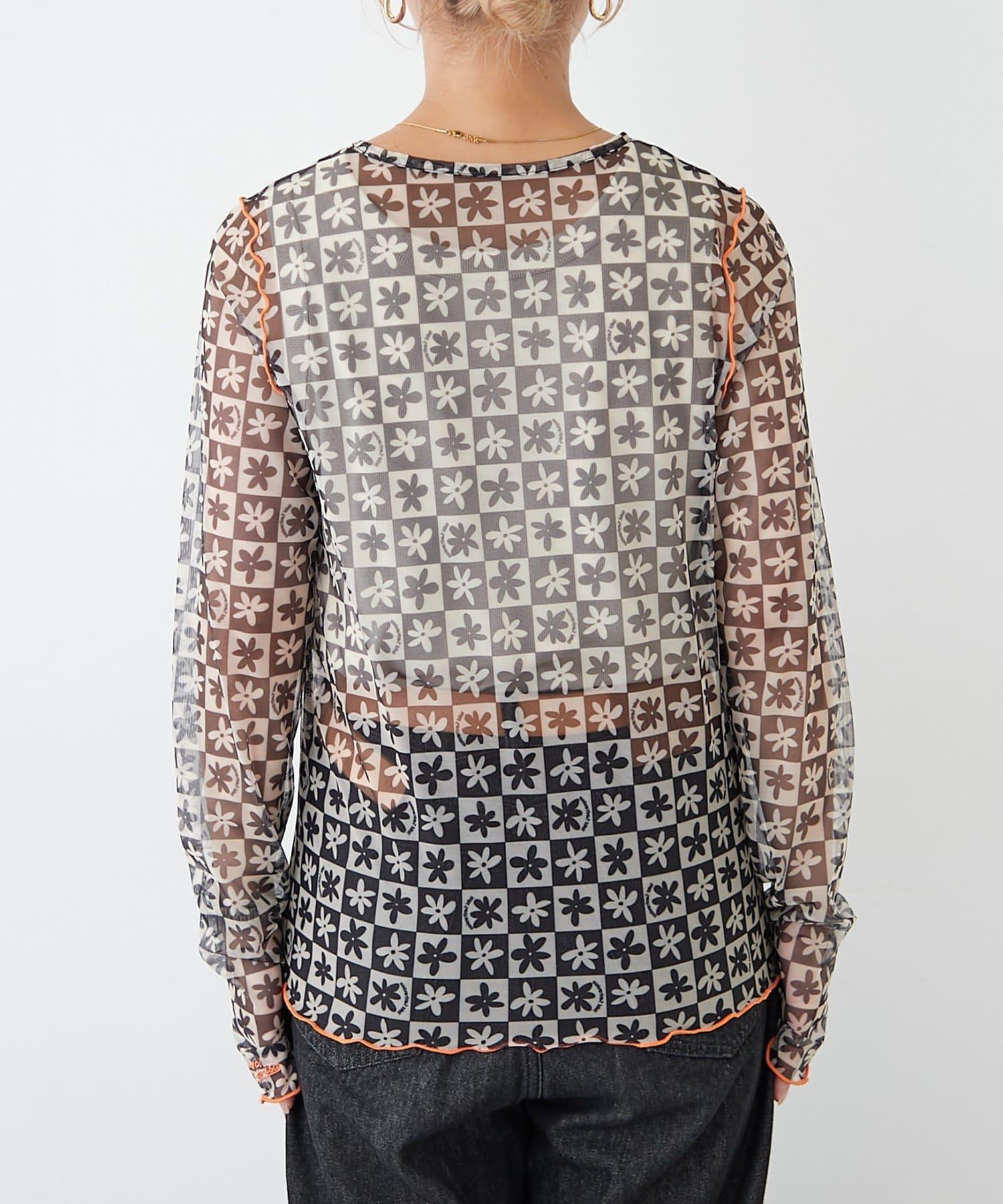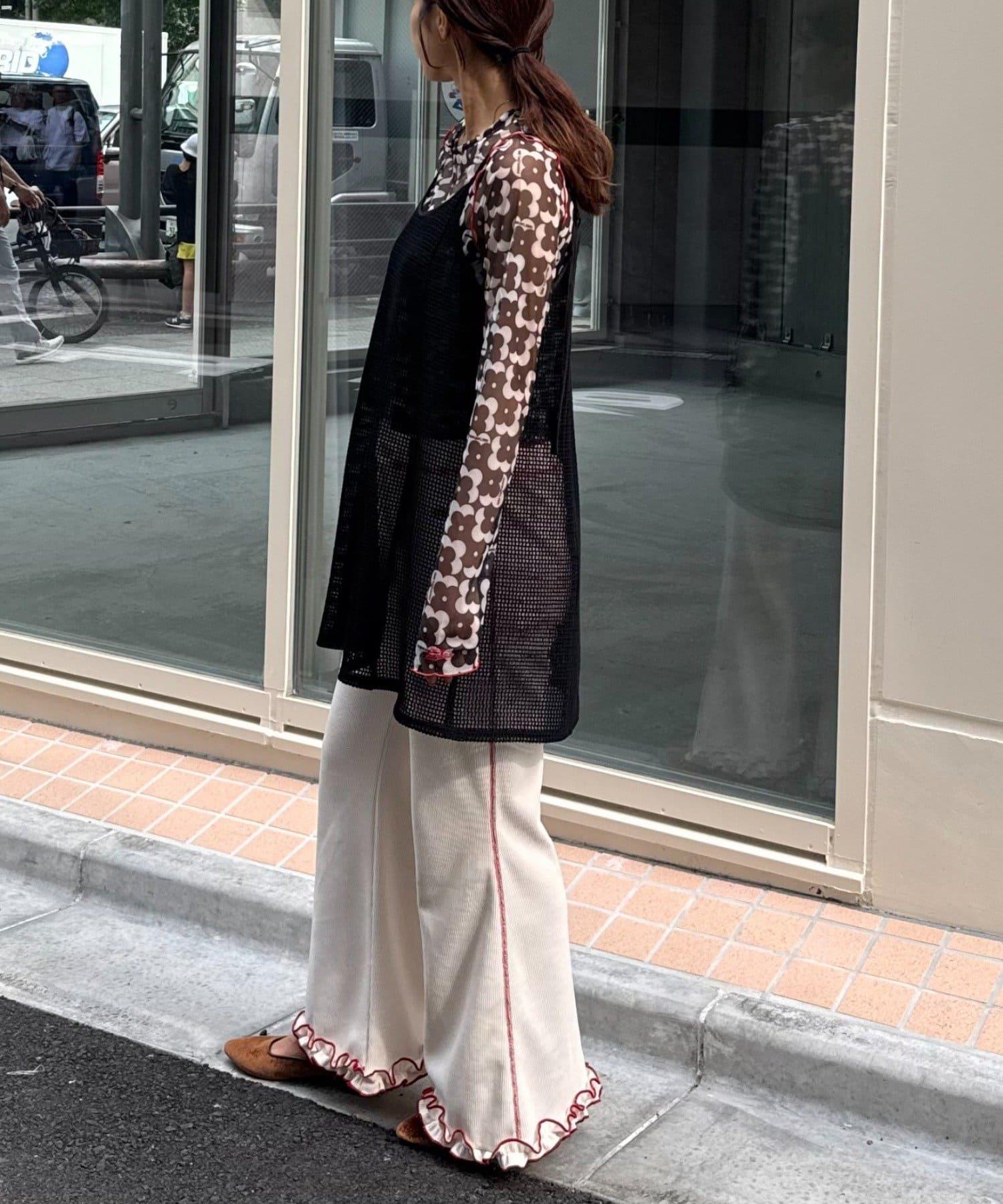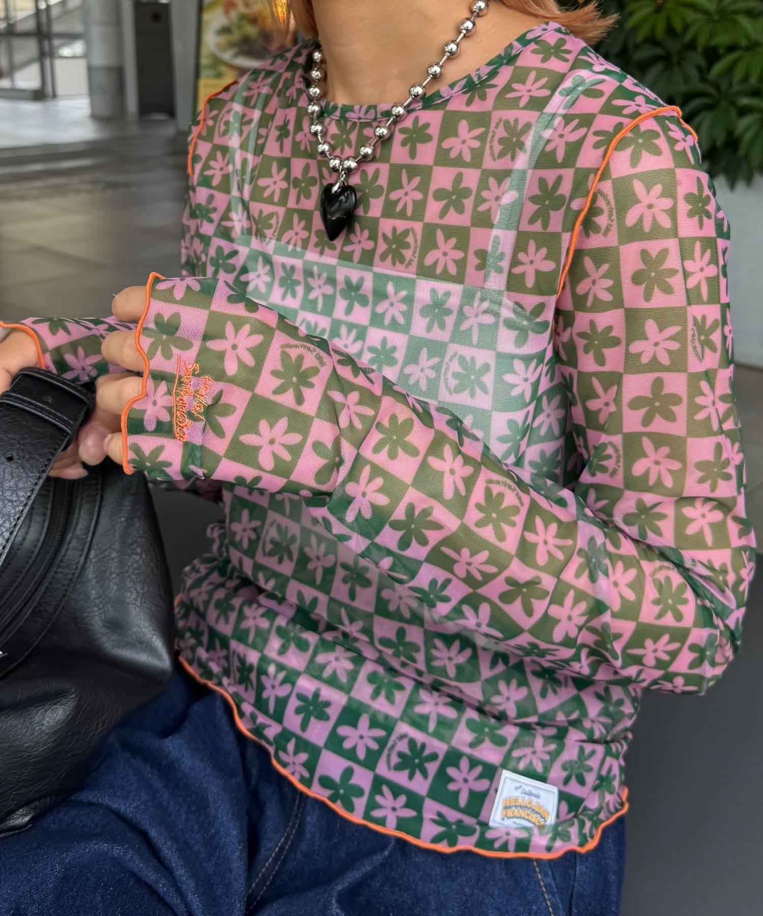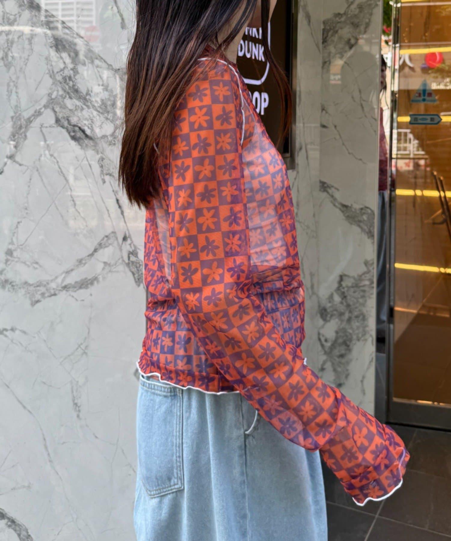 帶有可愛花朵圖案的薄紗上衣,讓層次搭配充滿樂趣。