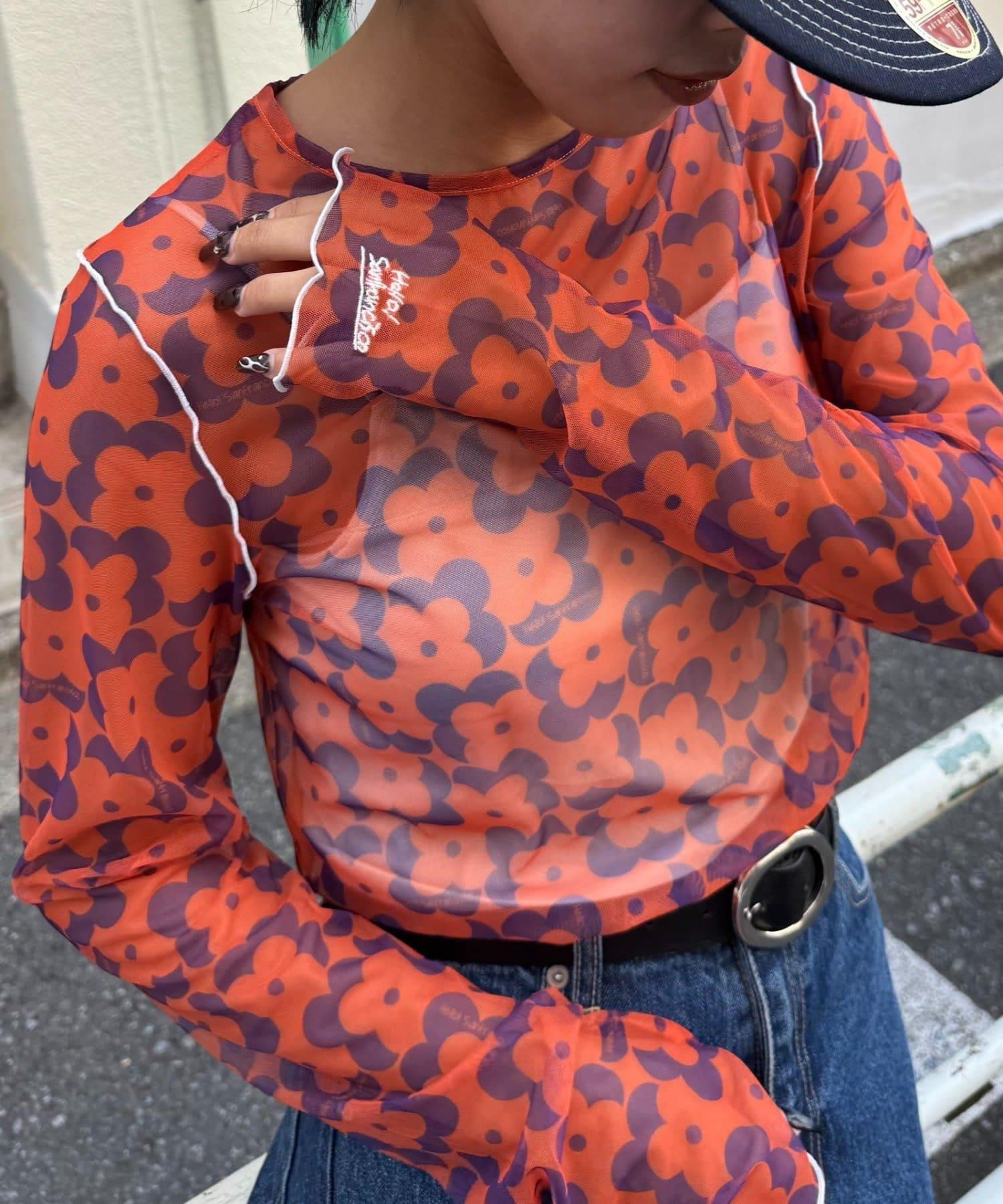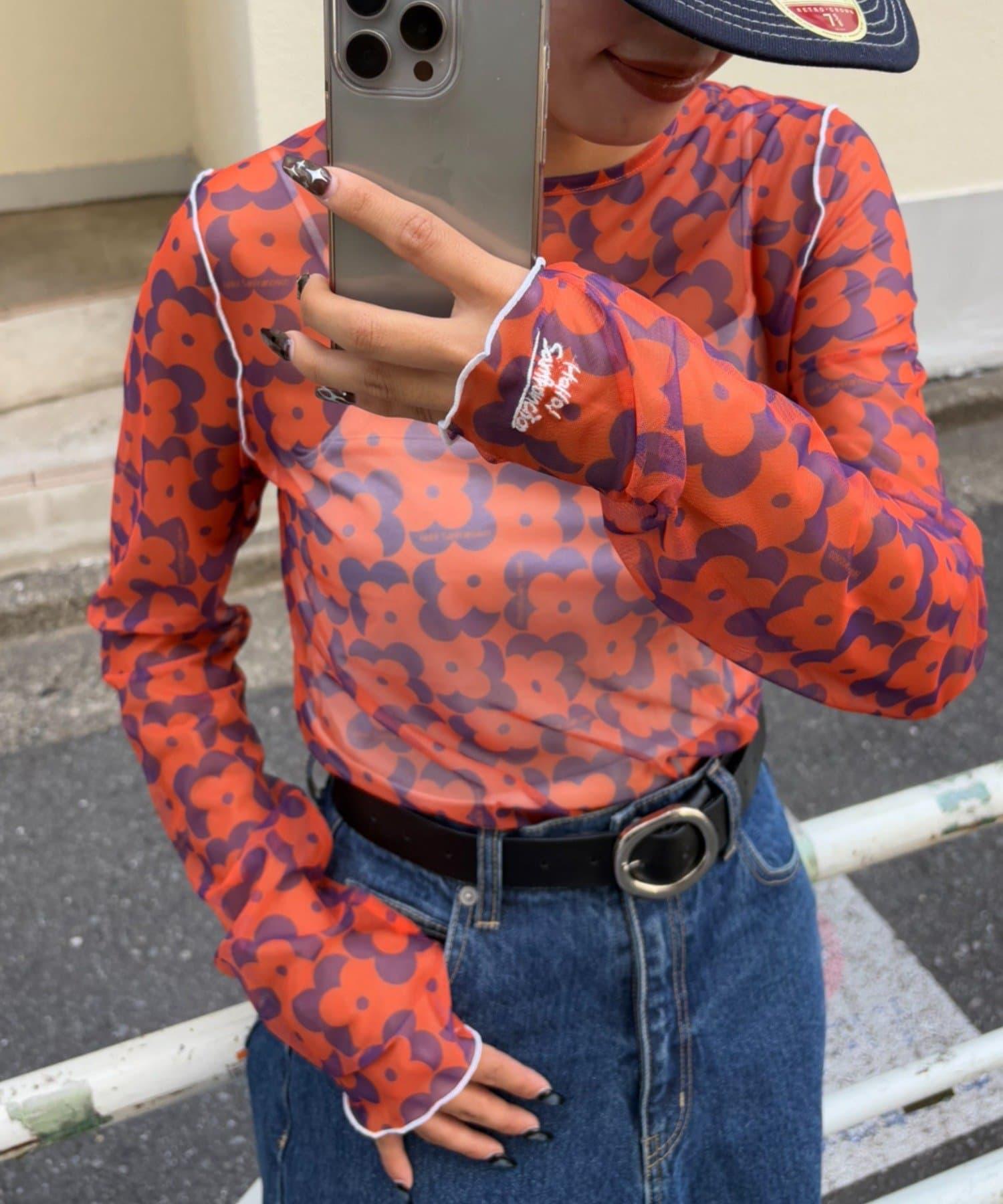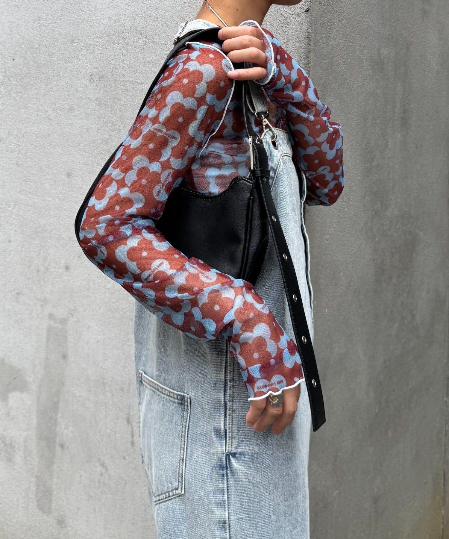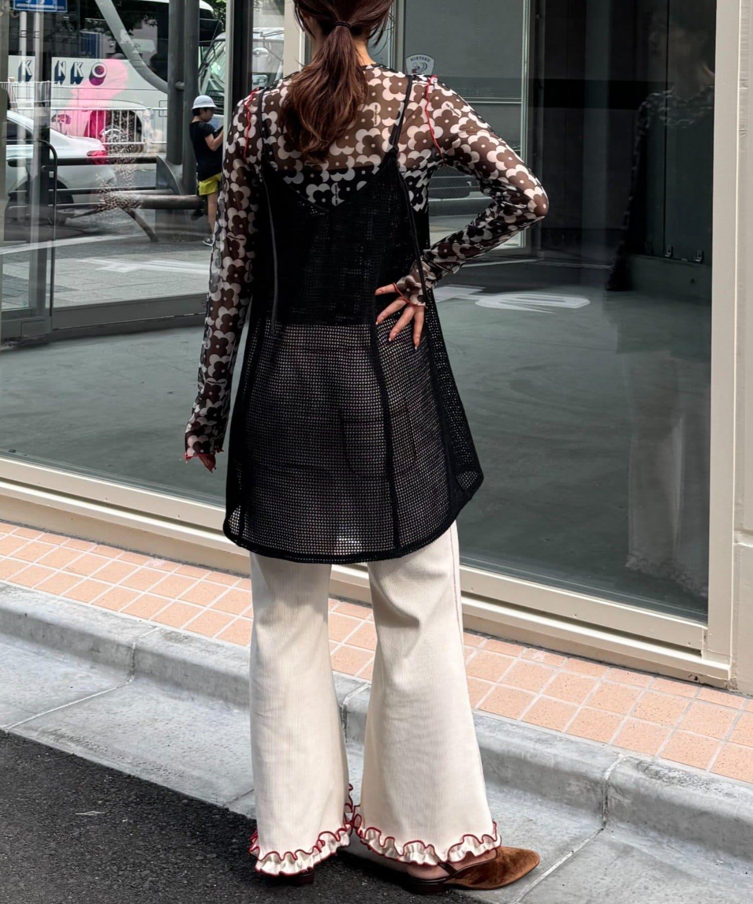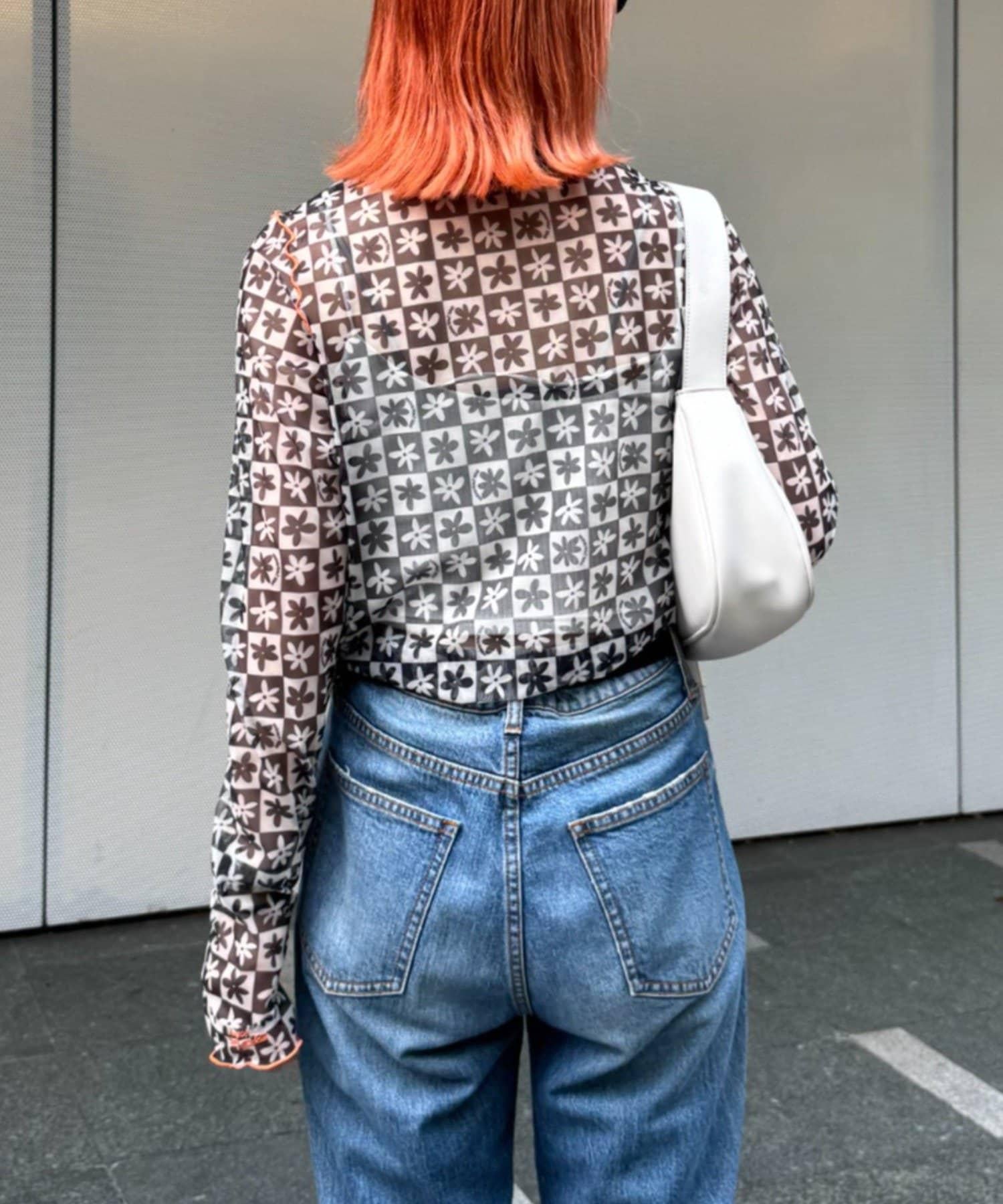 帶有可愛花朵圖案的薄紗上衣,讓層次搭配充滿樂趣。