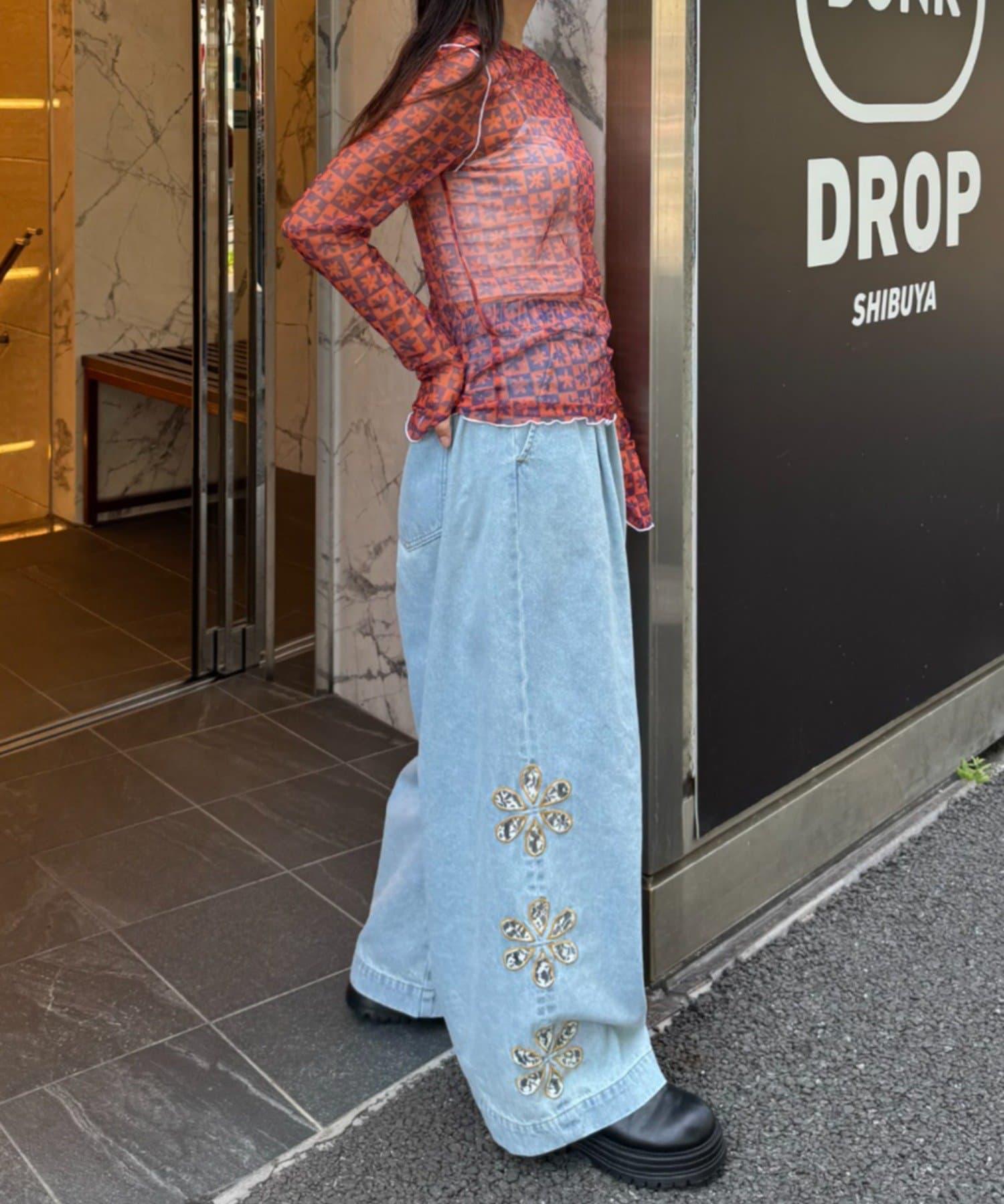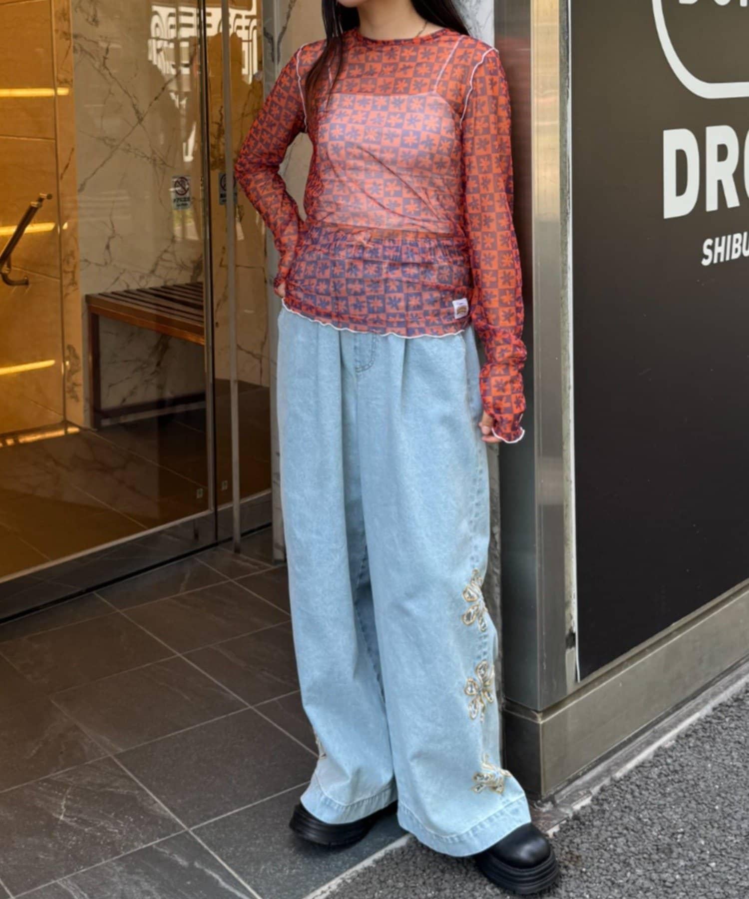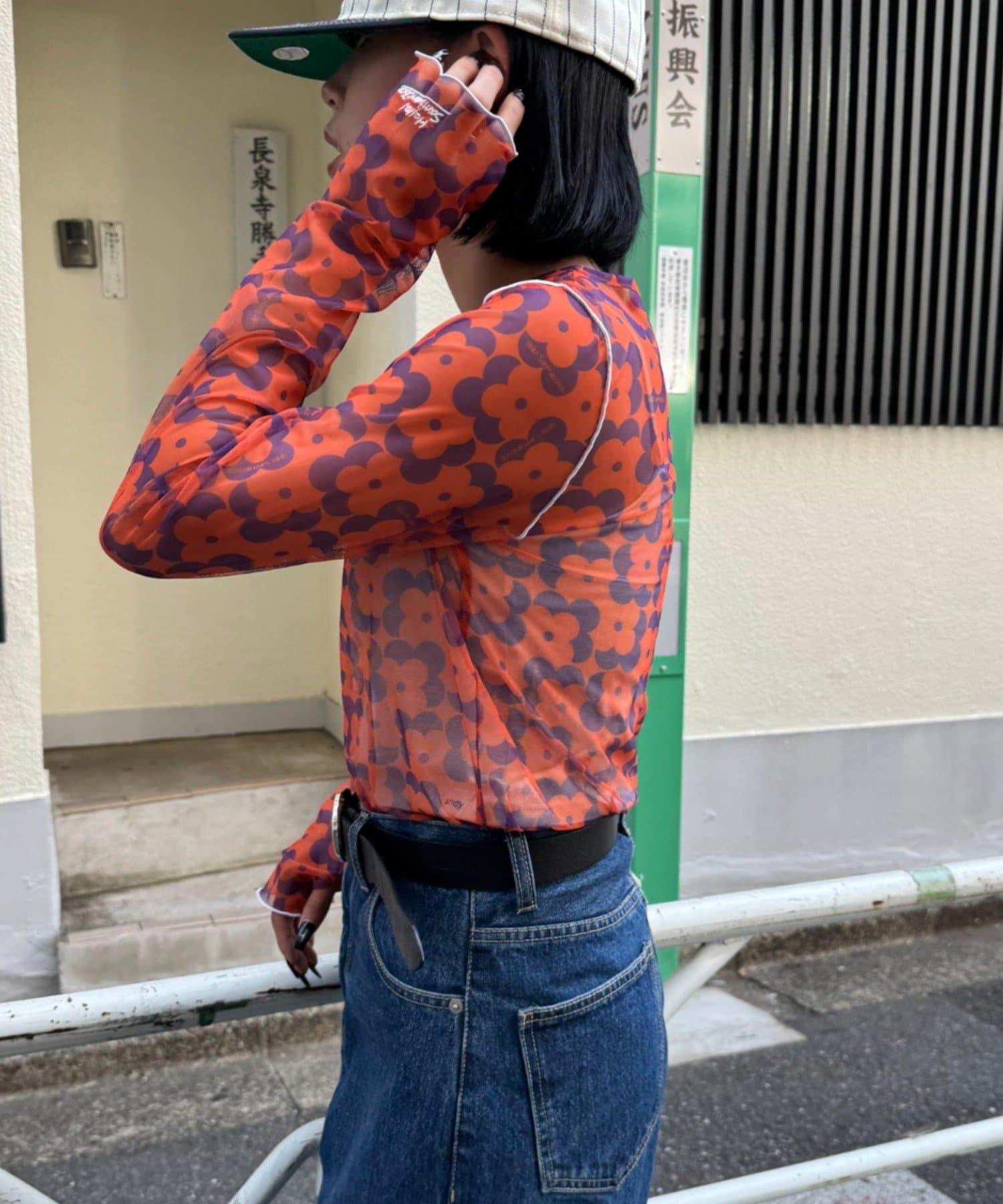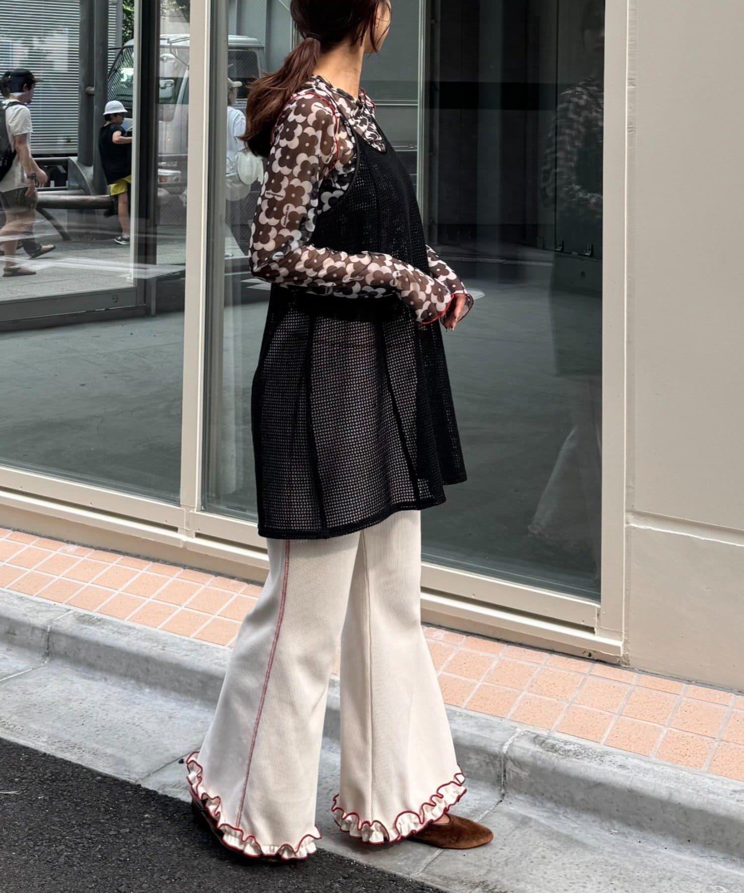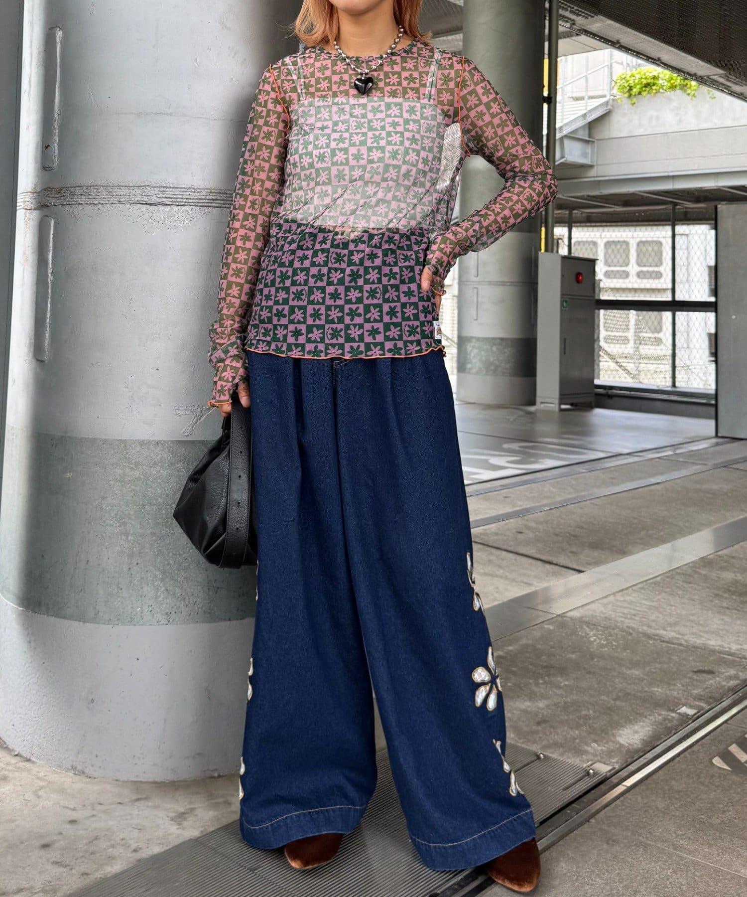 帶有可愛花朵圖案的薄紗上衣,讓層次搭配充滿樂趣。