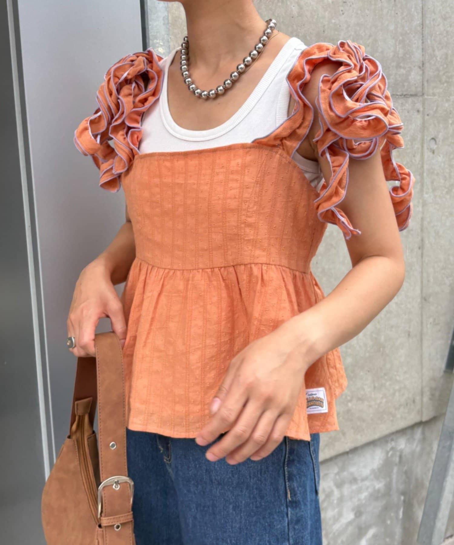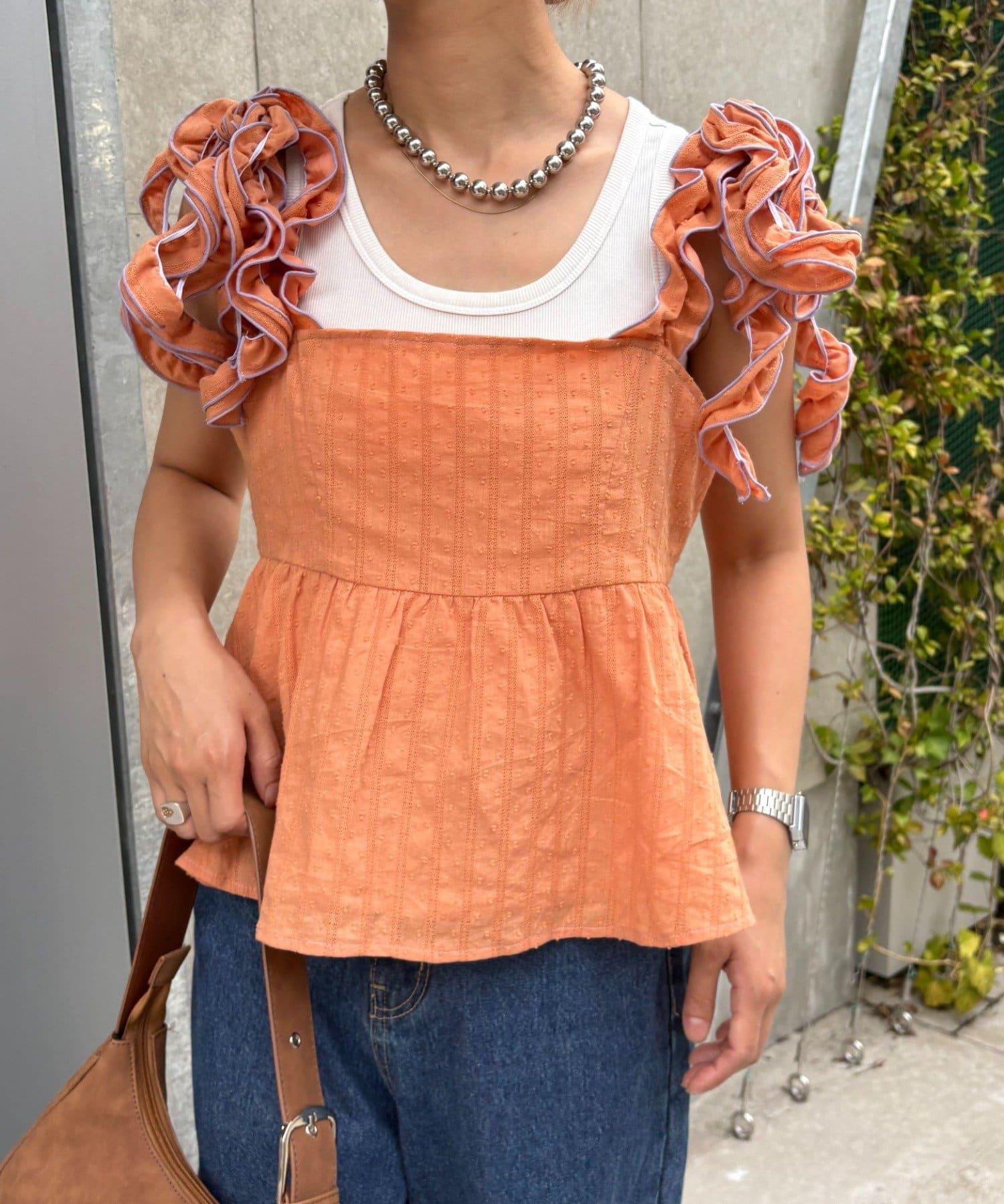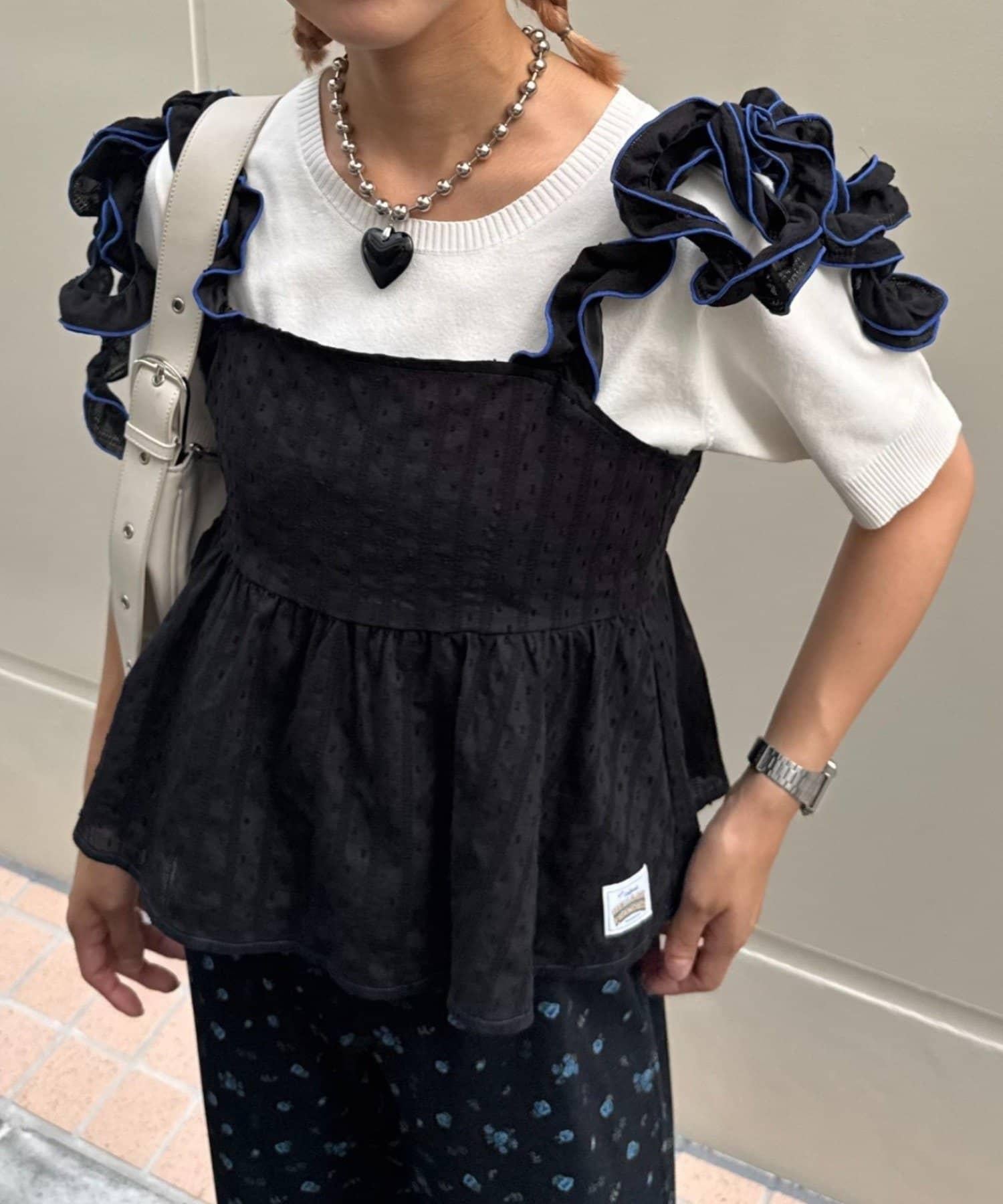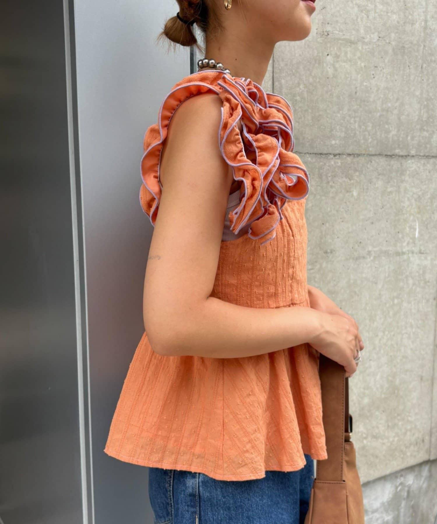 繫上長長的荷葉邊,肩帶變得豐盈,使臉部和肩部看起來更加纖細◎。
