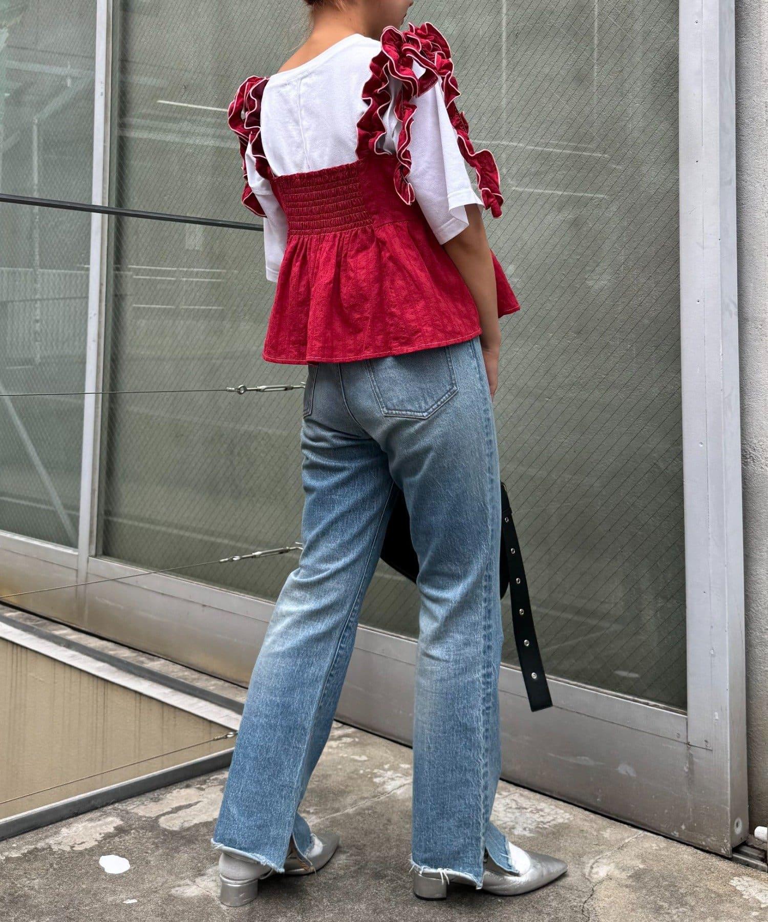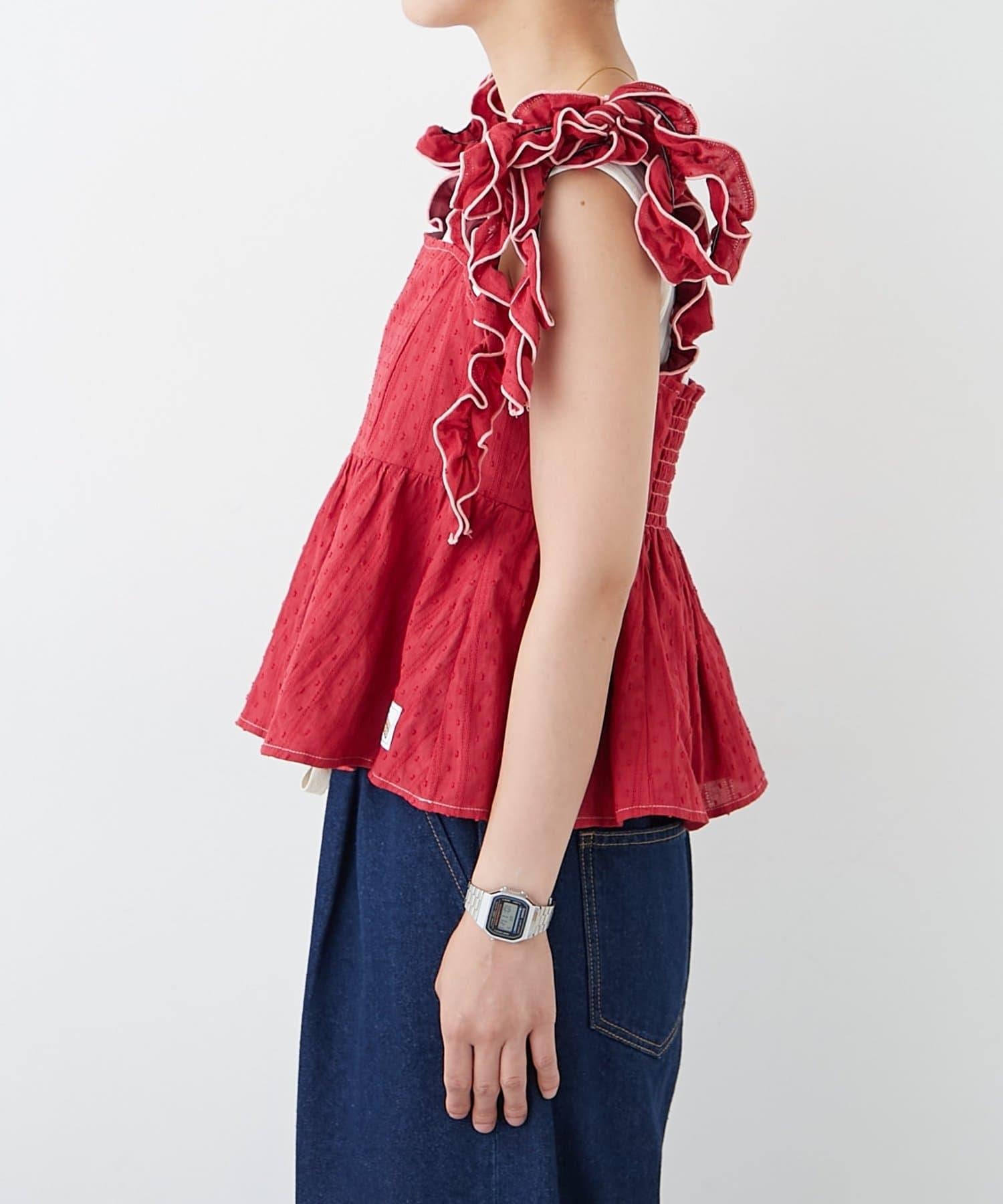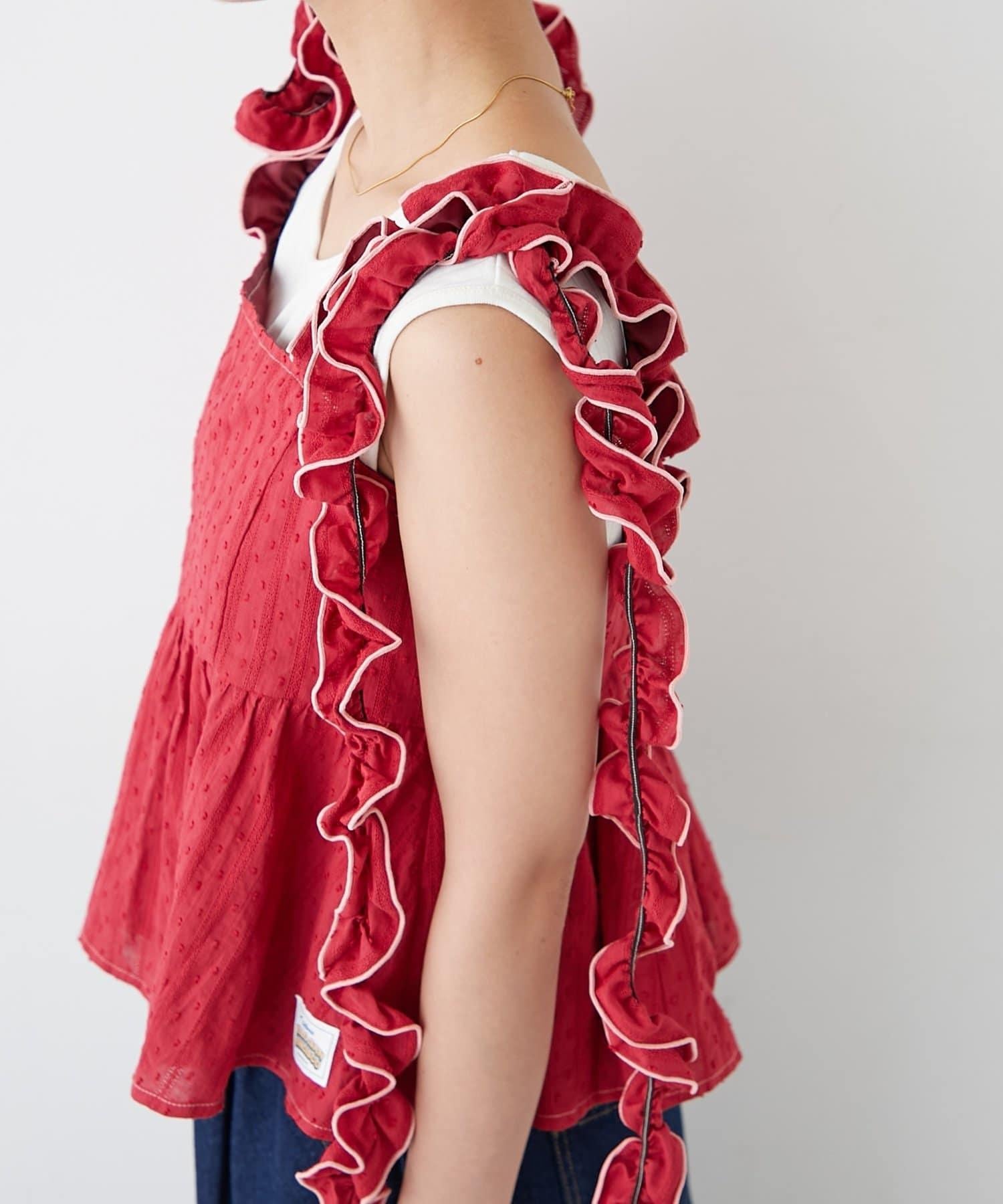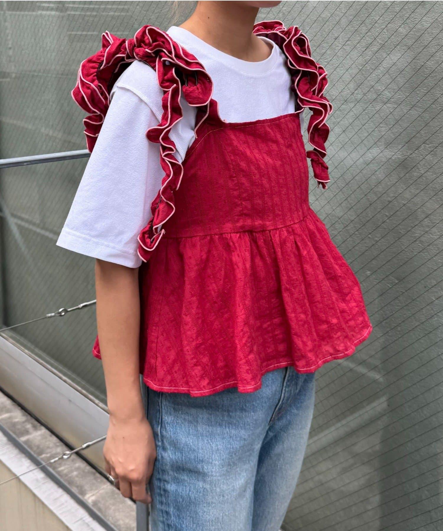 繫上長長的荷葉邊,肩帶變得豐盈,使臉部和肩部看起來更加纖細◎。