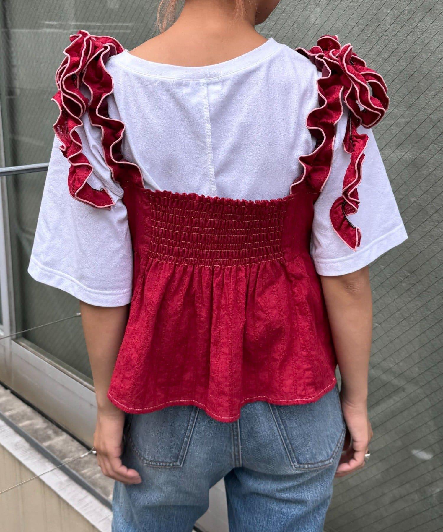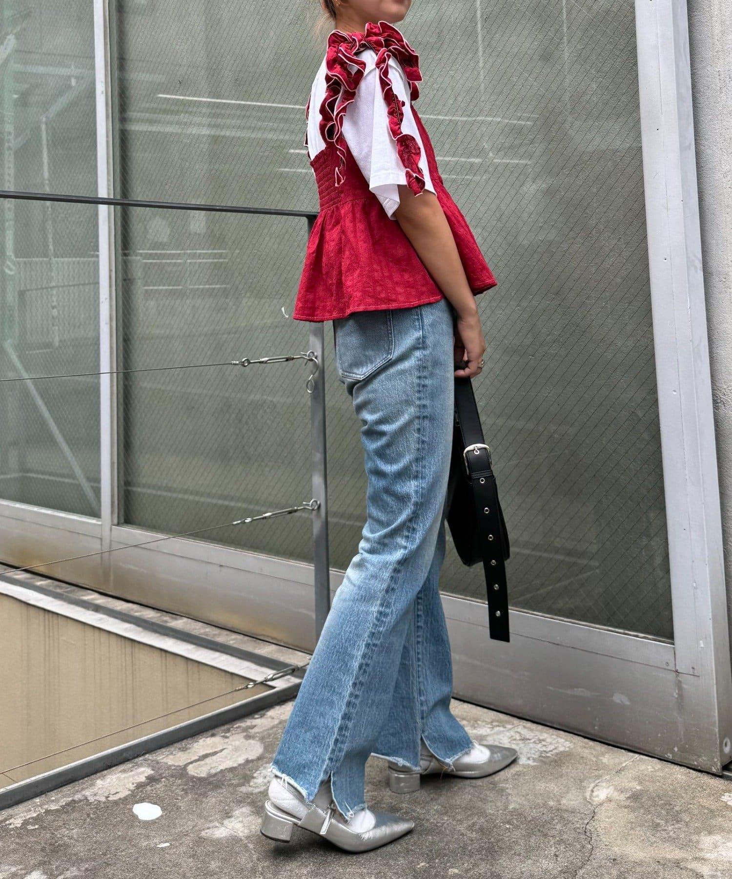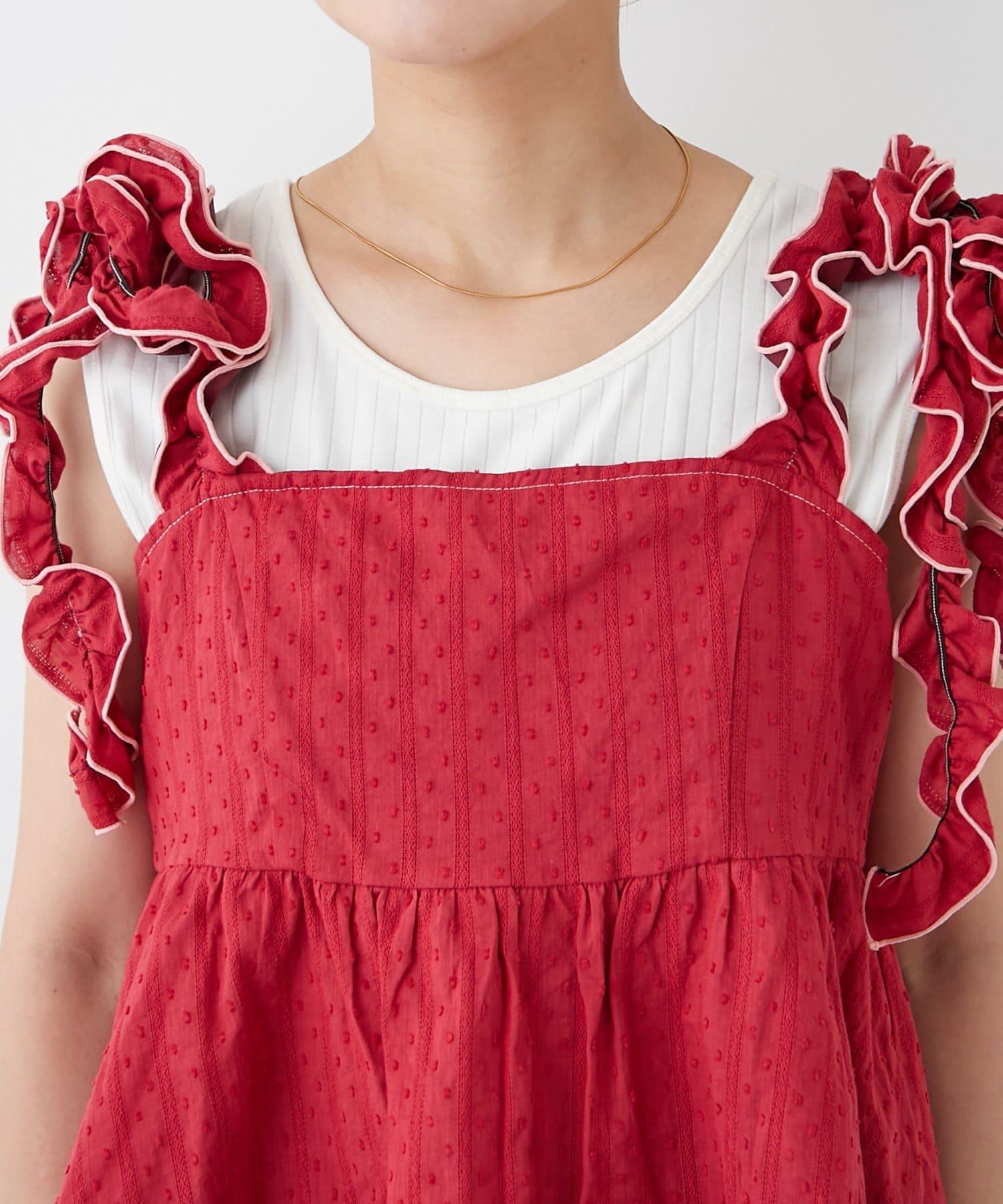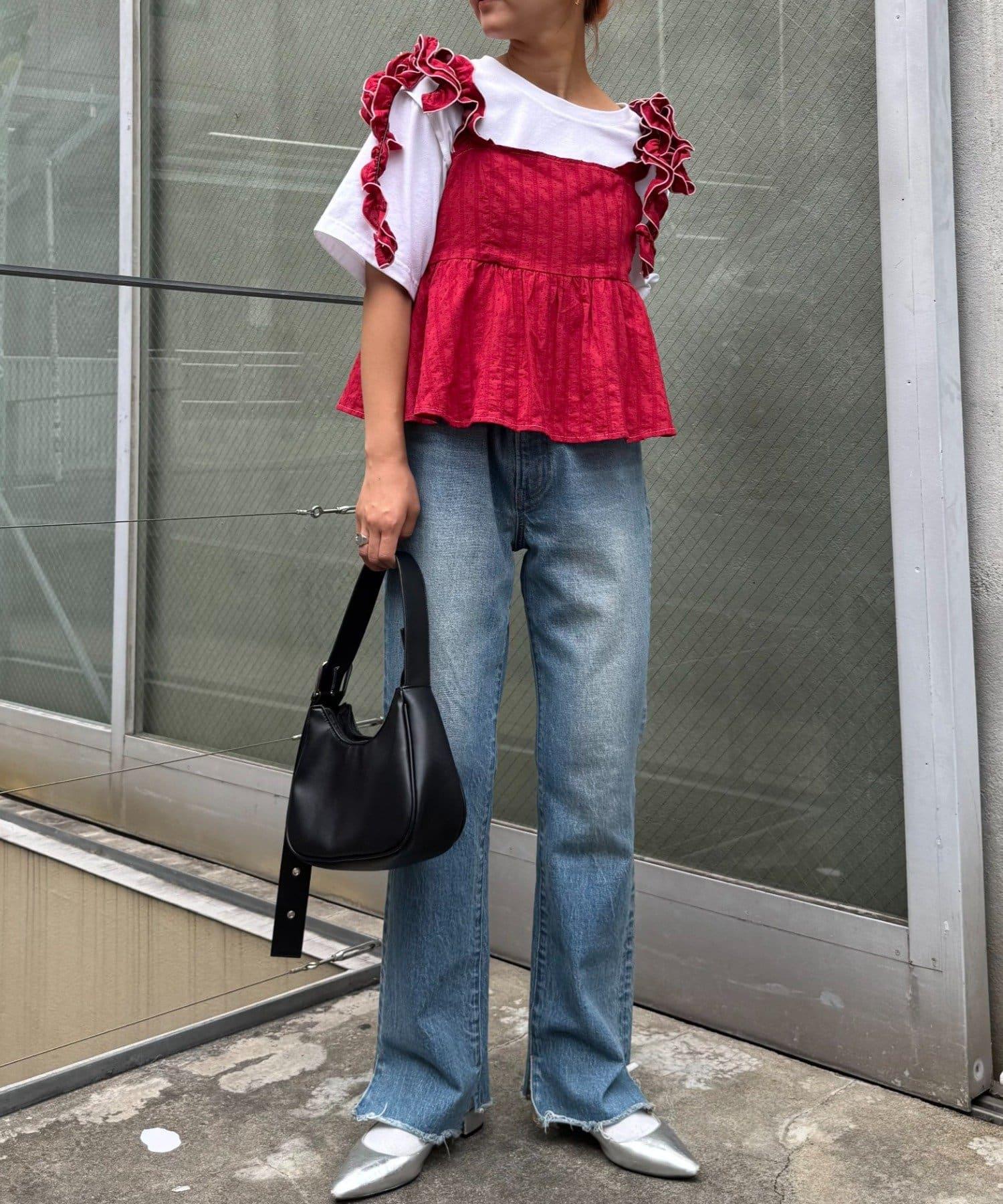 繫上長長的荷葉邊,肩帶變得豐盈,使臉部和肩部看起來更加纖細◎。