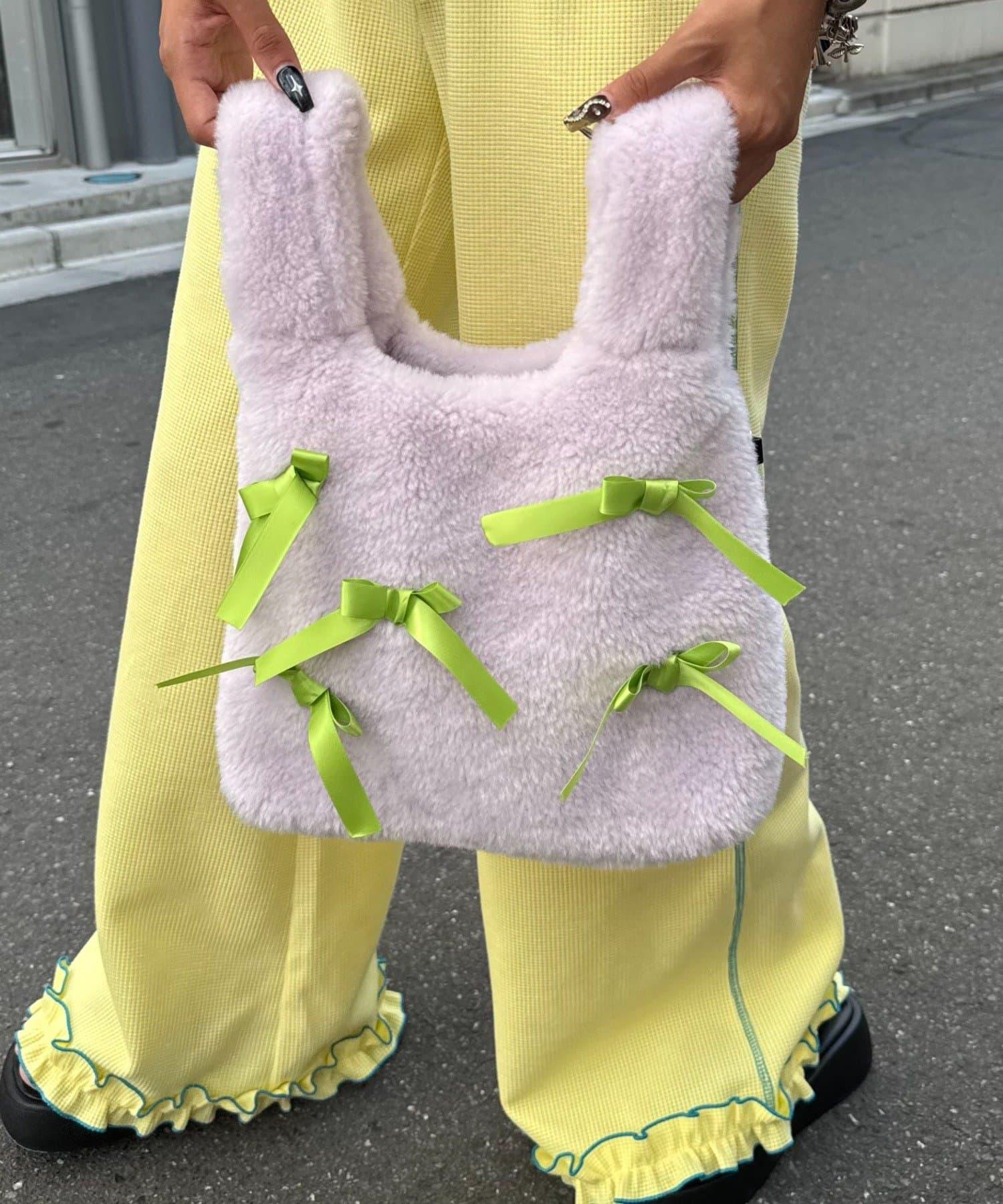 雙色絲帶以柔和的形式排列,既醒目又可愛!這款皮草包充滿了俏皮精神。
