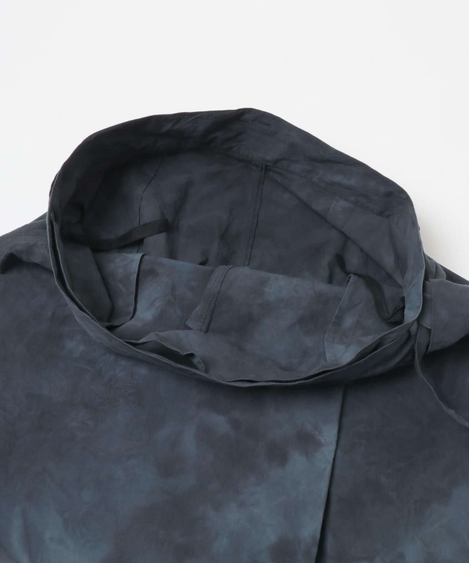每件單品都經過精心的手工染色,面料上深邃而奇妙的不規則紋路猶如黑夜的影子。