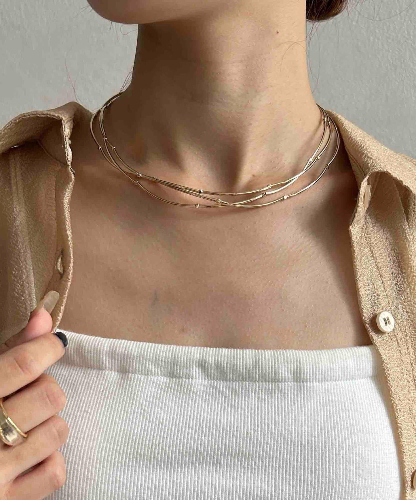 細細的鏈條即使是三股項鍊也能給人時尚的感覺。