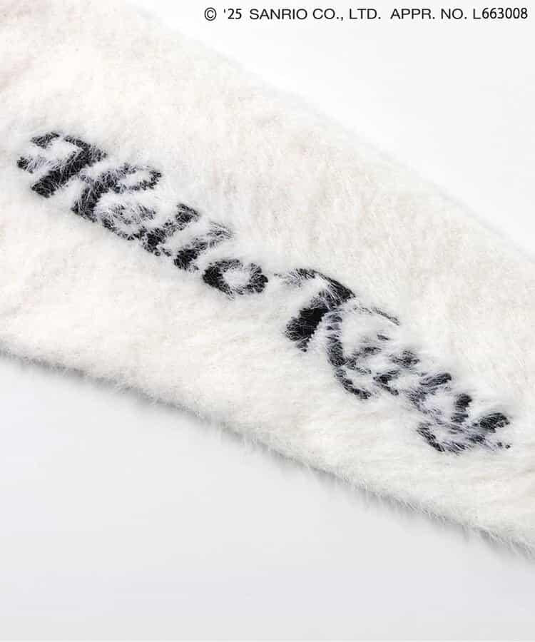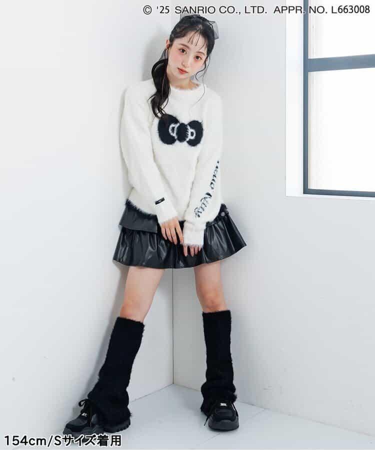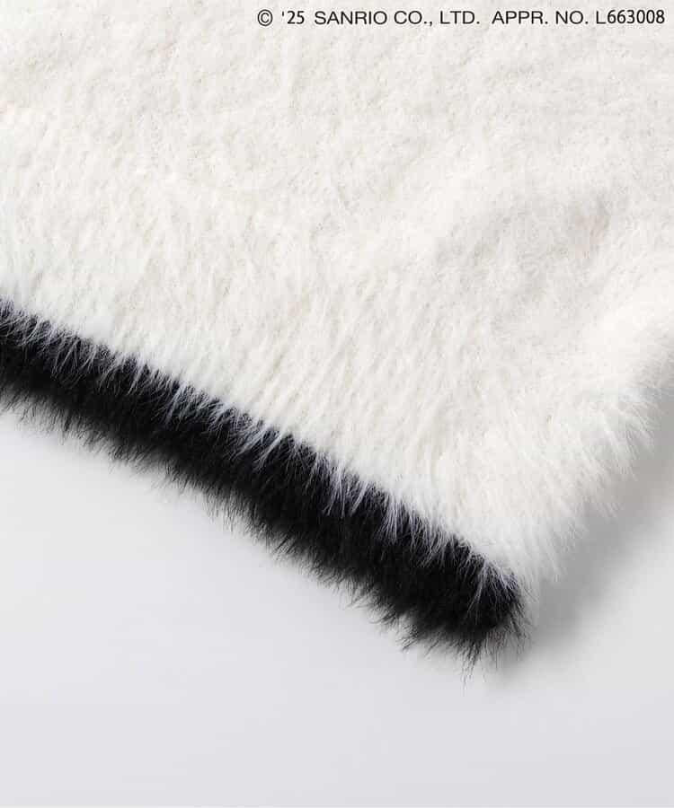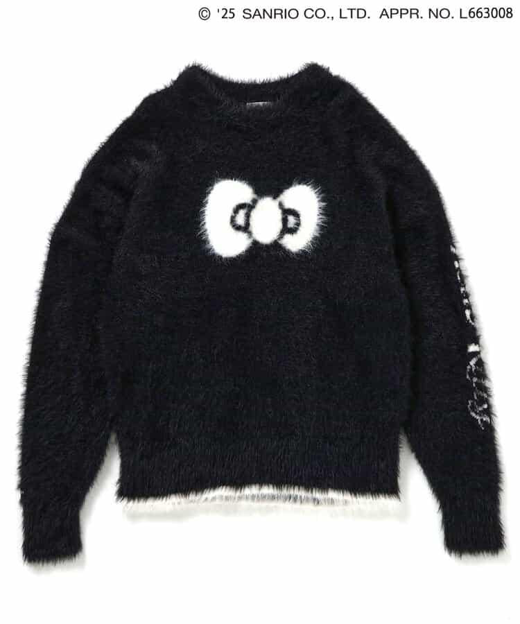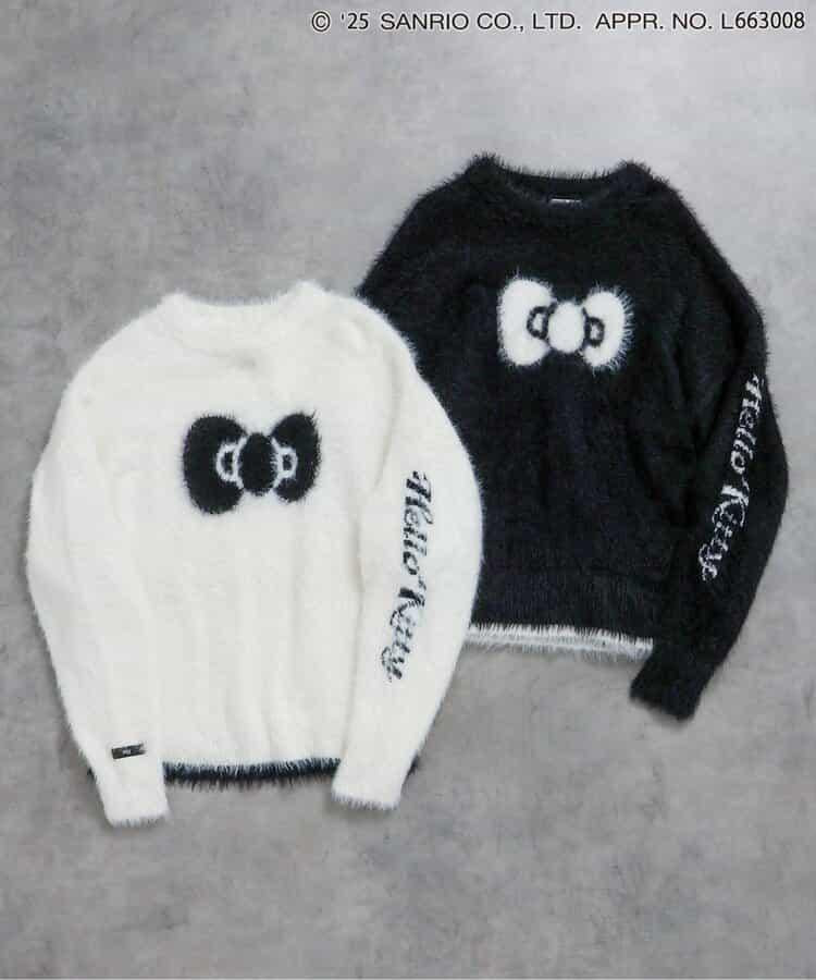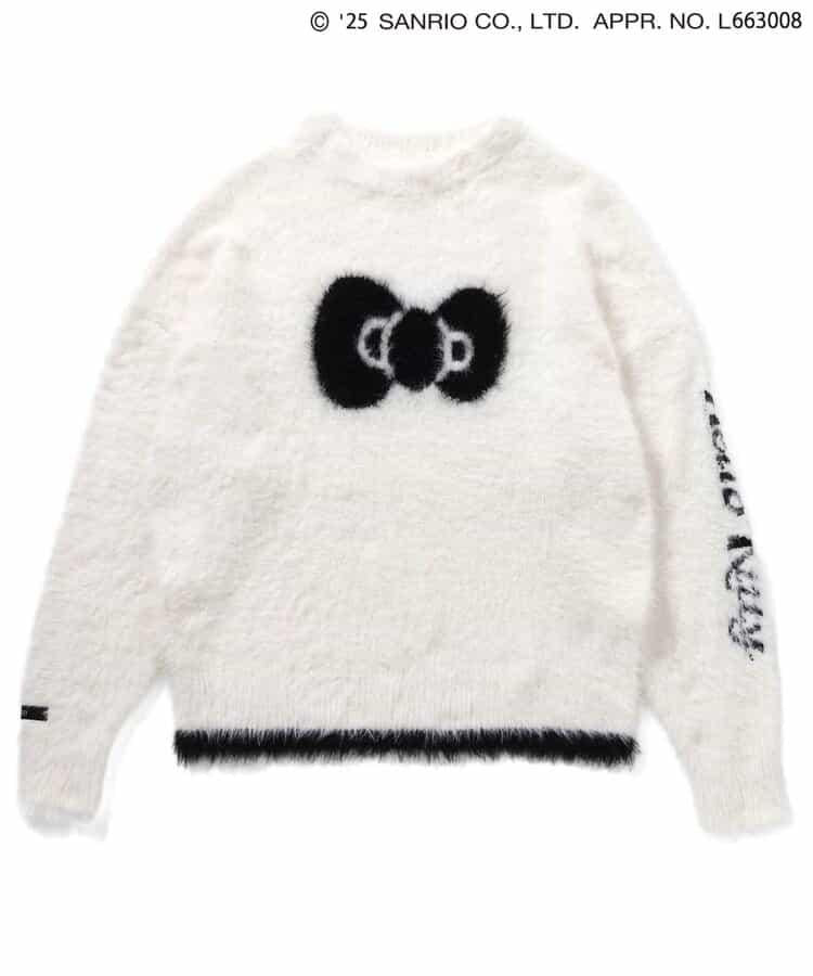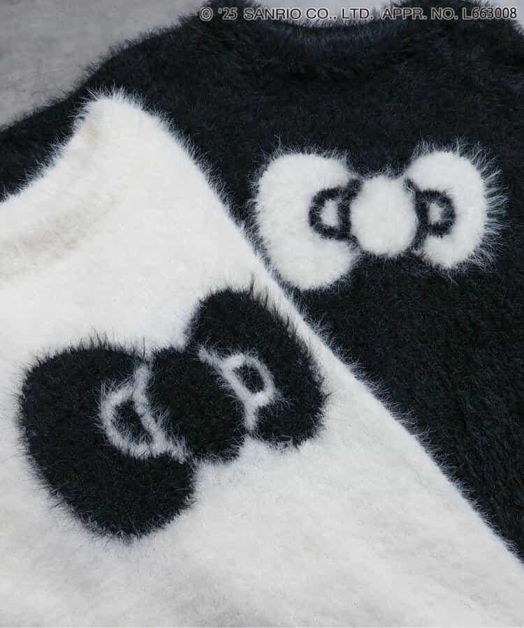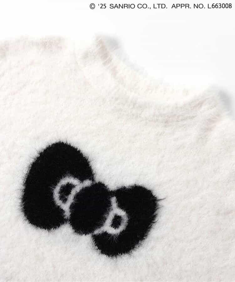 毛茸茸的針織衫上有 Hello Kitty 標誌性的絲帶設計。