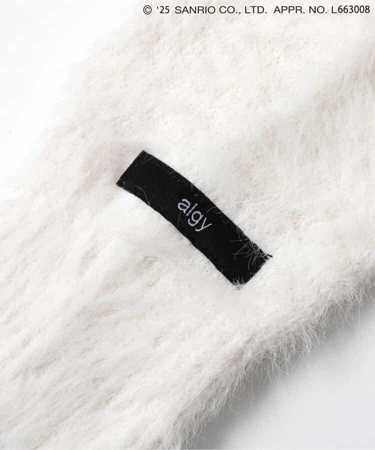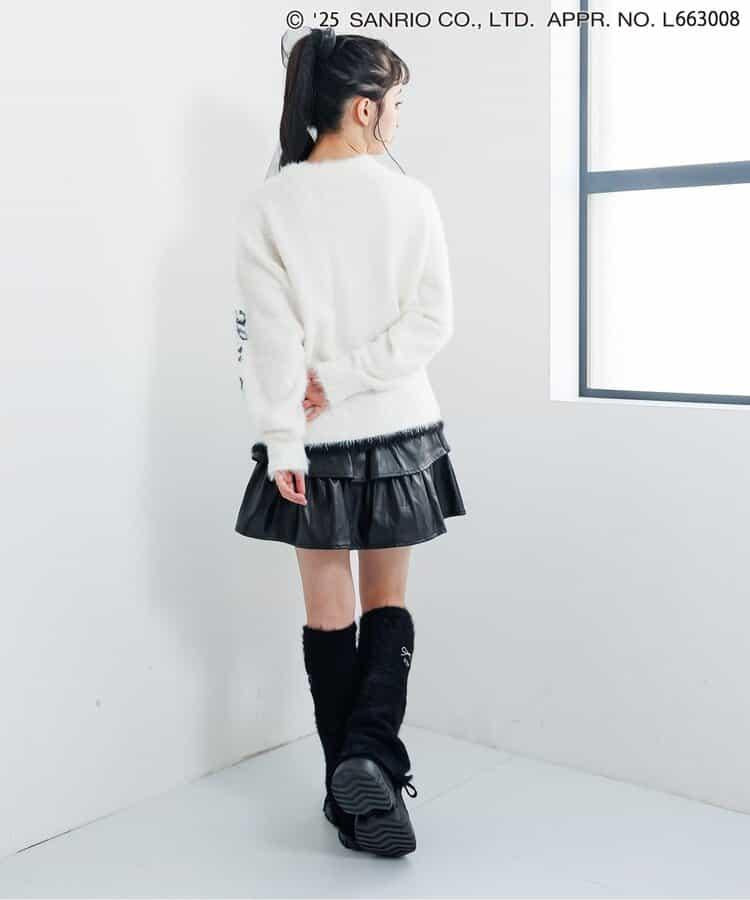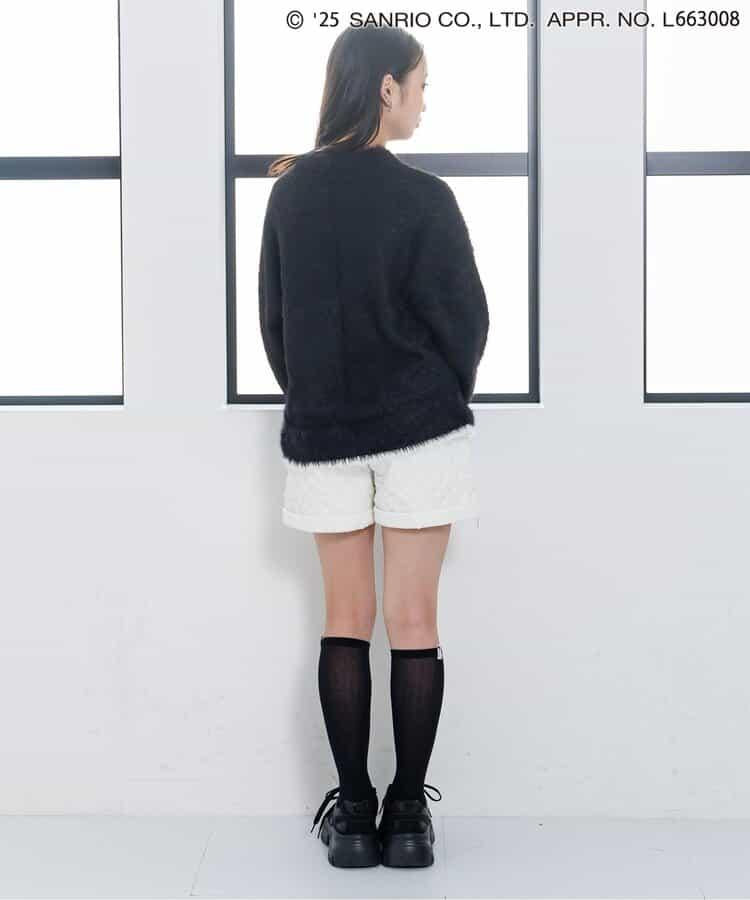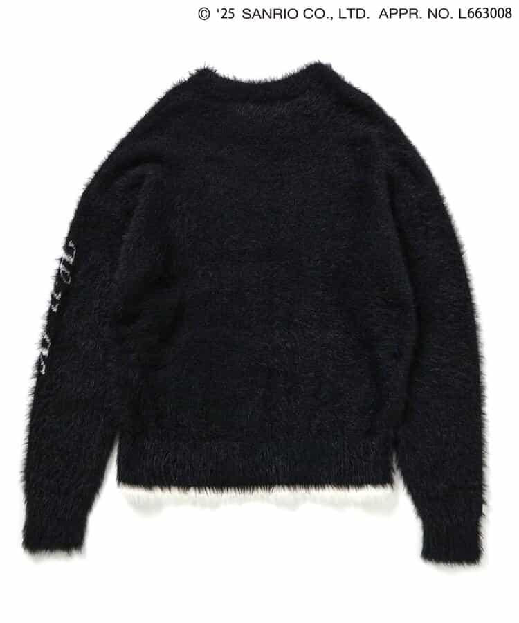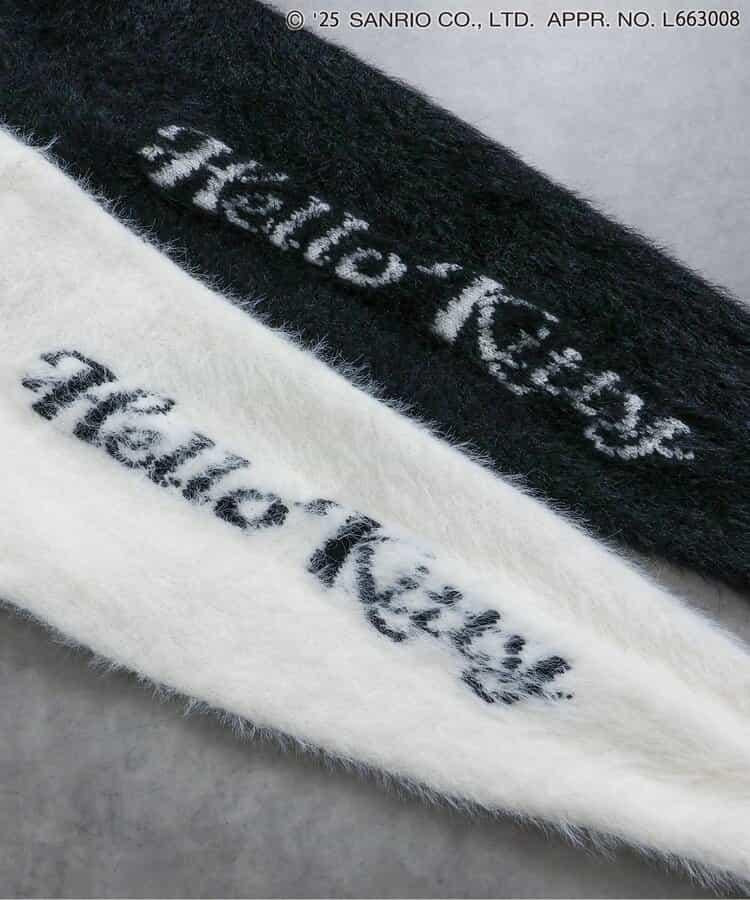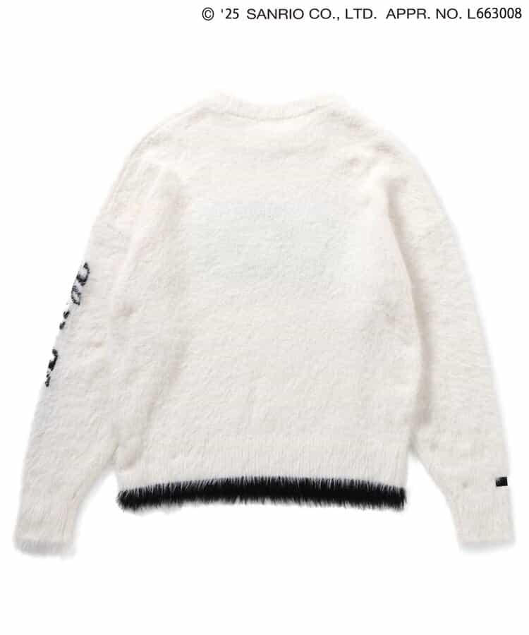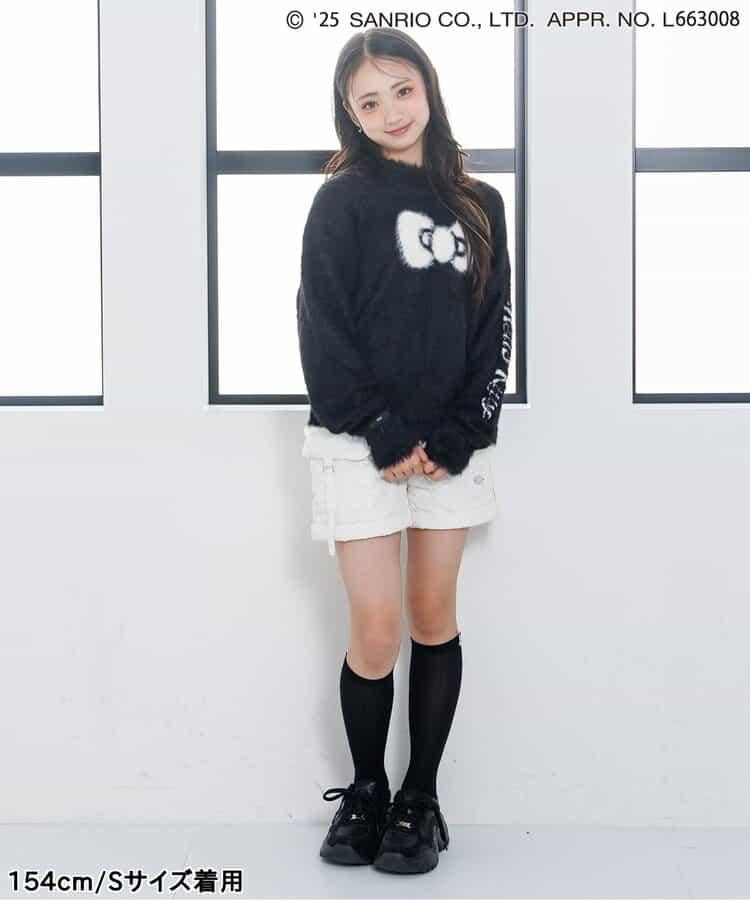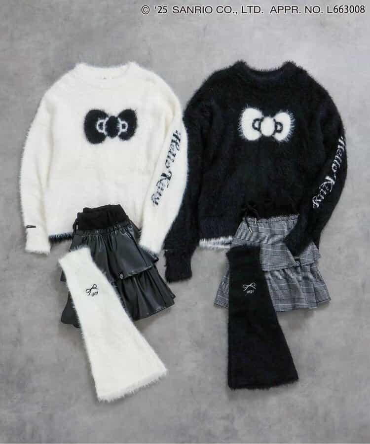 毛茸茸的針織衫上有 Hello Kitty 標誌性的絲帶設計。
