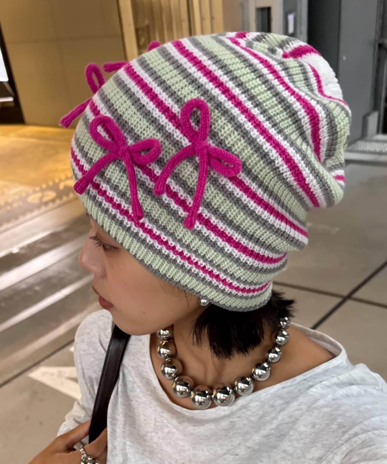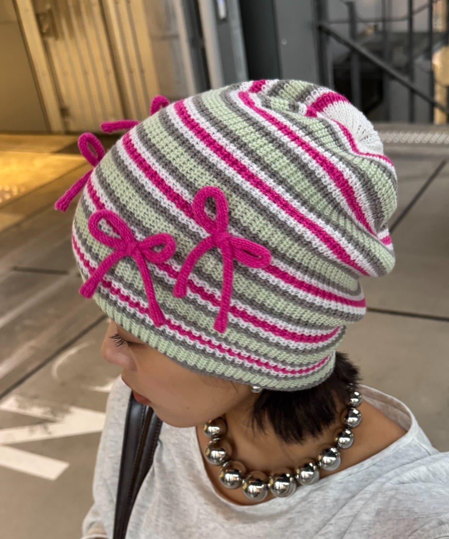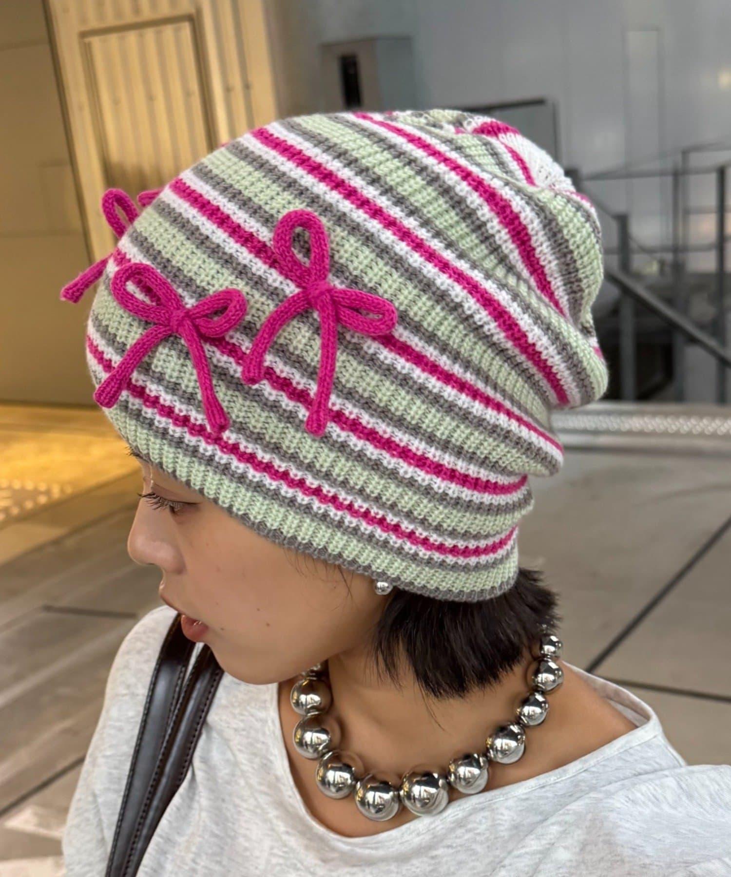 ★【HELLO.SANFRANCISCO/ハローサンフランシスコ】リボン付マルチボーダービーニー帽