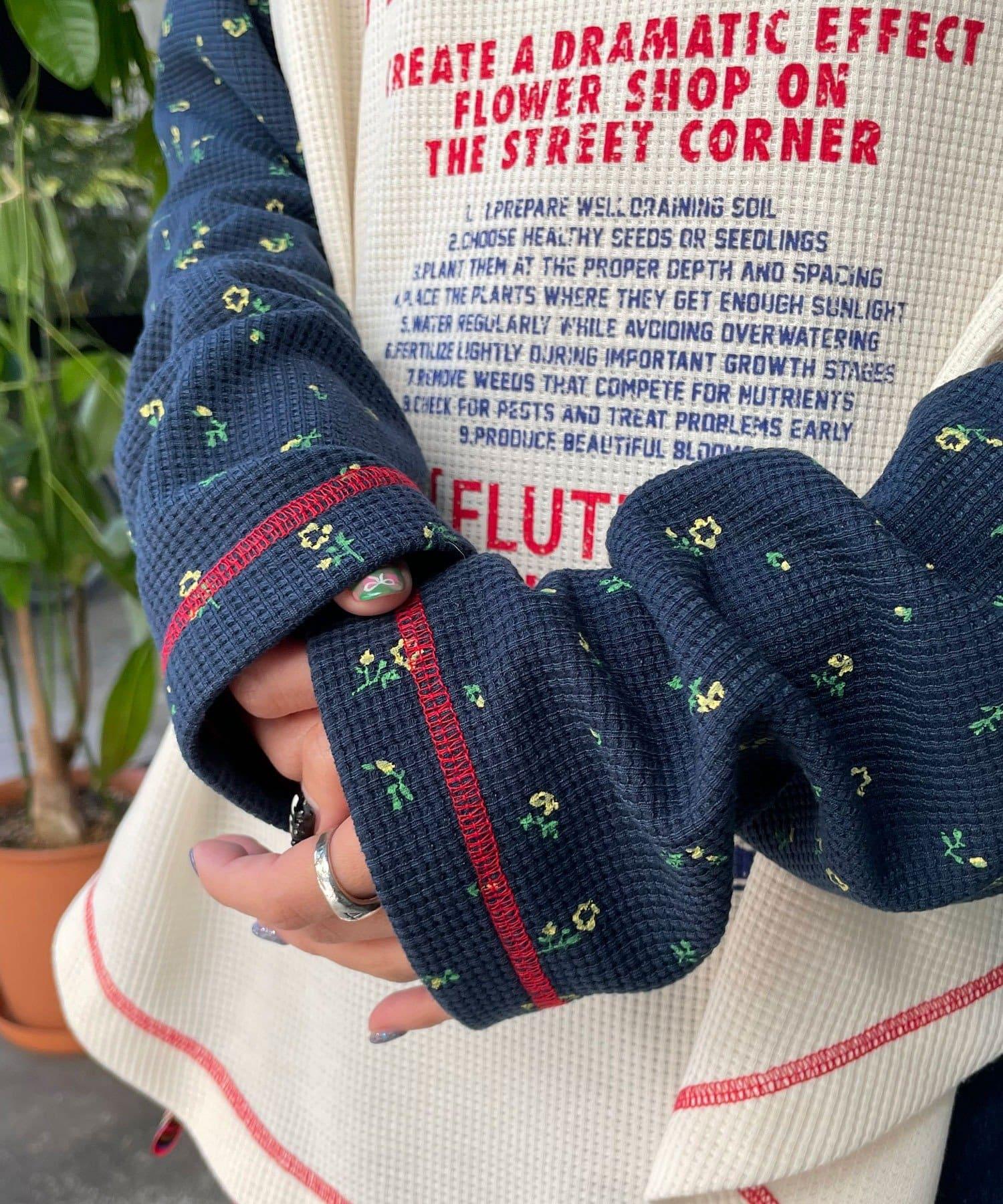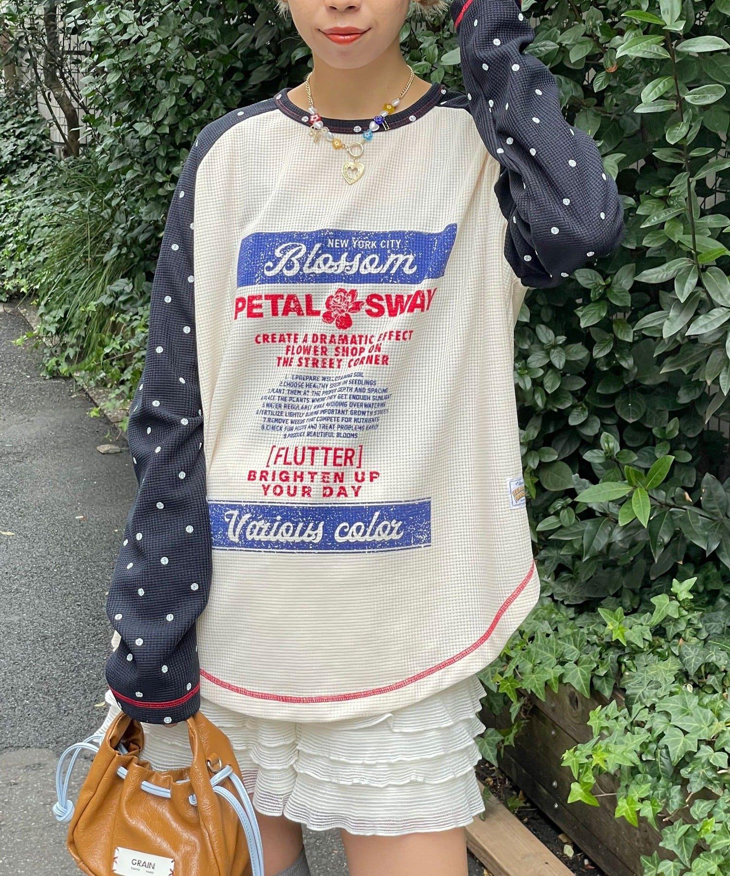 衣身簡潔,袖子則有花朵和圓點兩種圖案,讓你享受不同圖案帶來的氛圍。
