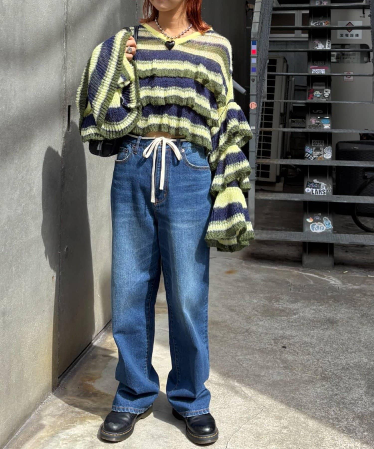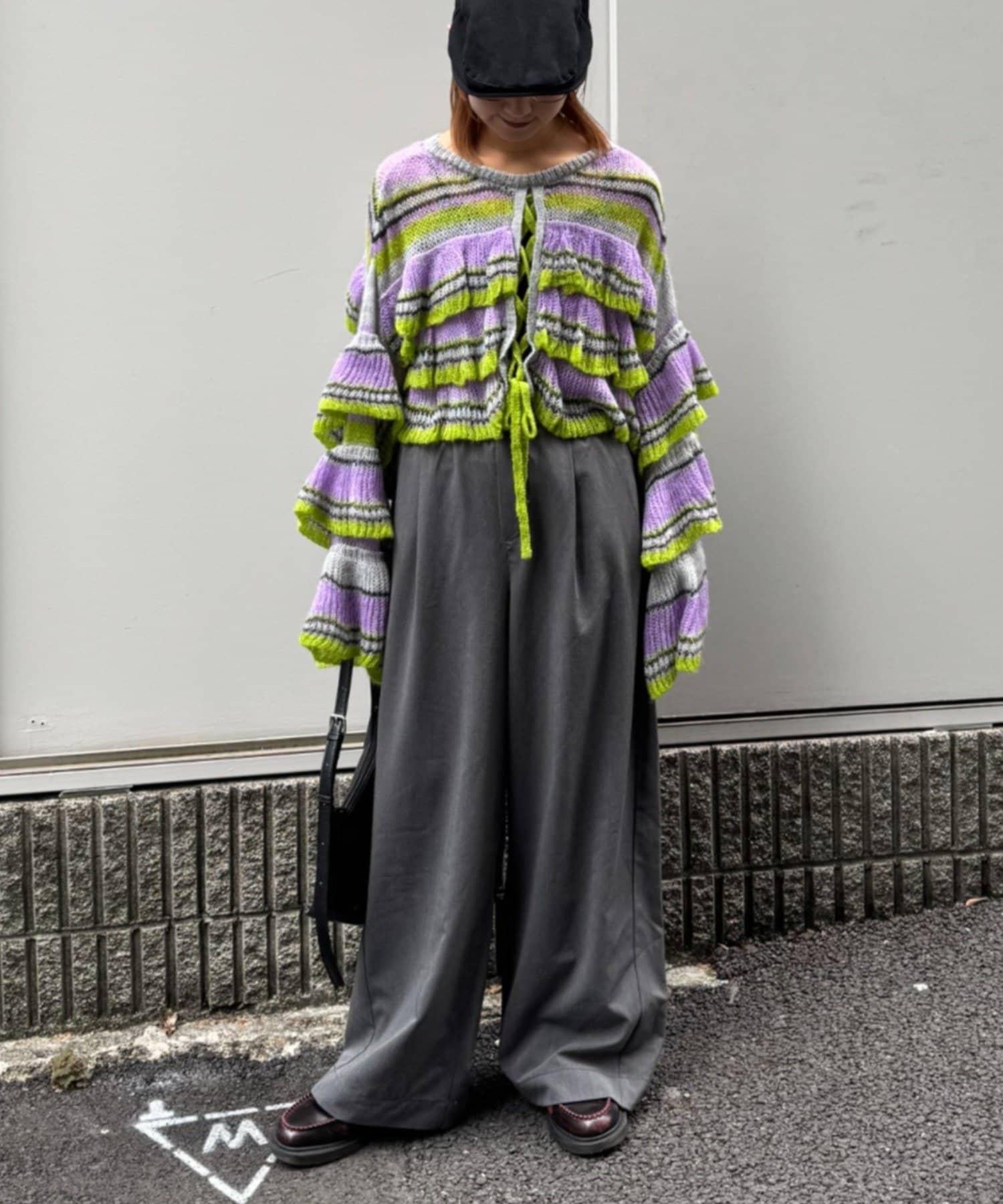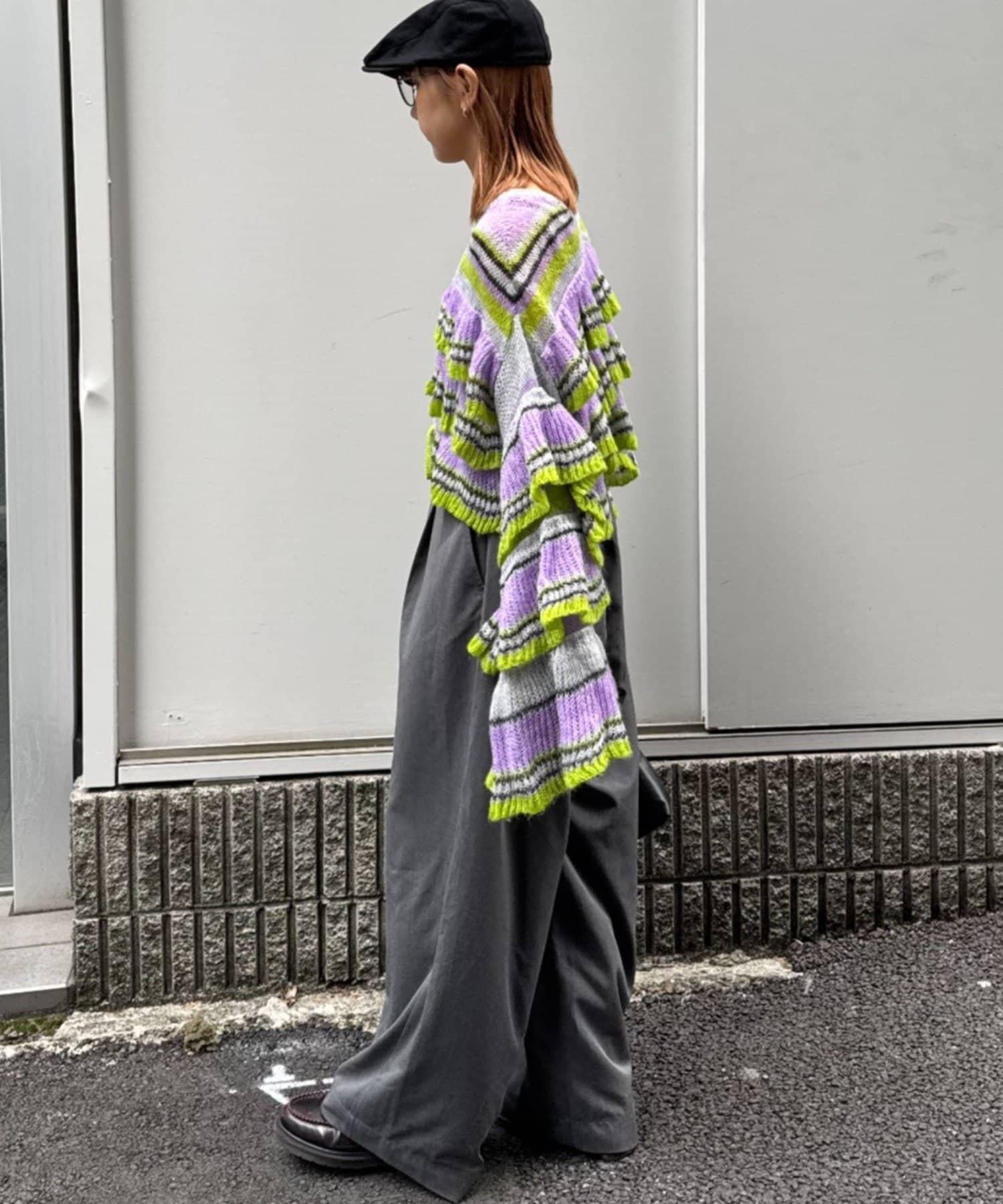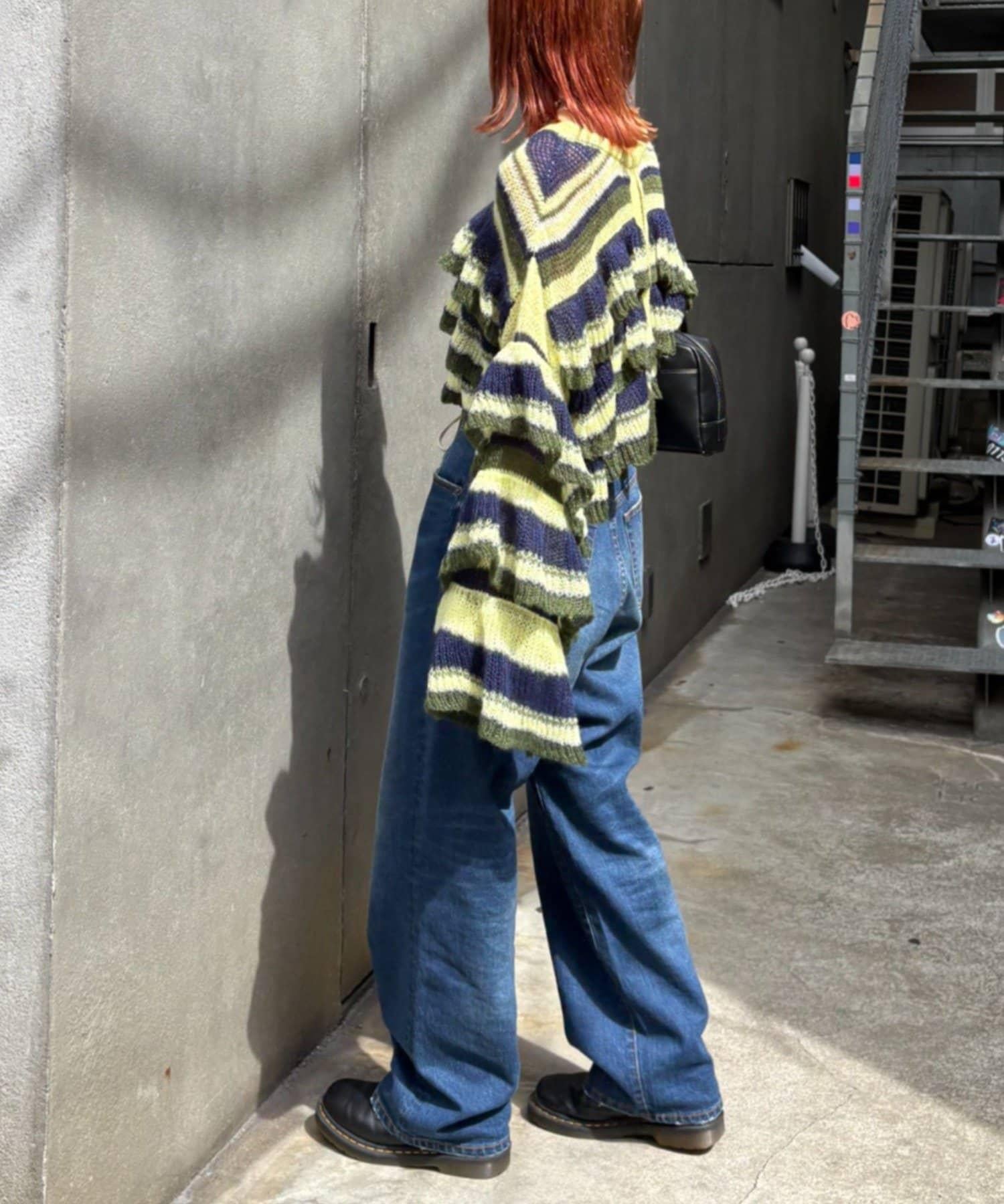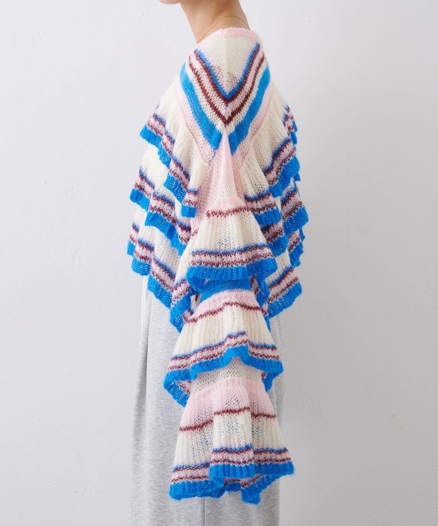 ★【HELLO.SANFRANCISCO/ハローサンフランシスコ】多色條紋透視荷葉邊針織衫