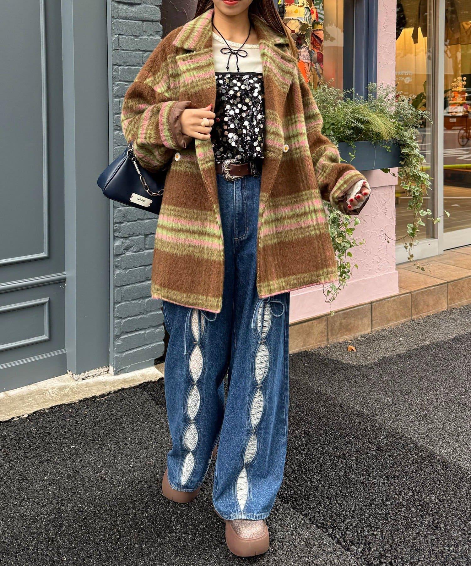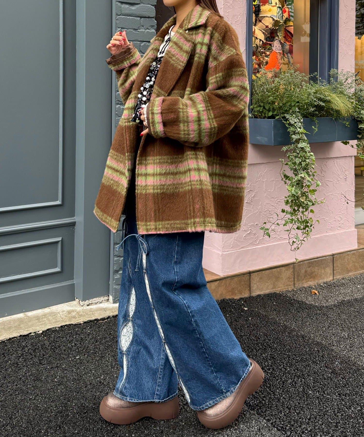 【HELLO.SANFRANCISCO/ハローサンフランシスコ】格紋長毛呢大衣