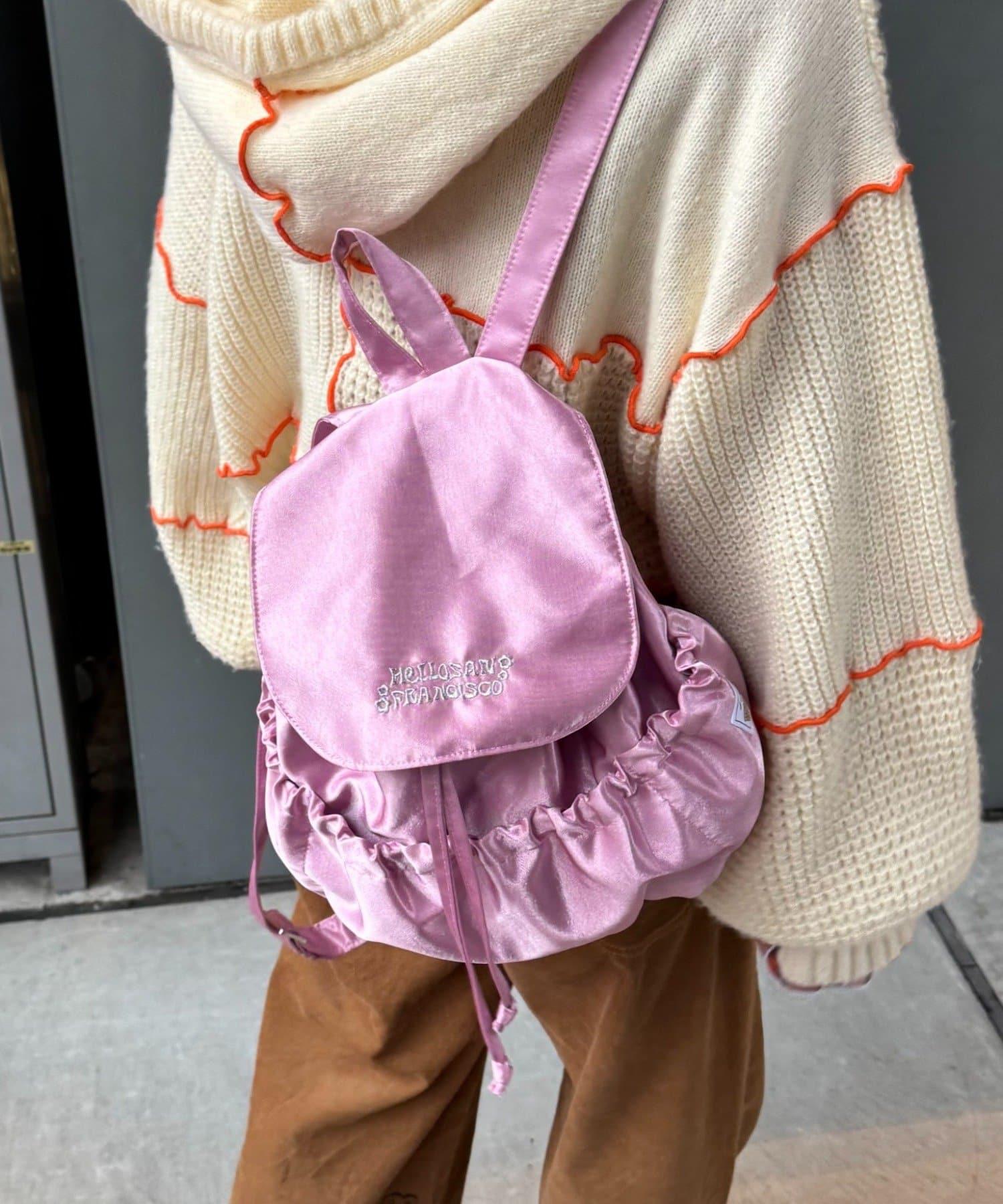 ★【HELLO.SANFRANCISCO/ハローサンフランシスコ】標誌刺繡緞面雙肩包