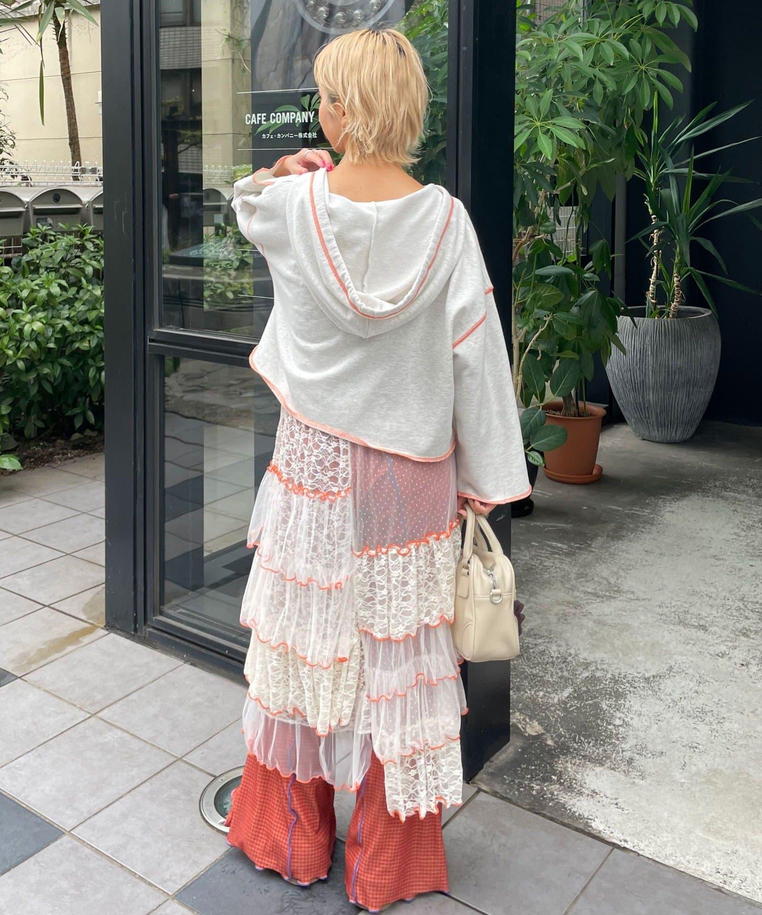 建議搭配透視上衣和網眼內搭,讓透明感從袖口和領口透出。