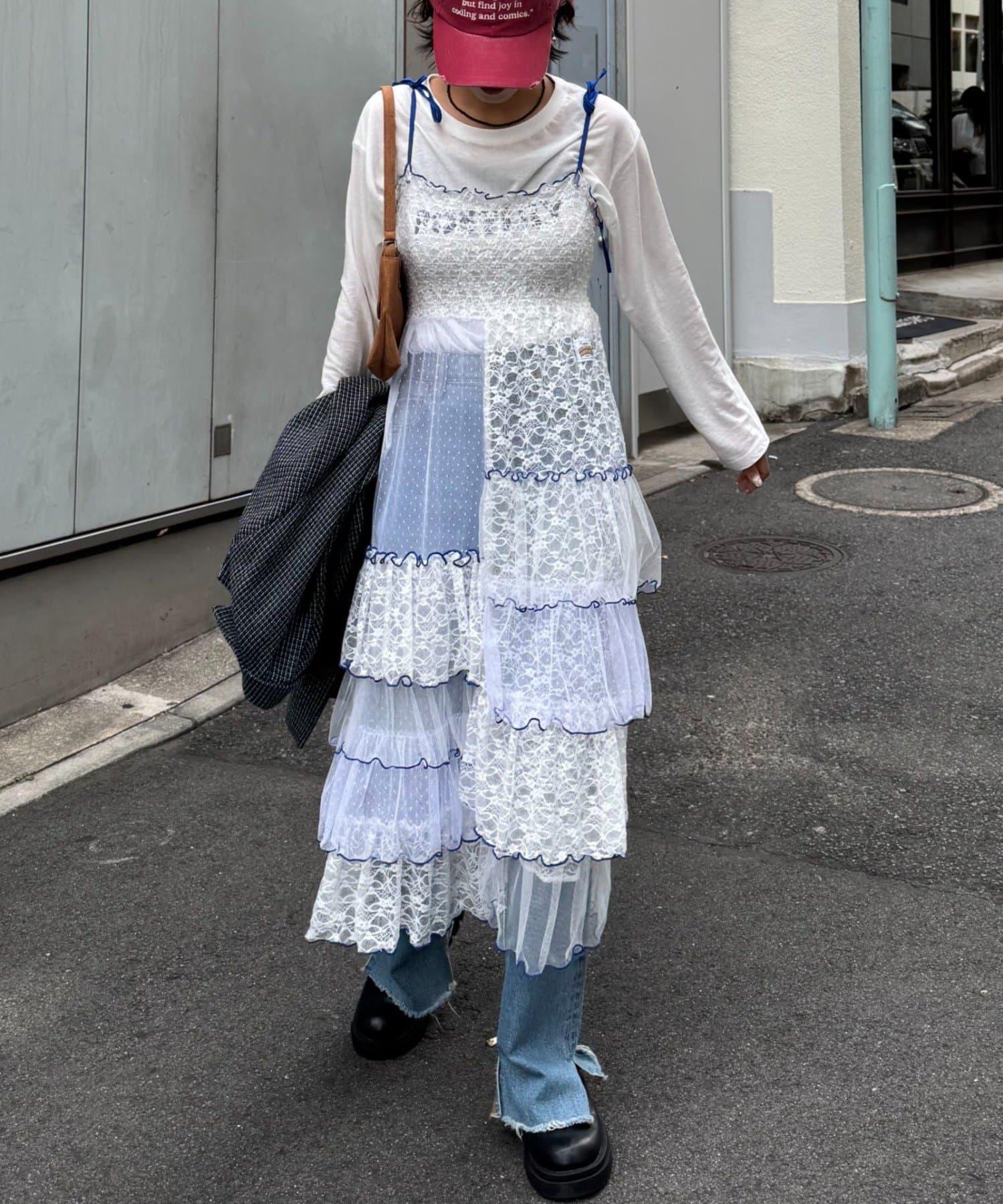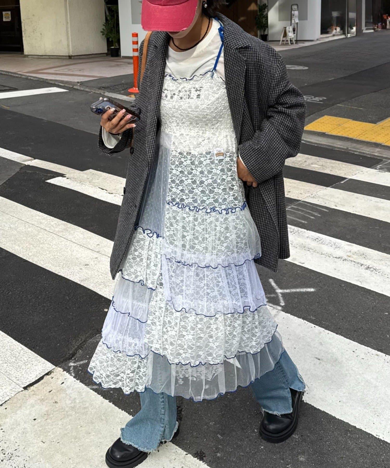 【HELLO.SANFRANCISCO/ハローサンフランシスコ】2WAY蕾絲拼接層疊半身裙