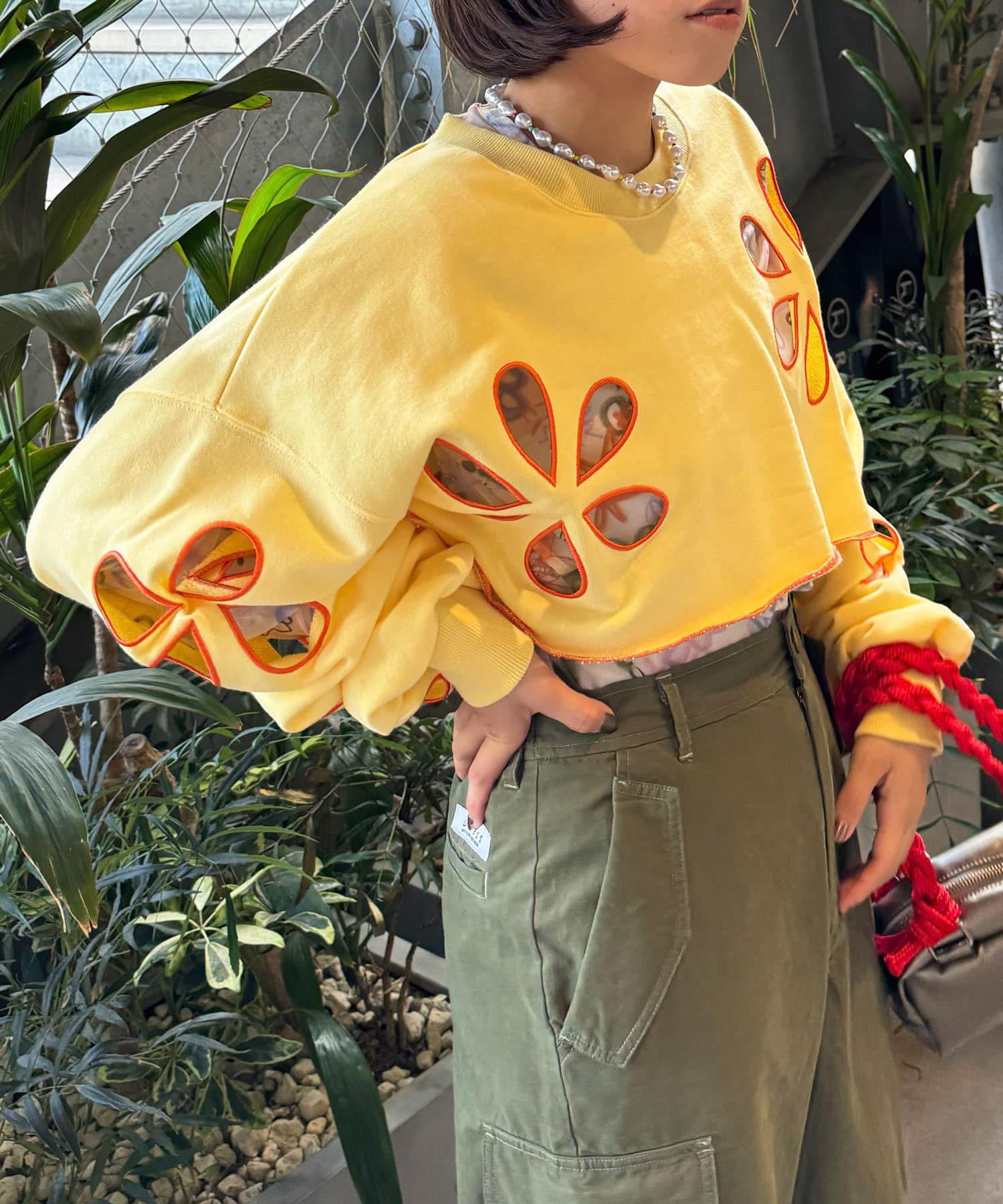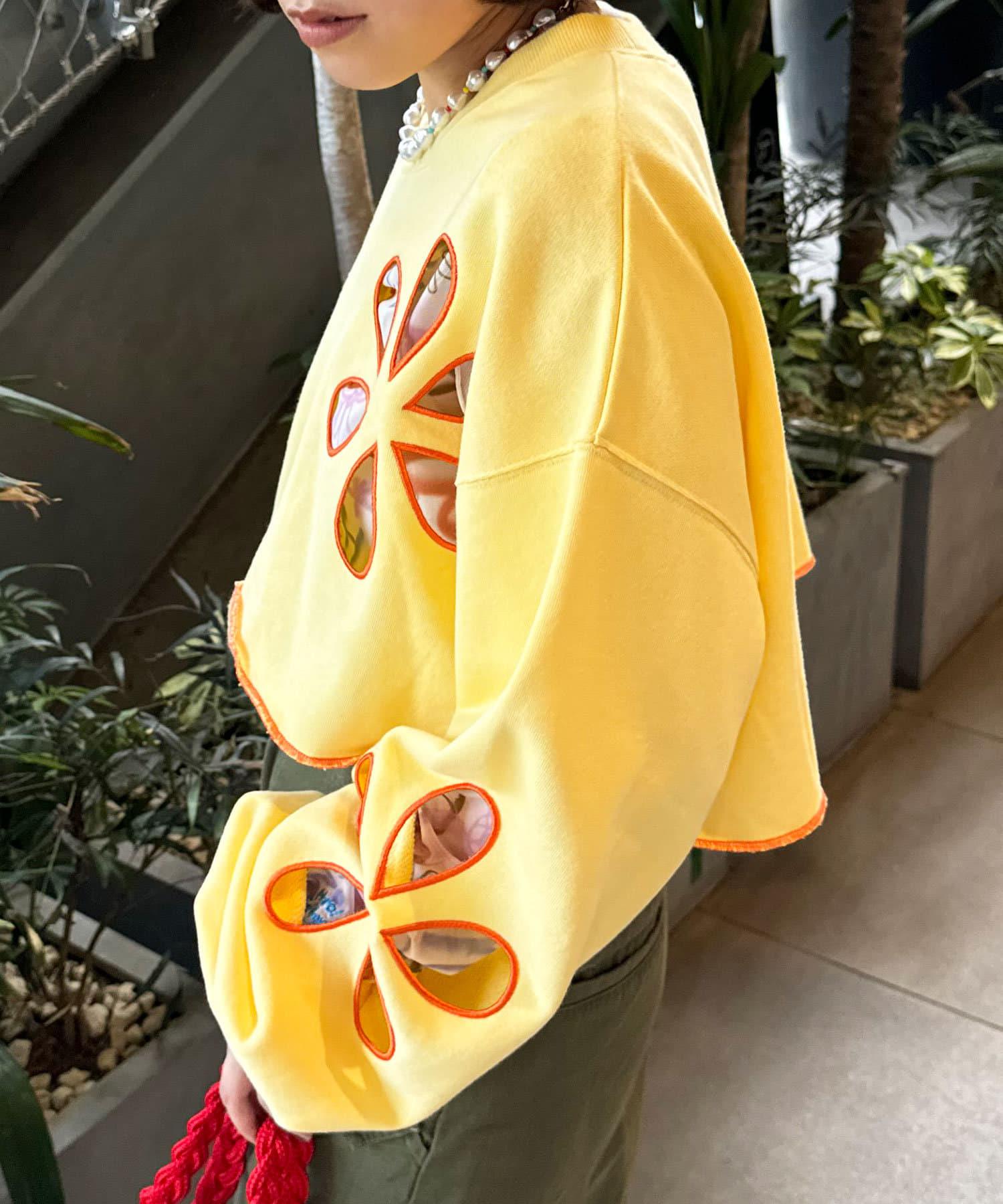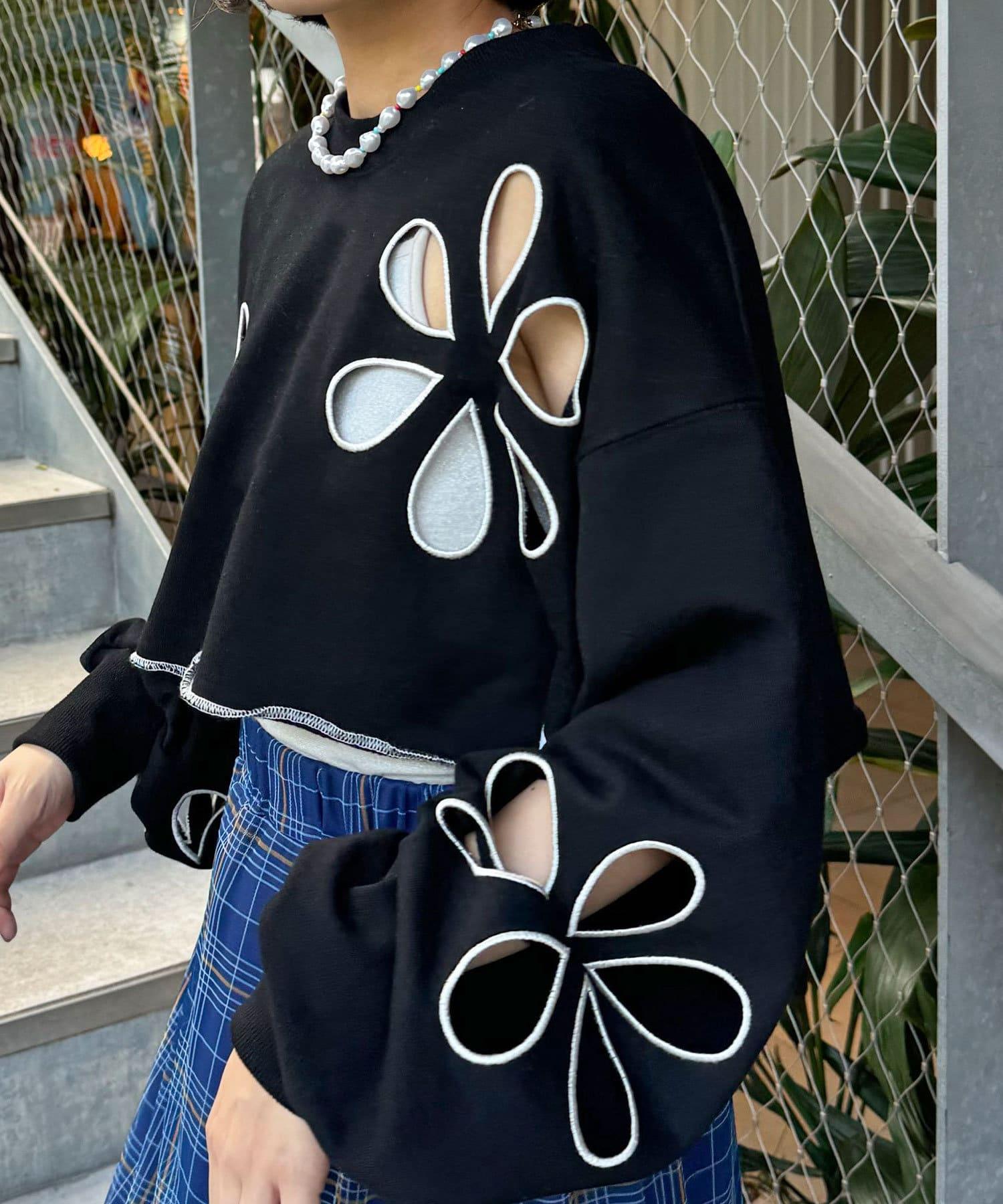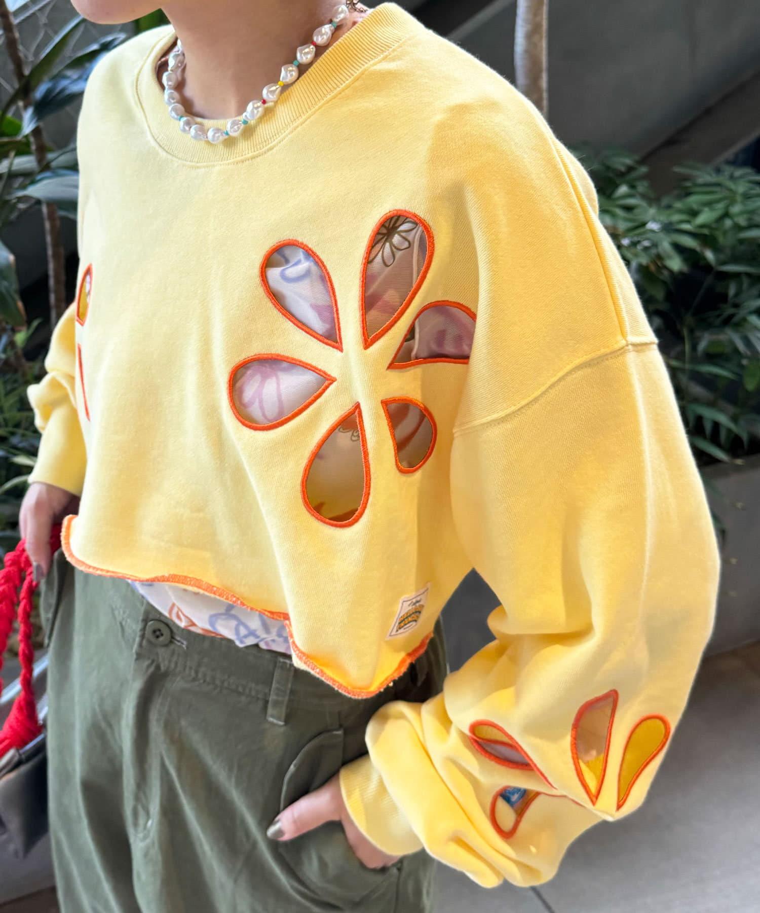 【HELLO.SANFRANCISCO/你好,舊金山】花朵剪裁短款衛衣