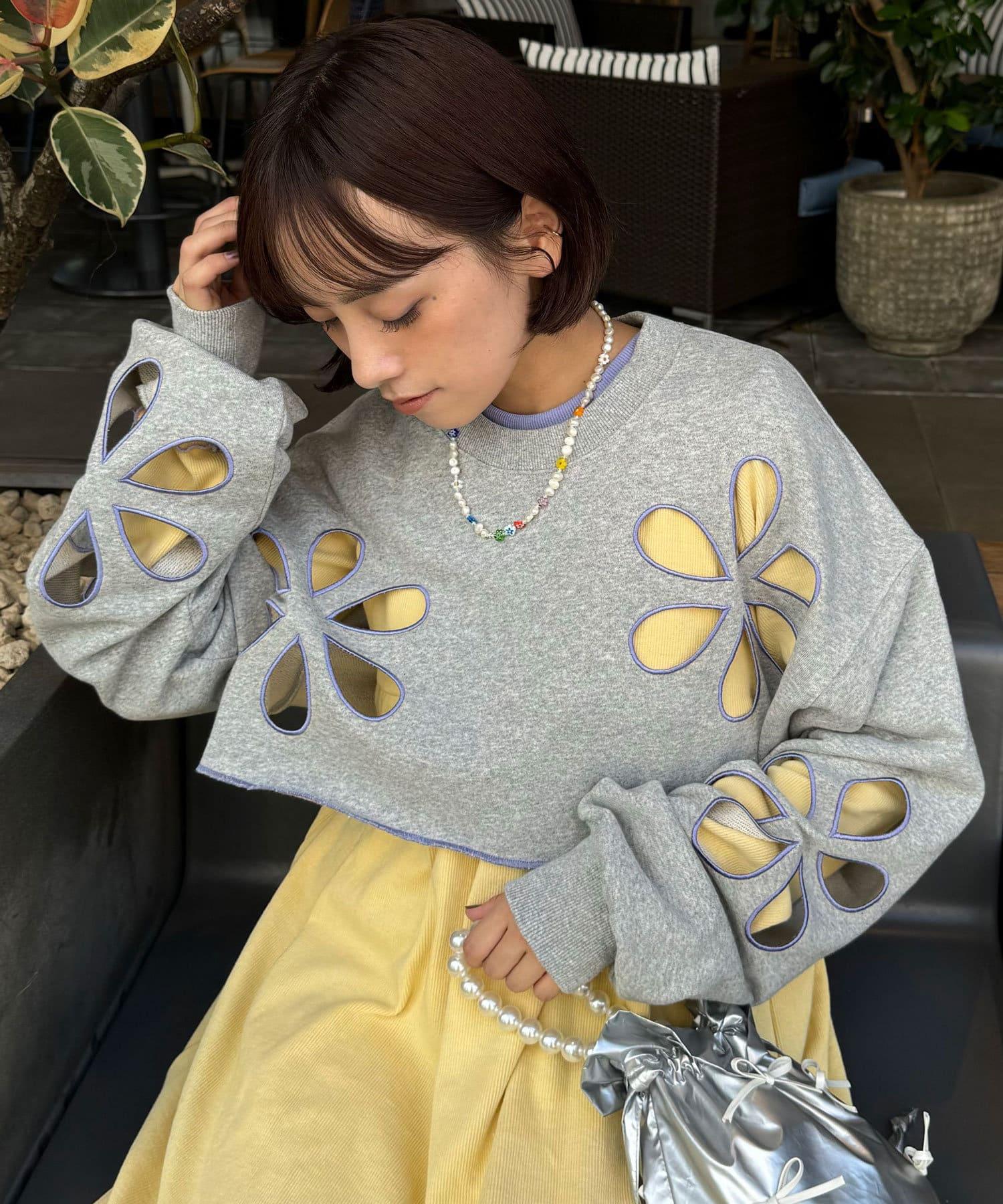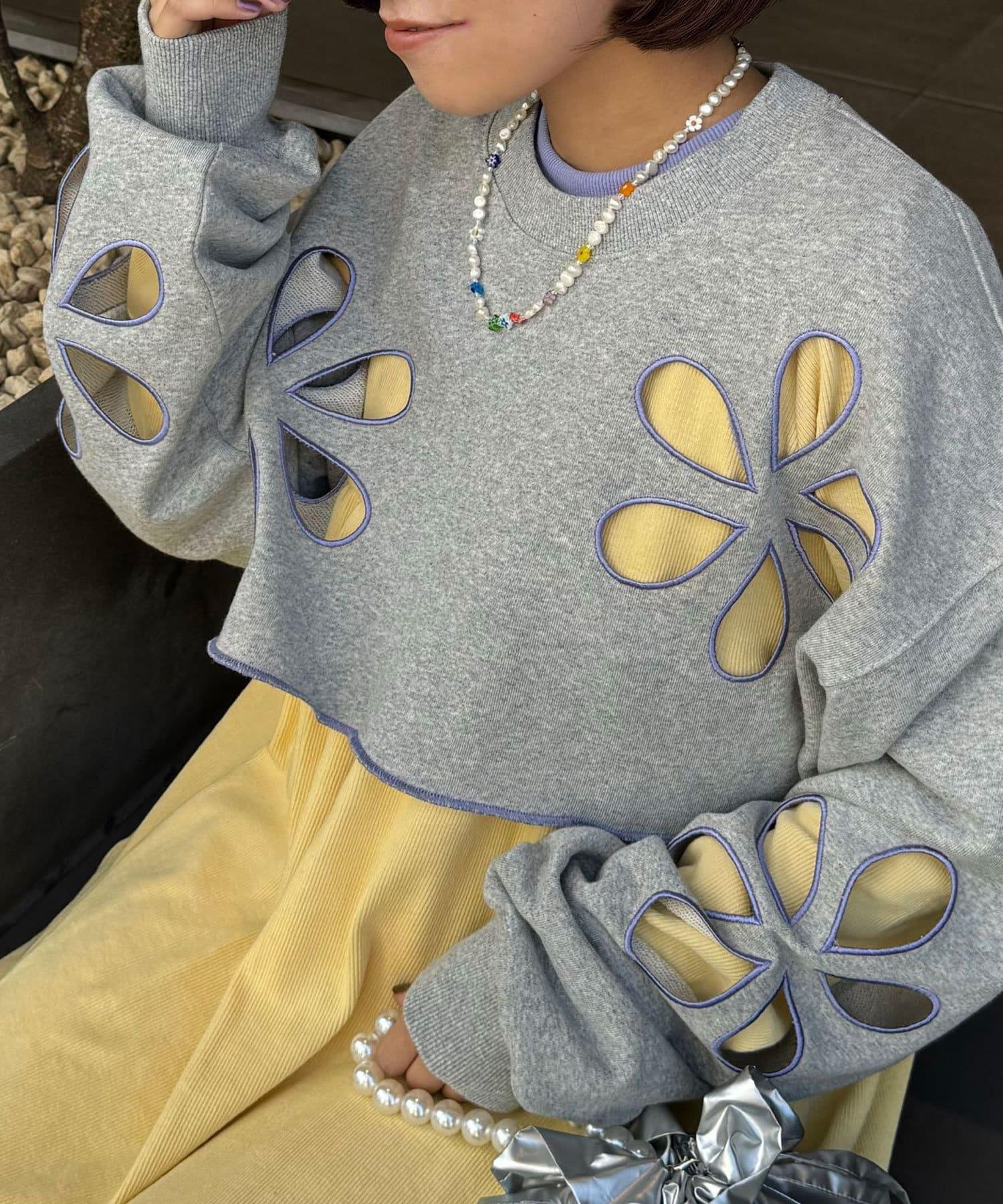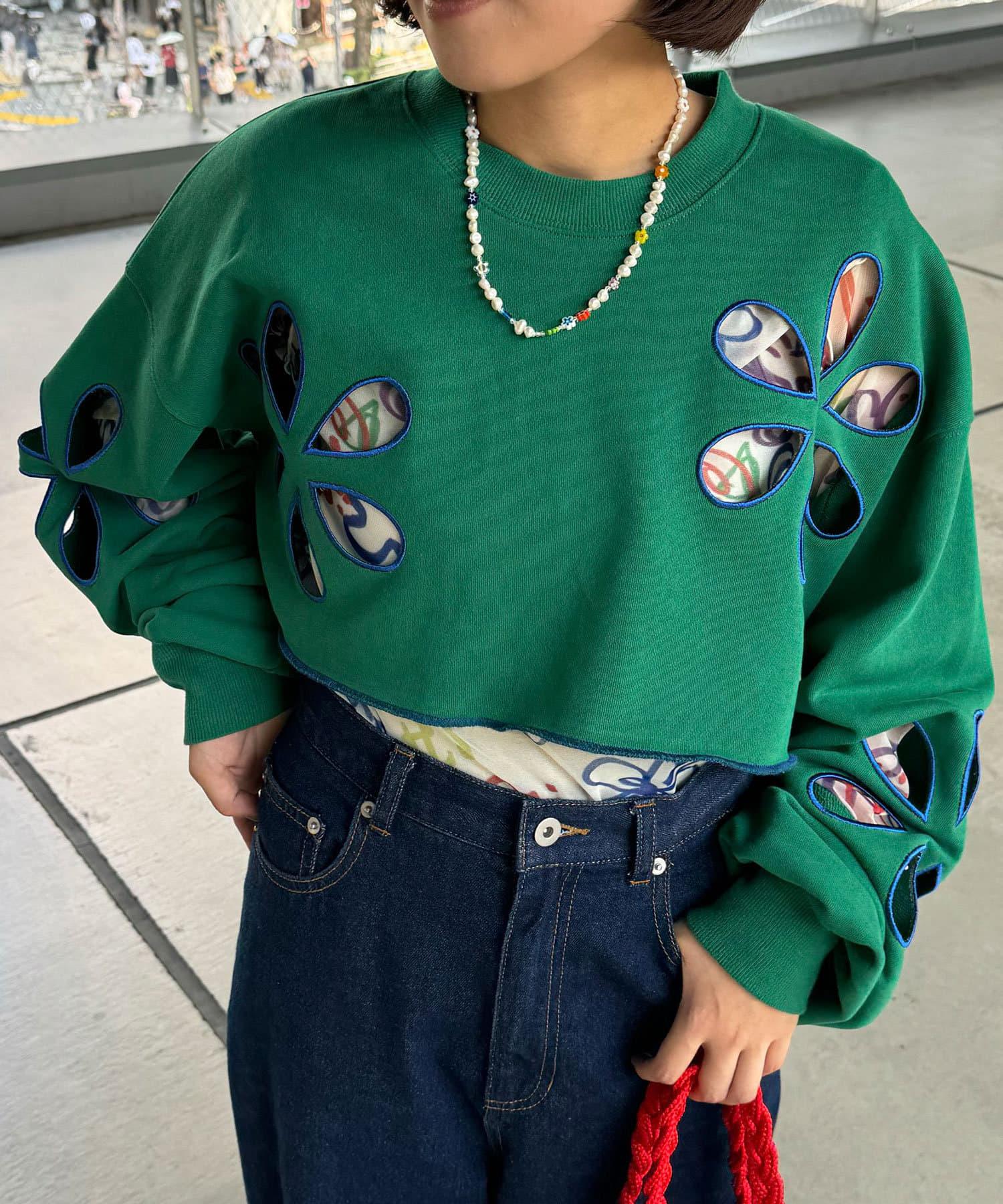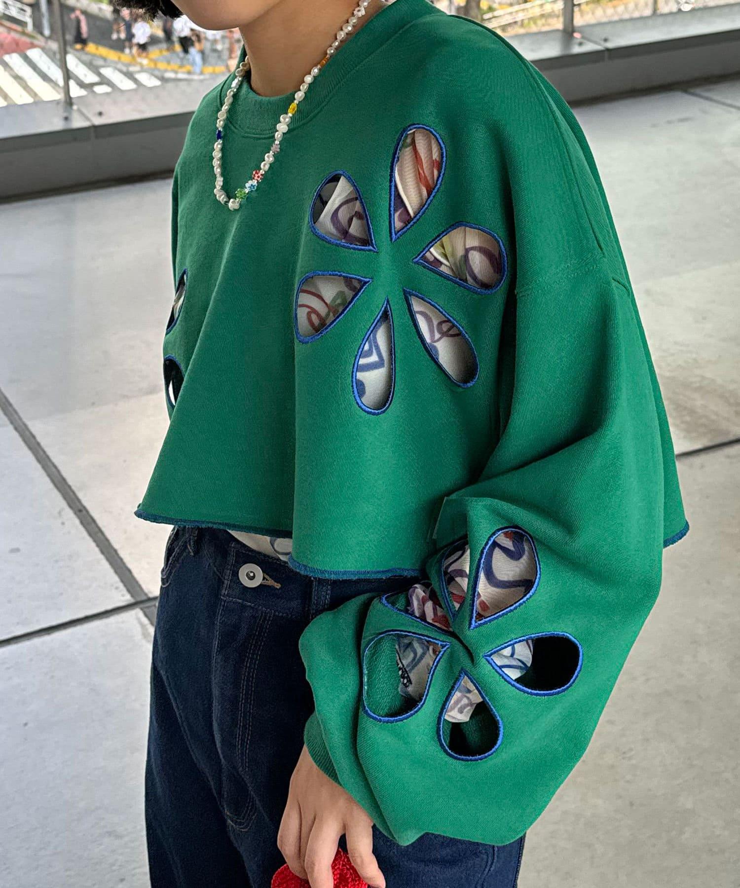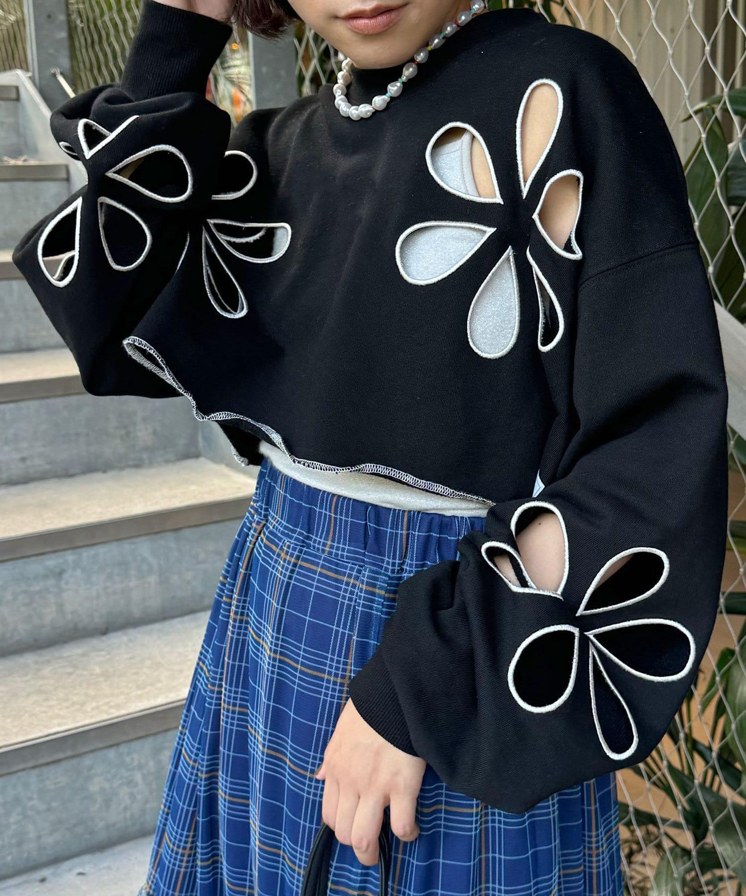 【HELLO.SANFRANCISCO/你好,舊金山】花朵剪裁短款衛衣