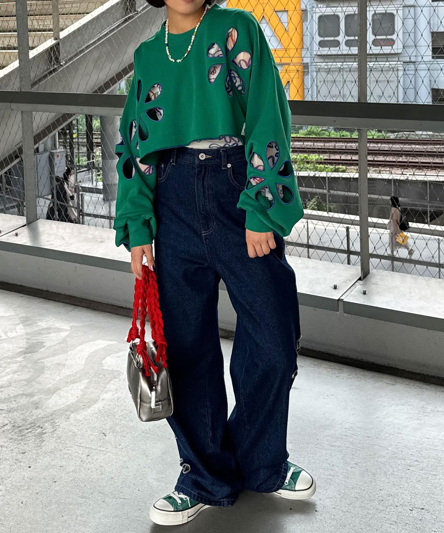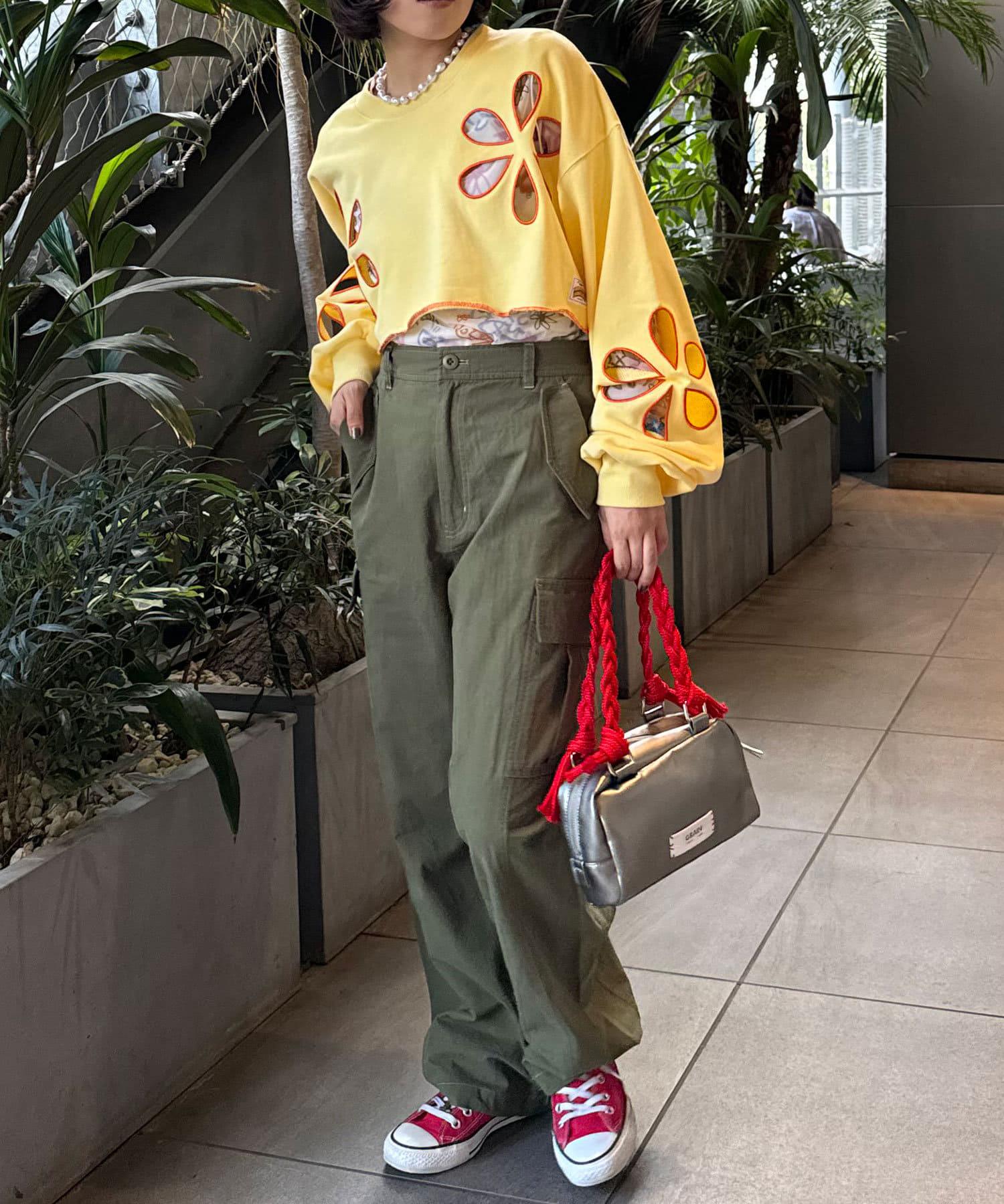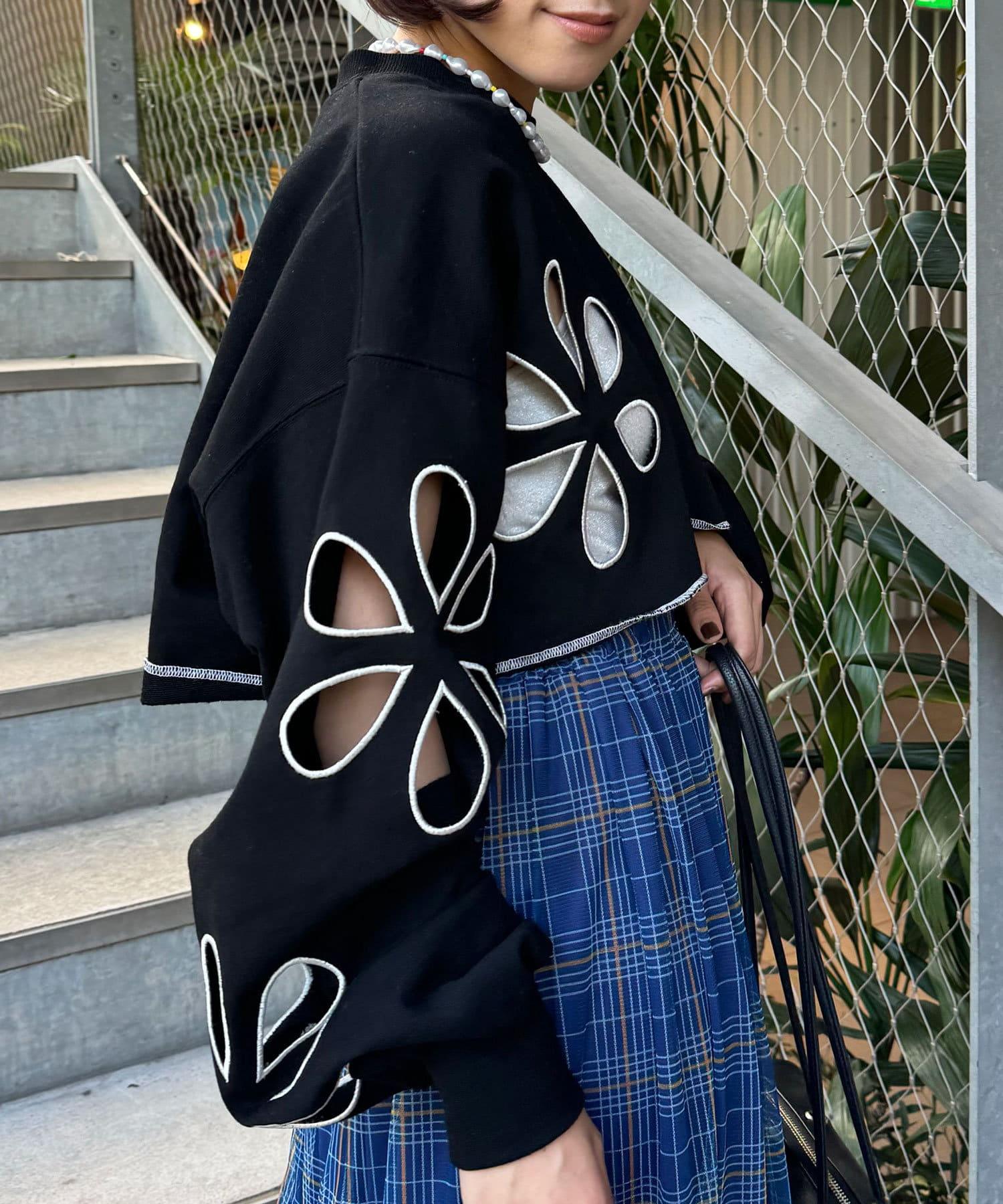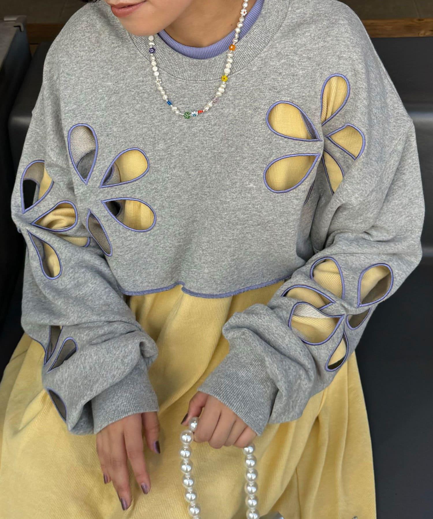 【HELLO.SANFRANCISCO/你好,舊金山】花朵剪裁短款衛衣