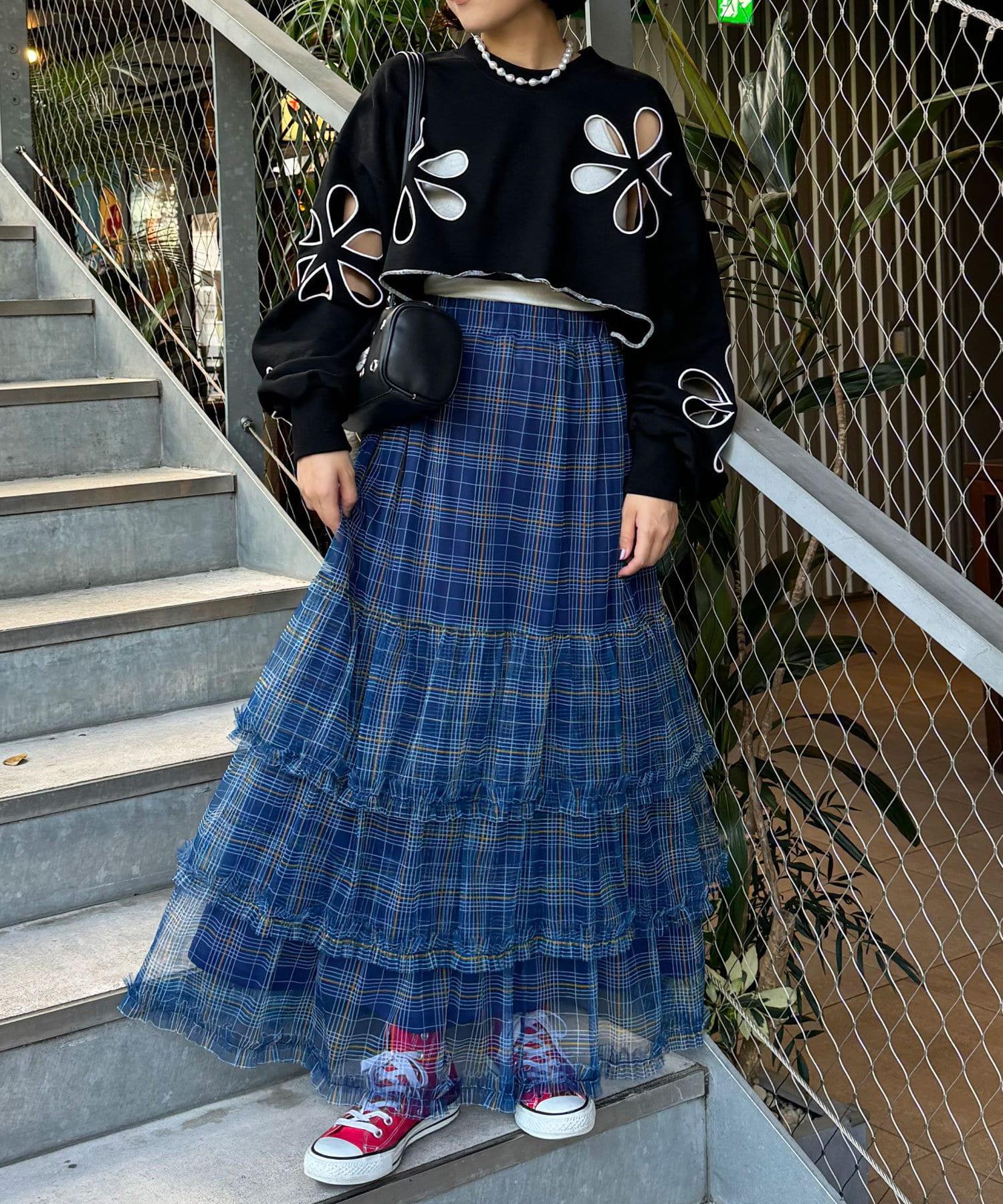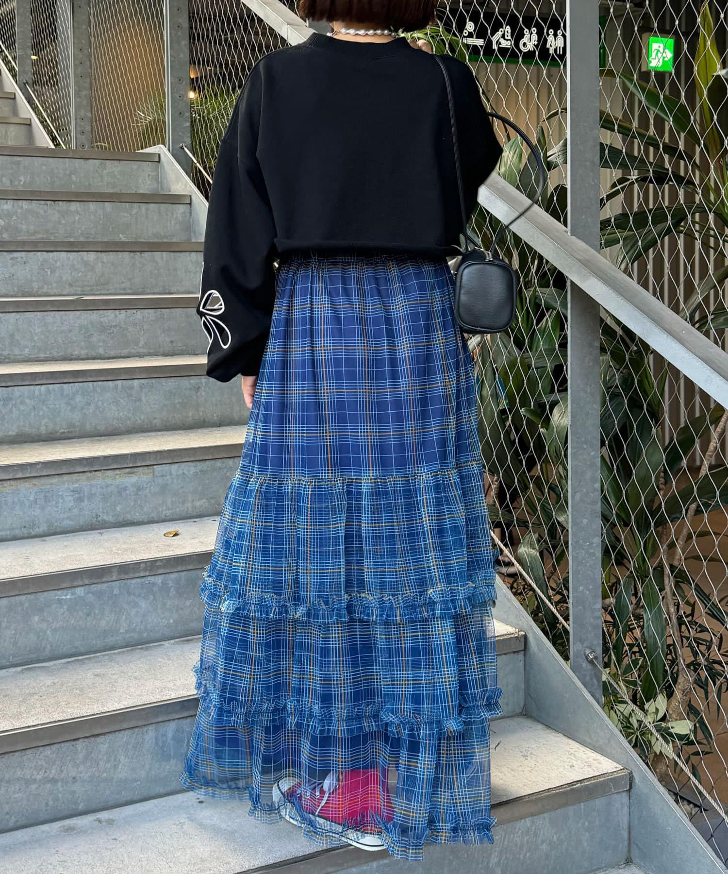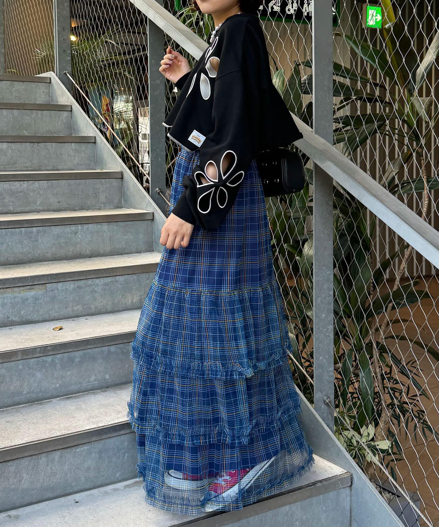 下裝可搭配牛仔短褲,打造休閒造型,也可搭配裙子,打造少女造型。
