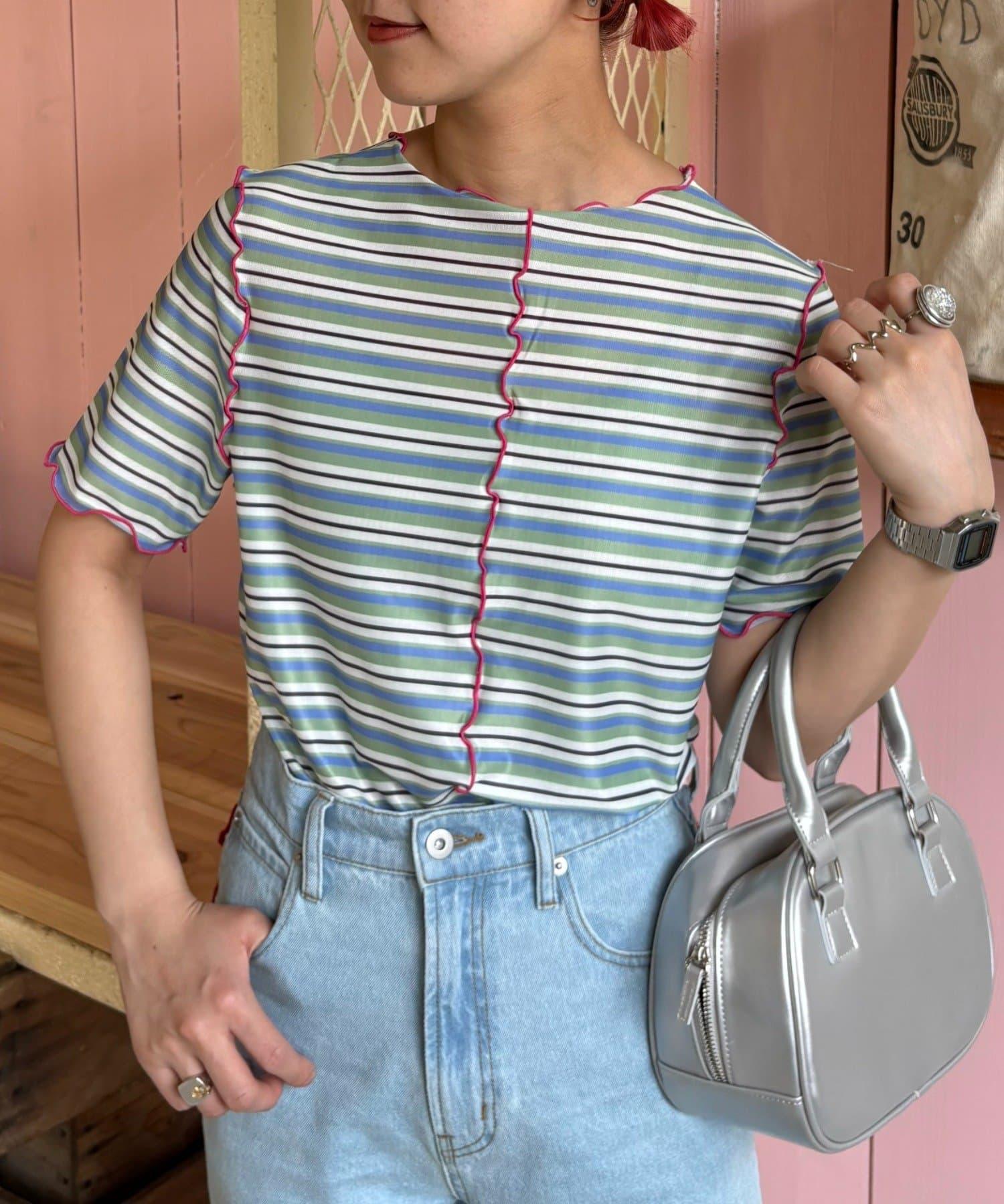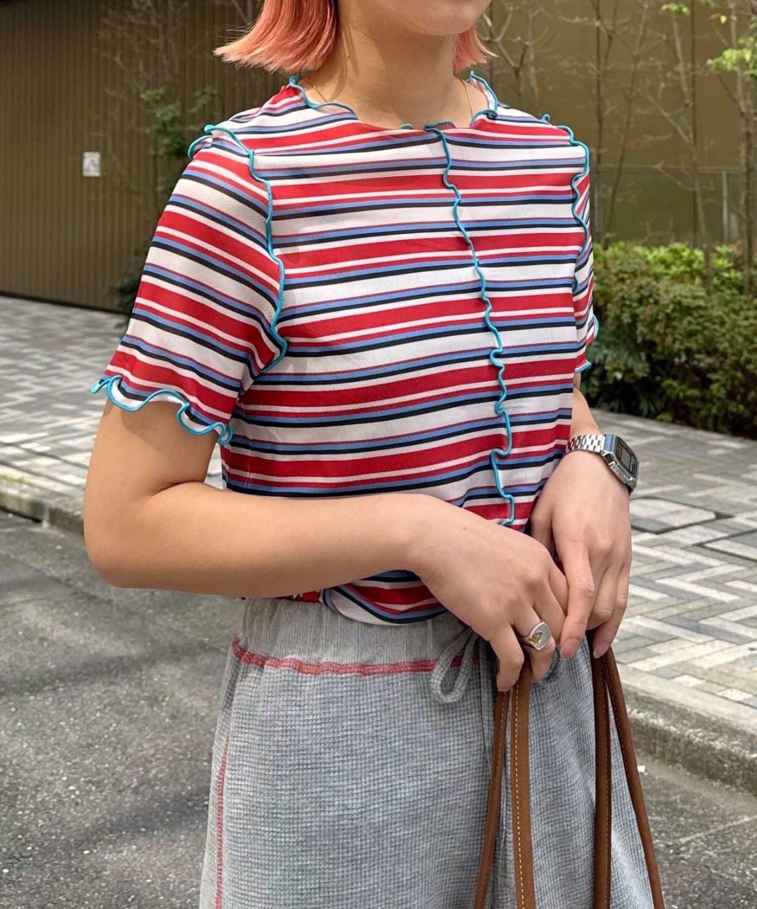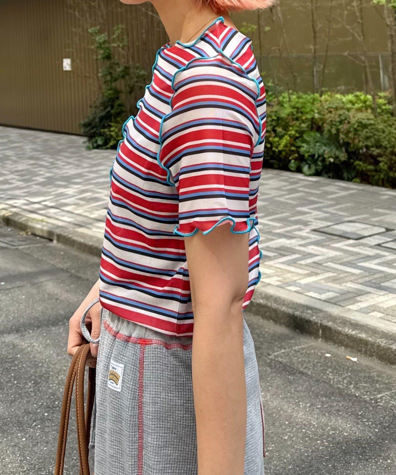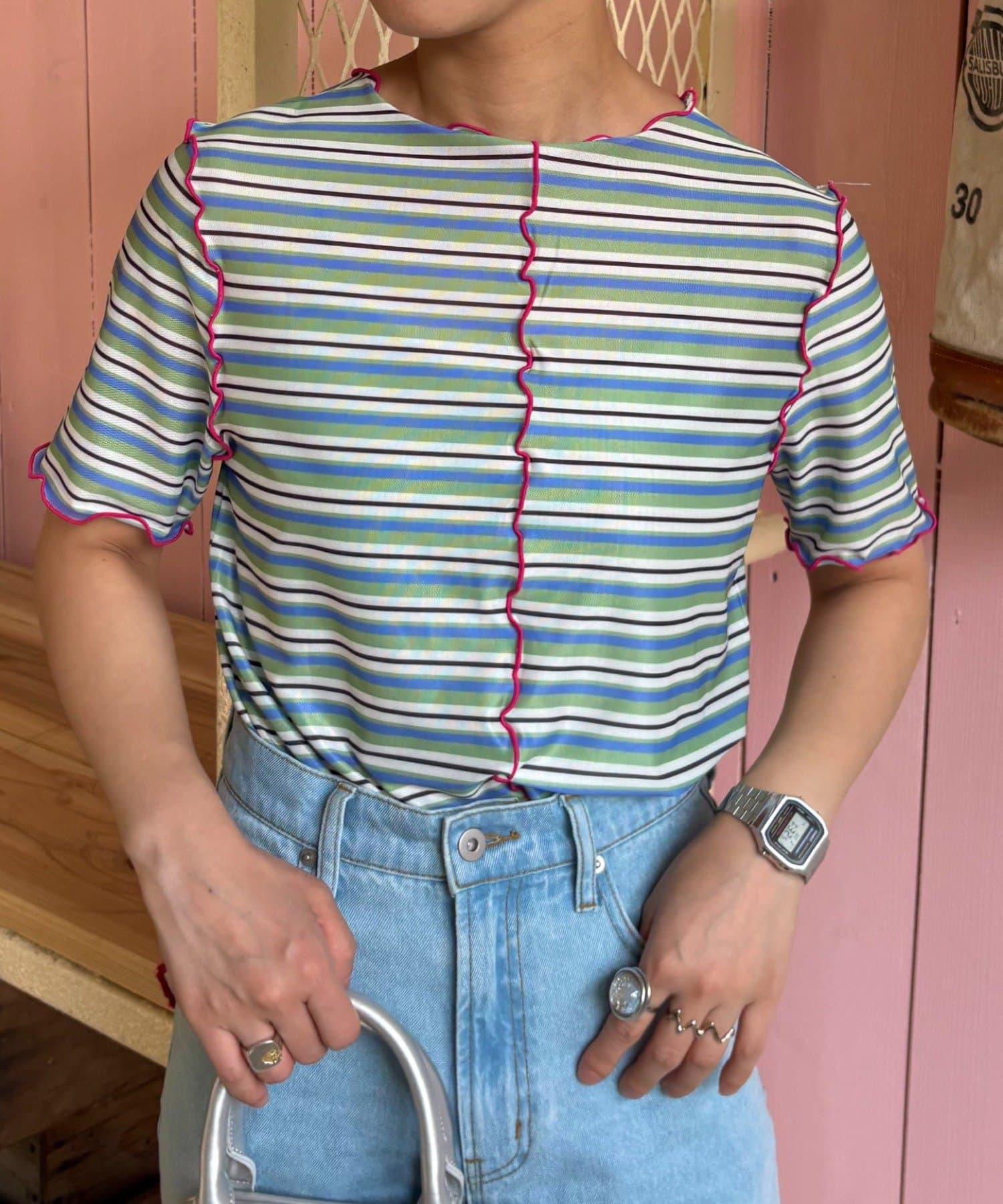 【HELLO.SANFRANCISCO】多色條紋露肩上衣