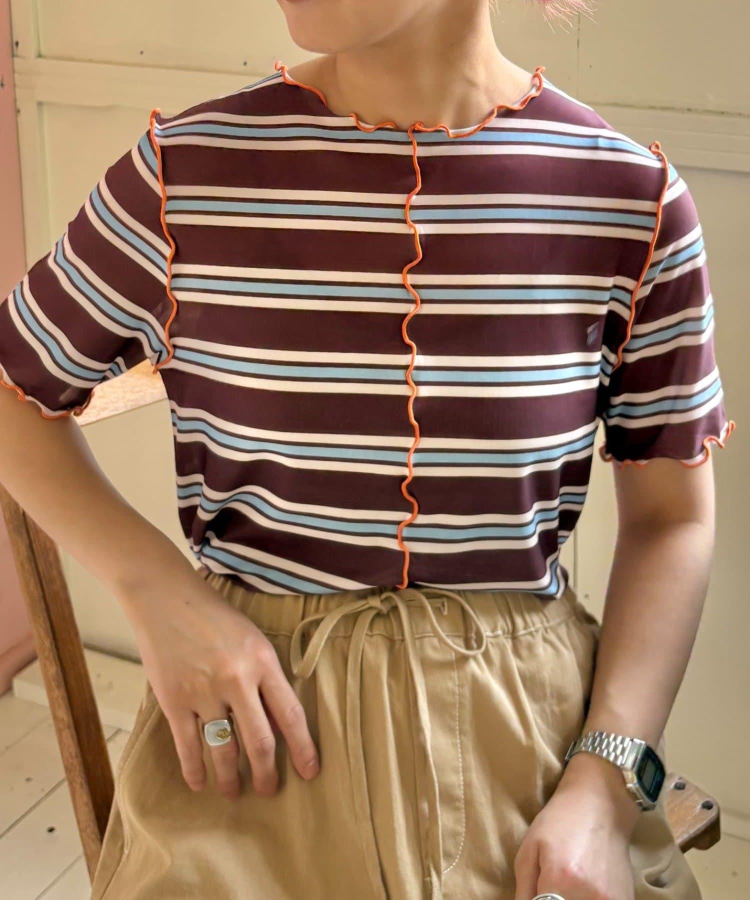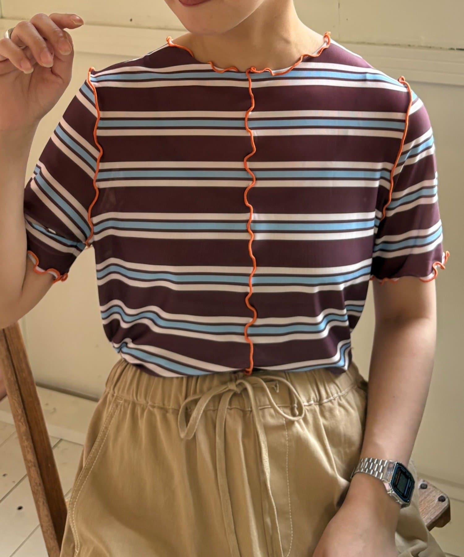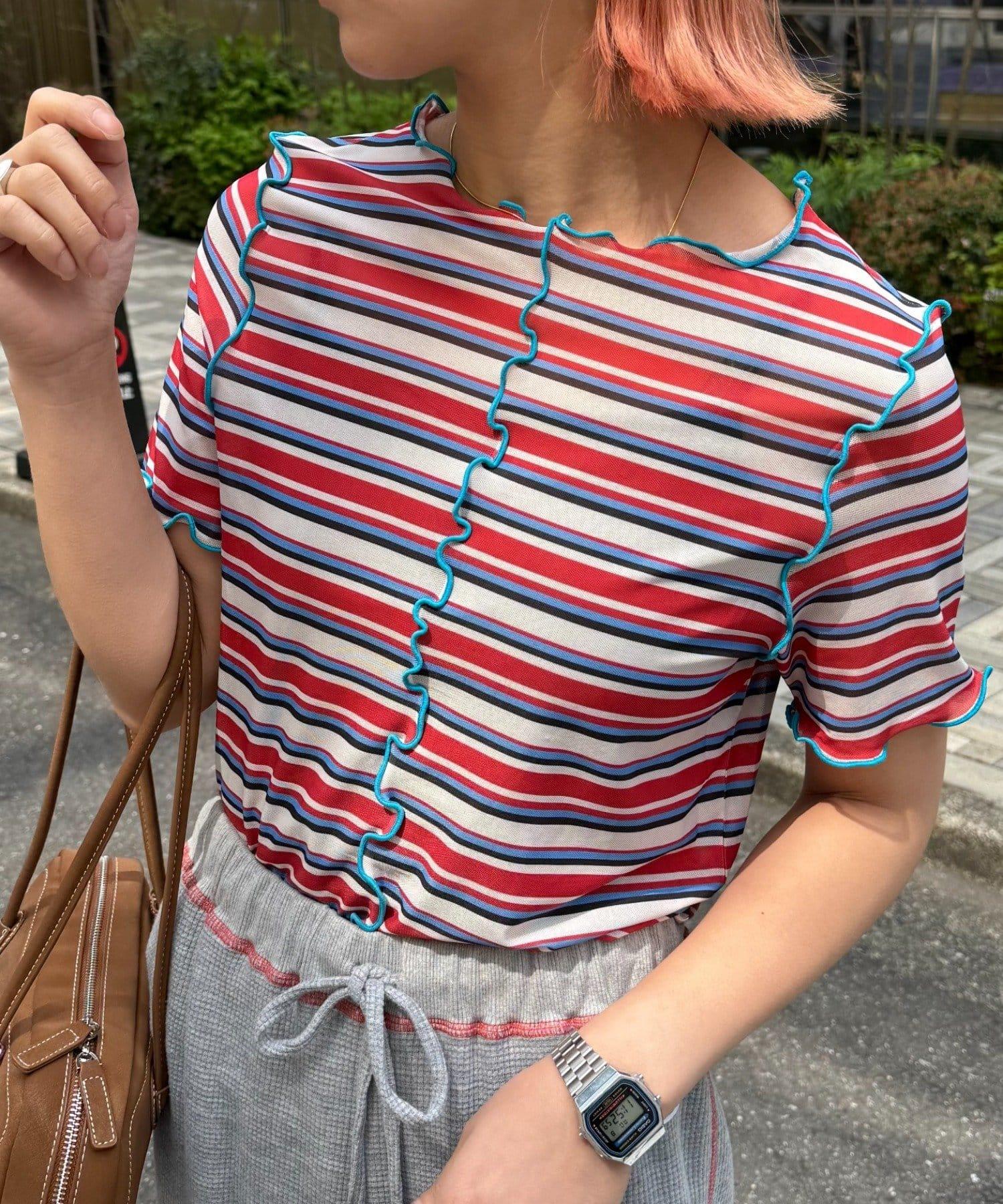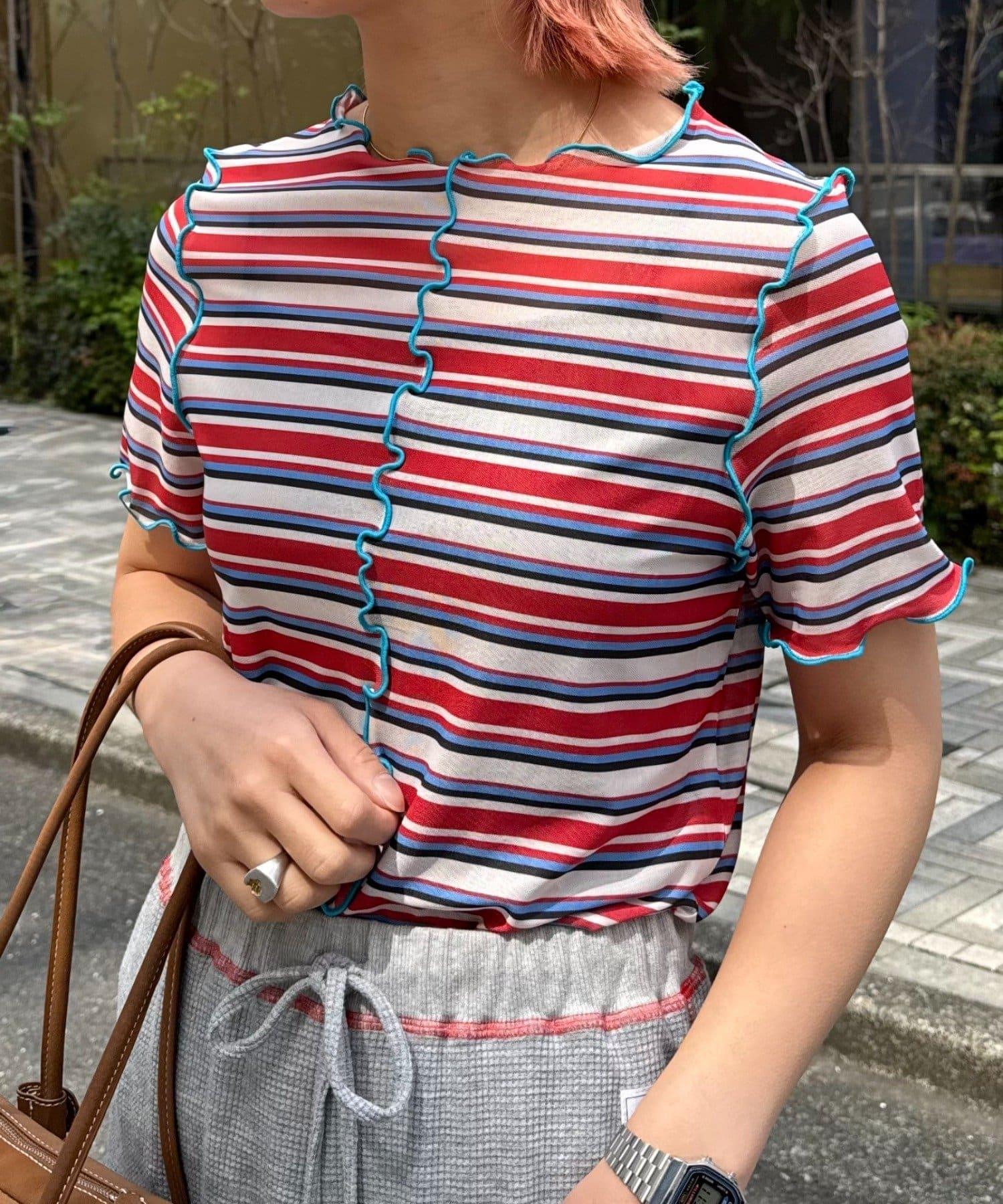 【HELLO.SANFRANCISCO】多色條紋露肩上衣