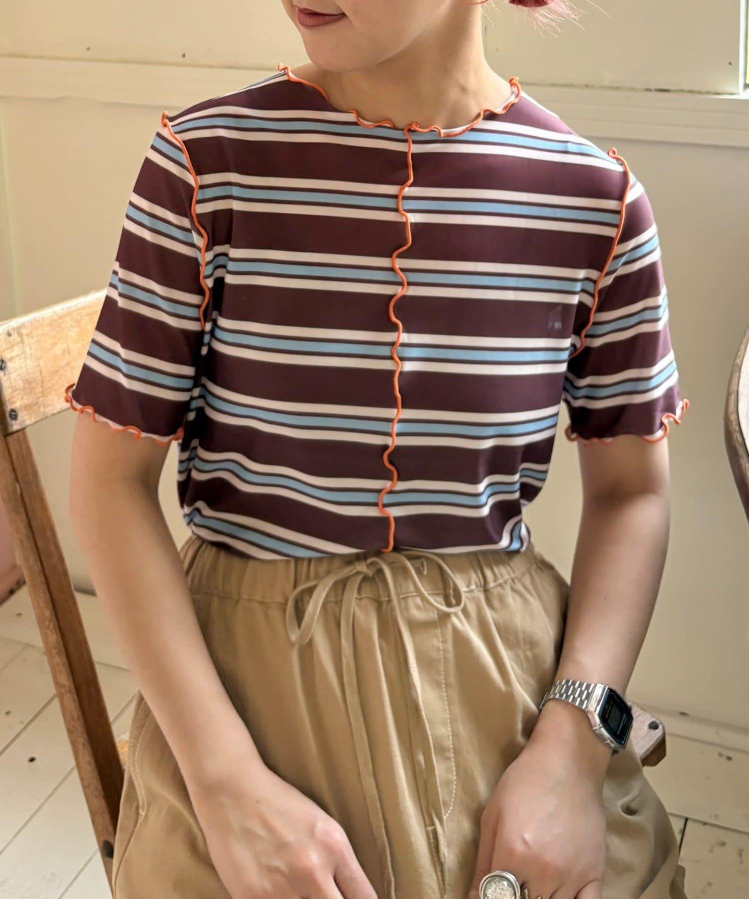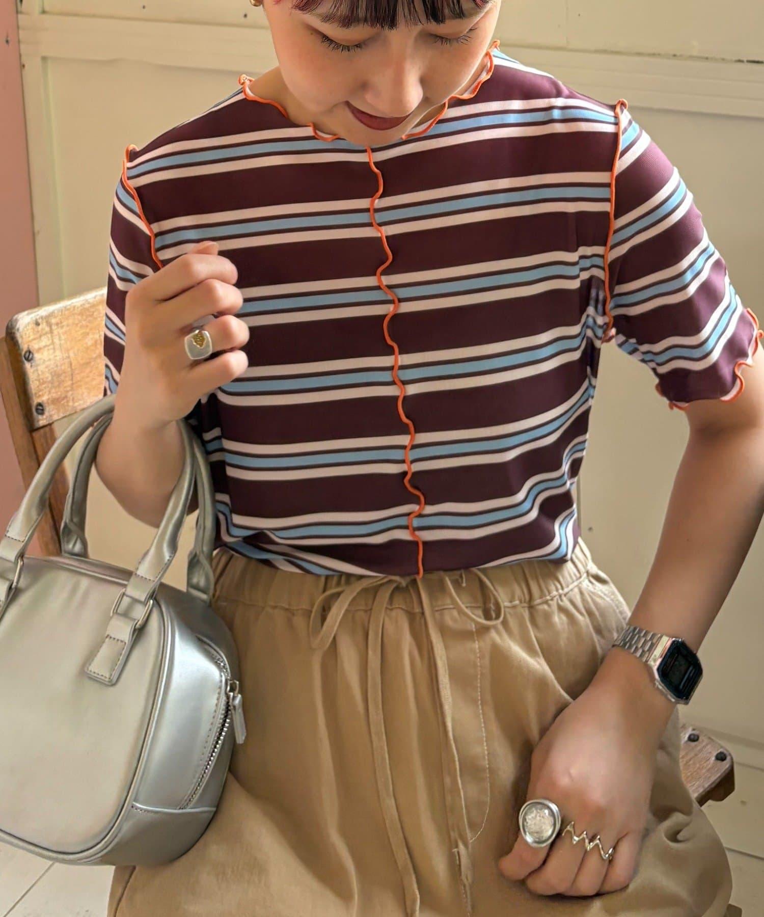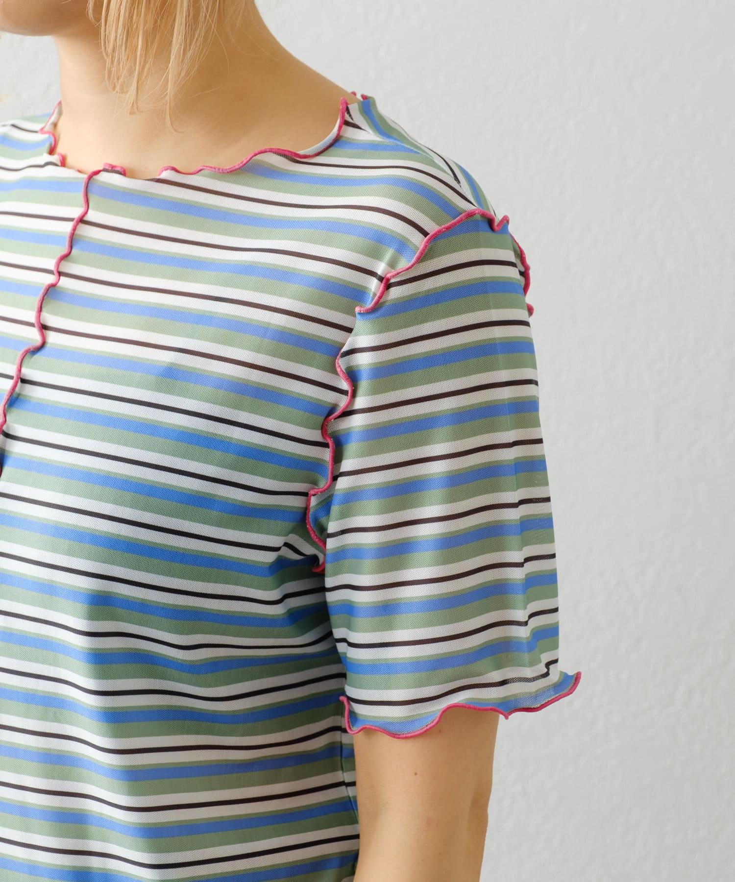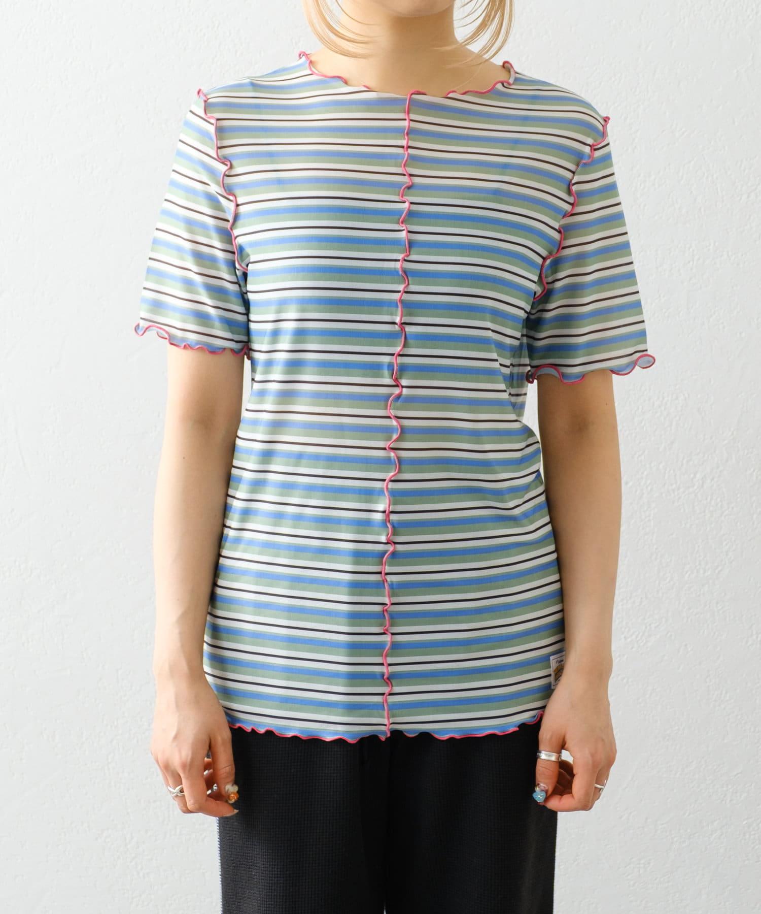 【HELLO.SANFRANCISCO】多色條紋露肩上衣