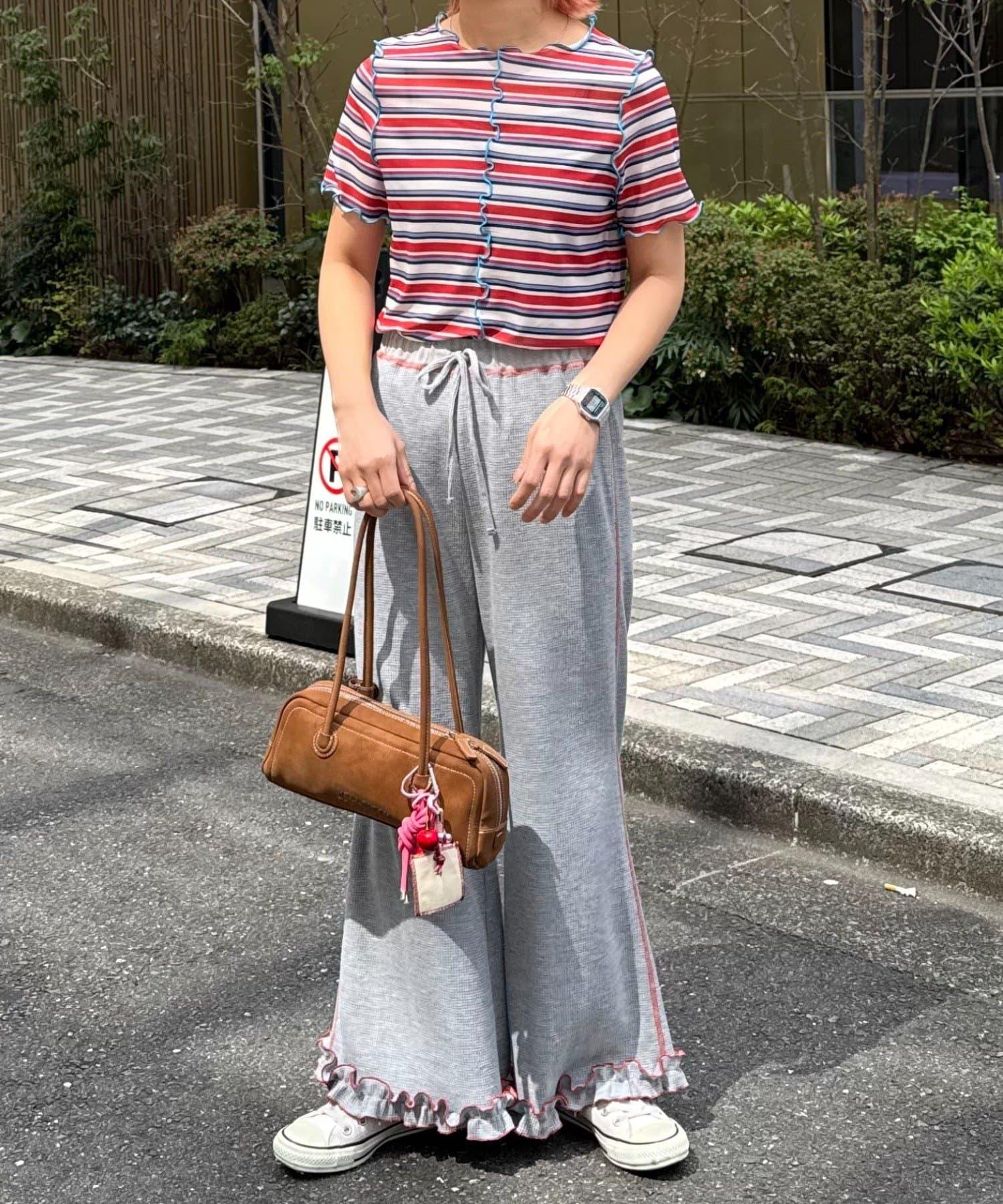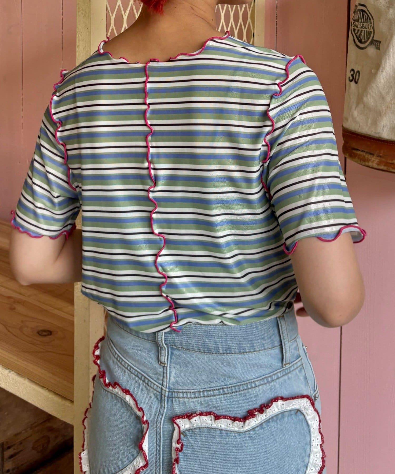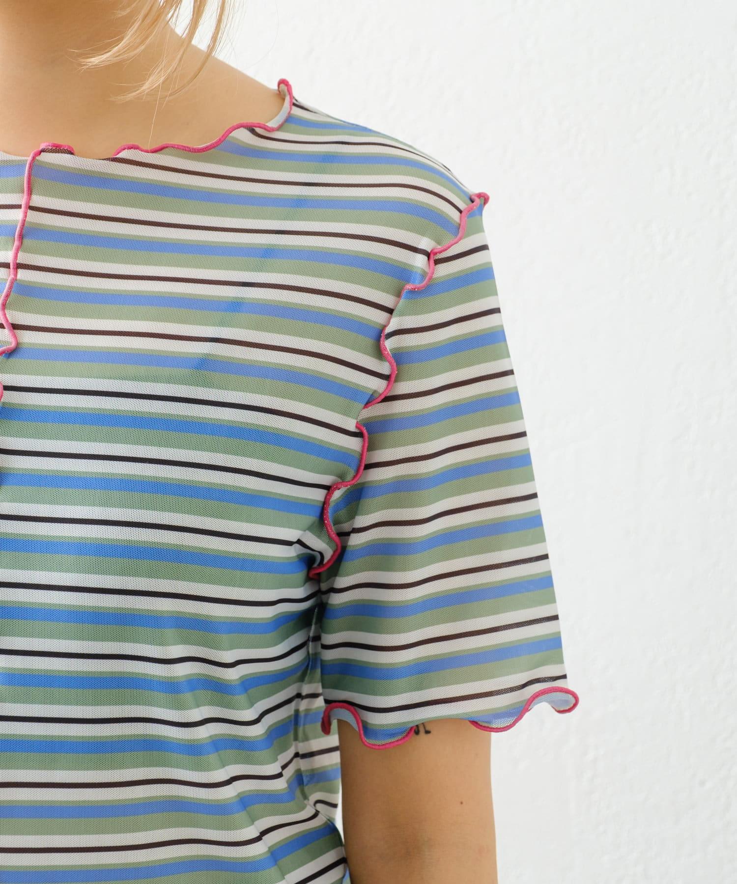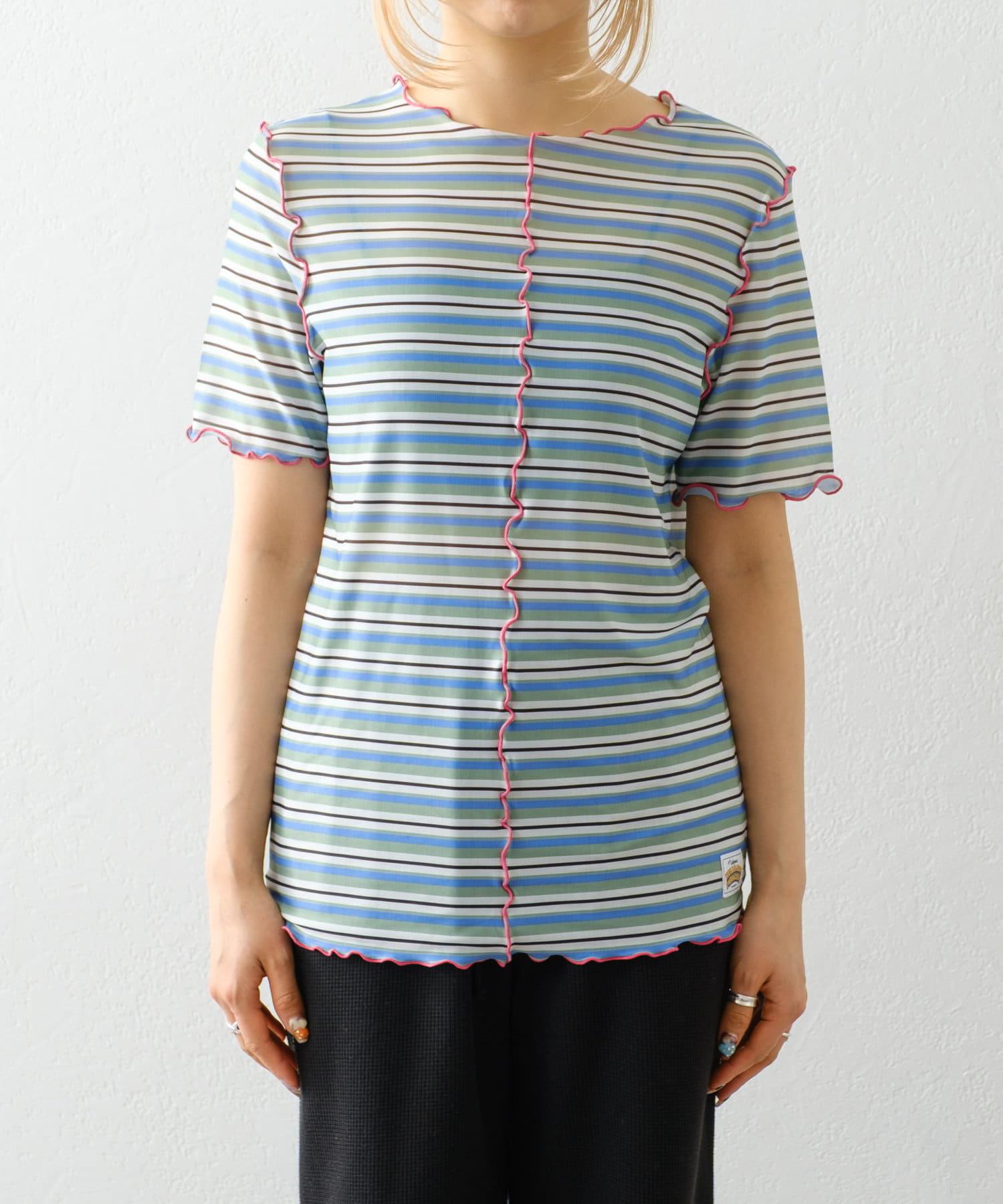 【HELLO.SANFRANCISCO】多色條紋露肩上衣