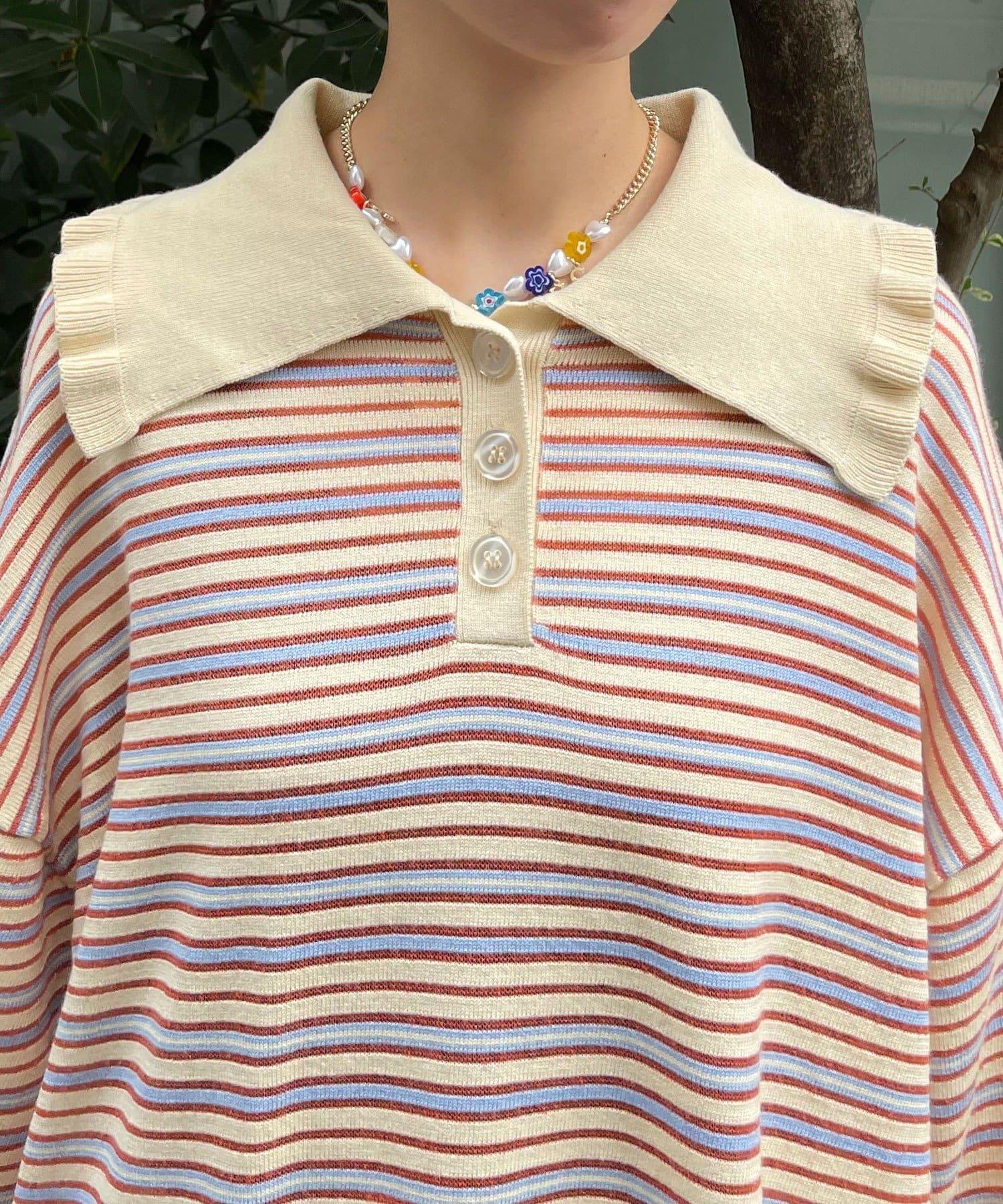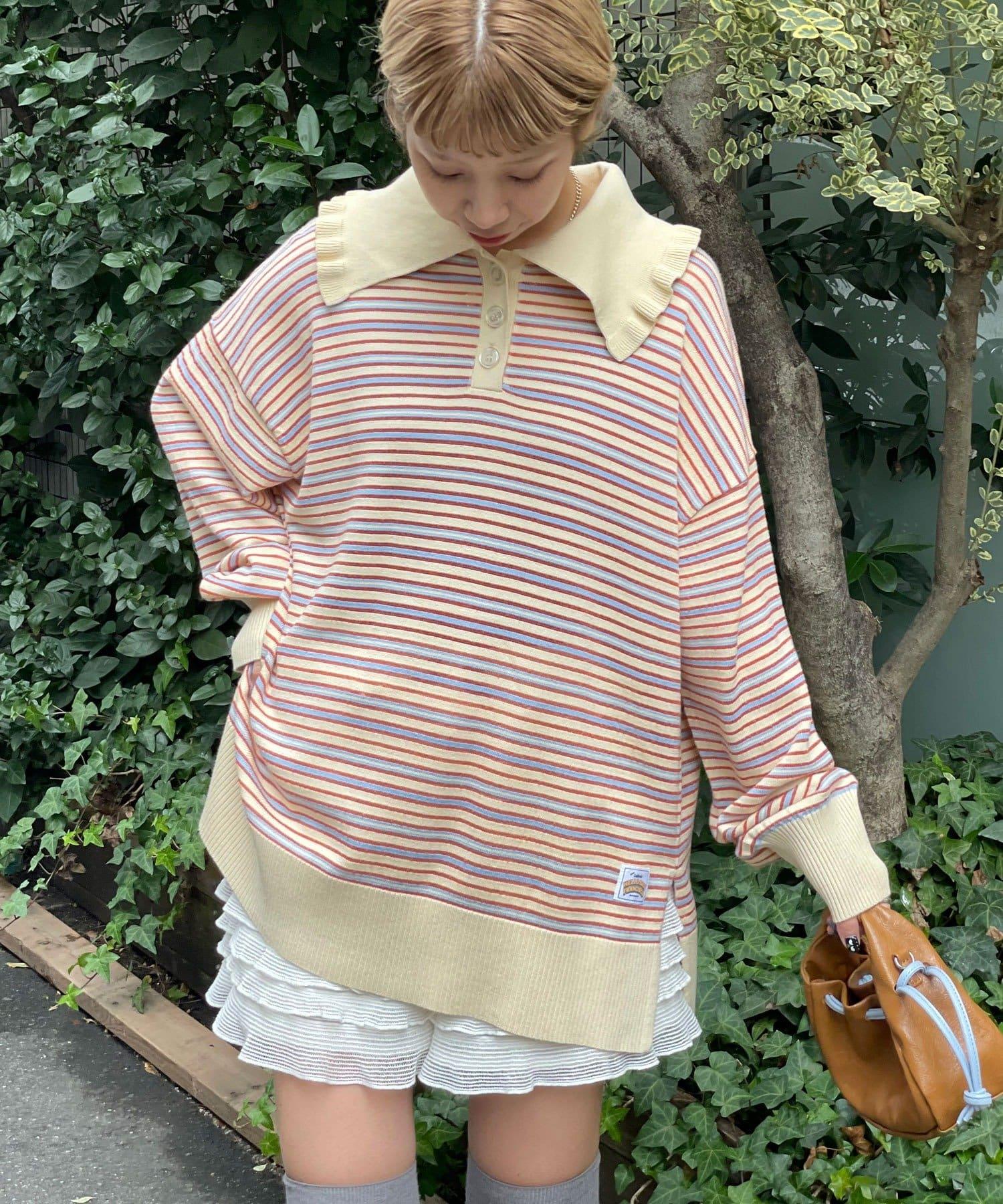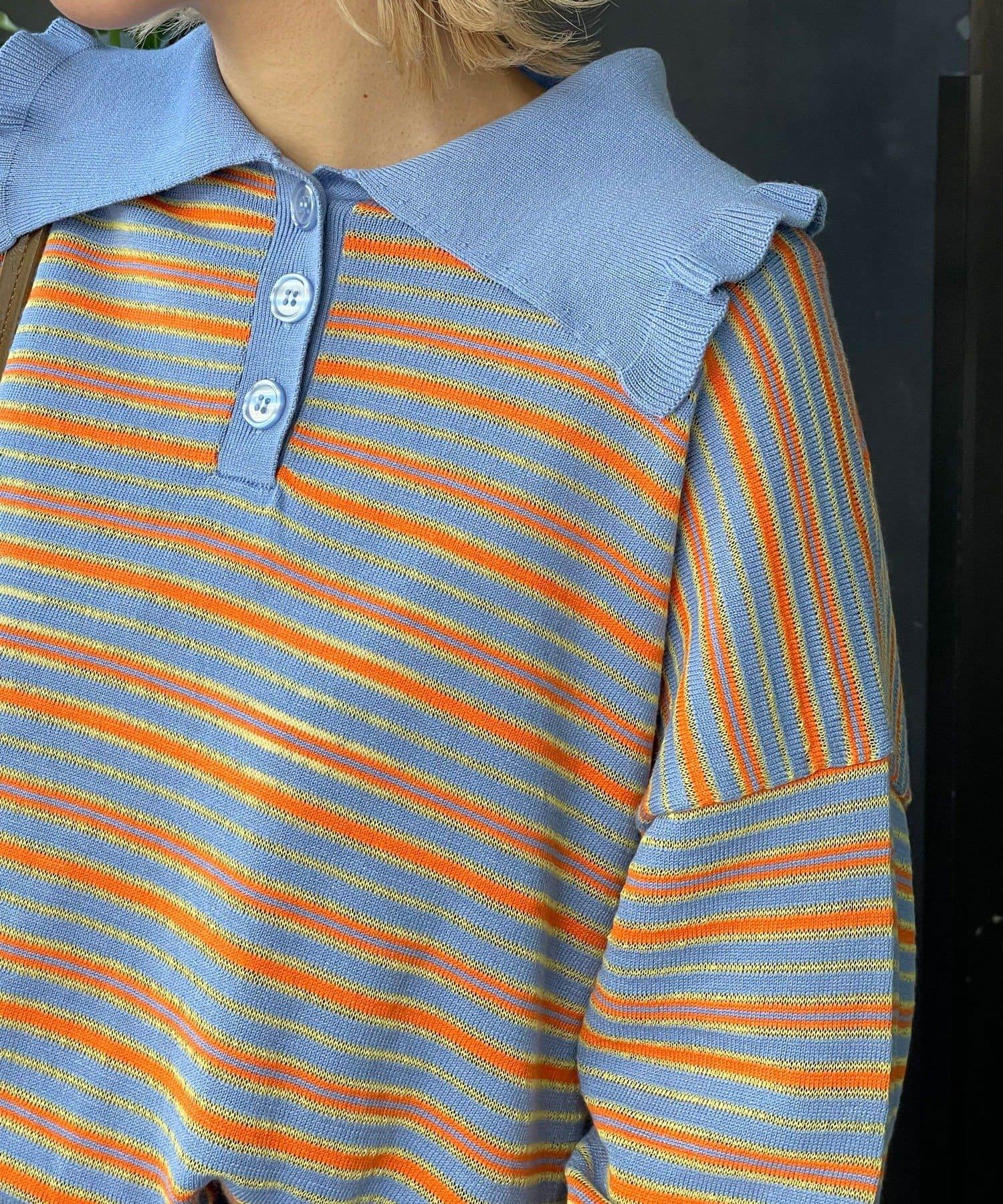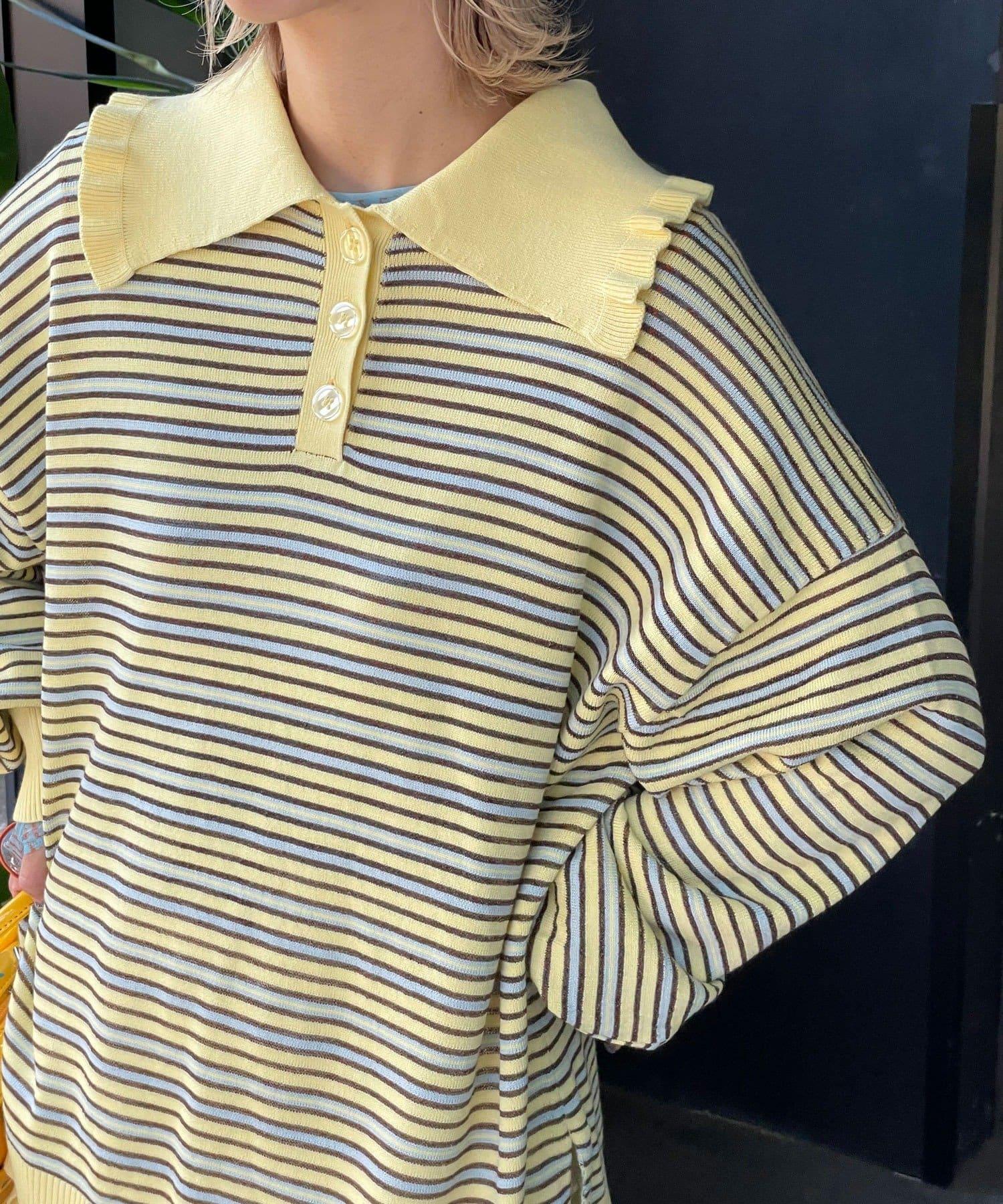 HELLO.SANFRANCISCO 大領條紋設計 POLO款 針織上衣