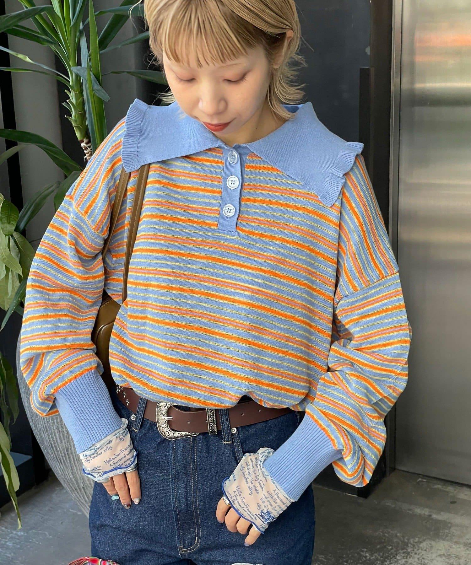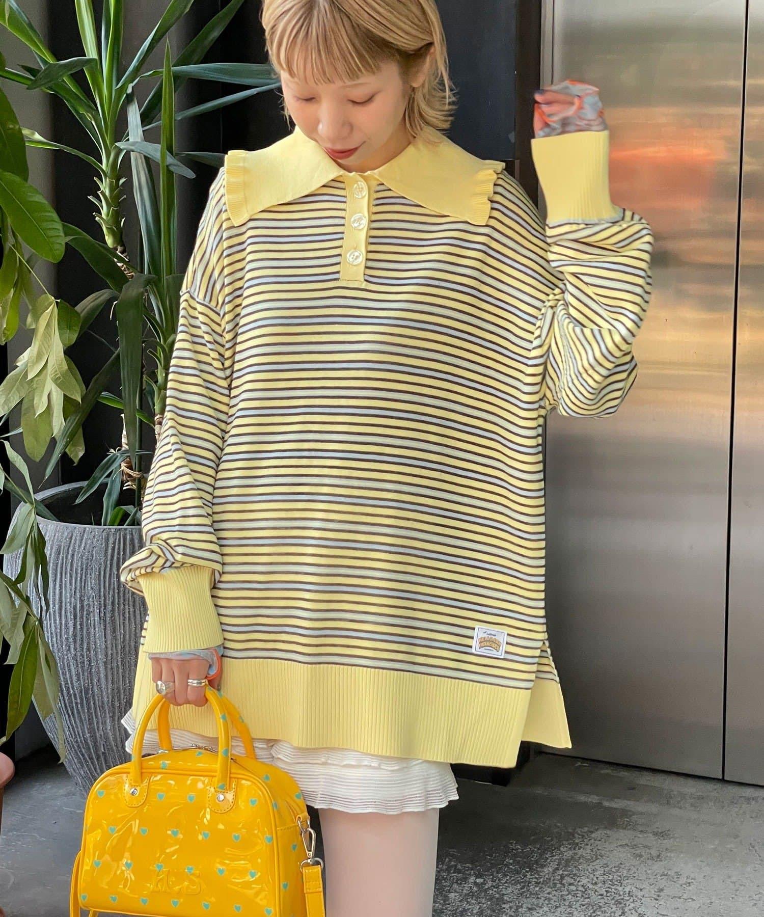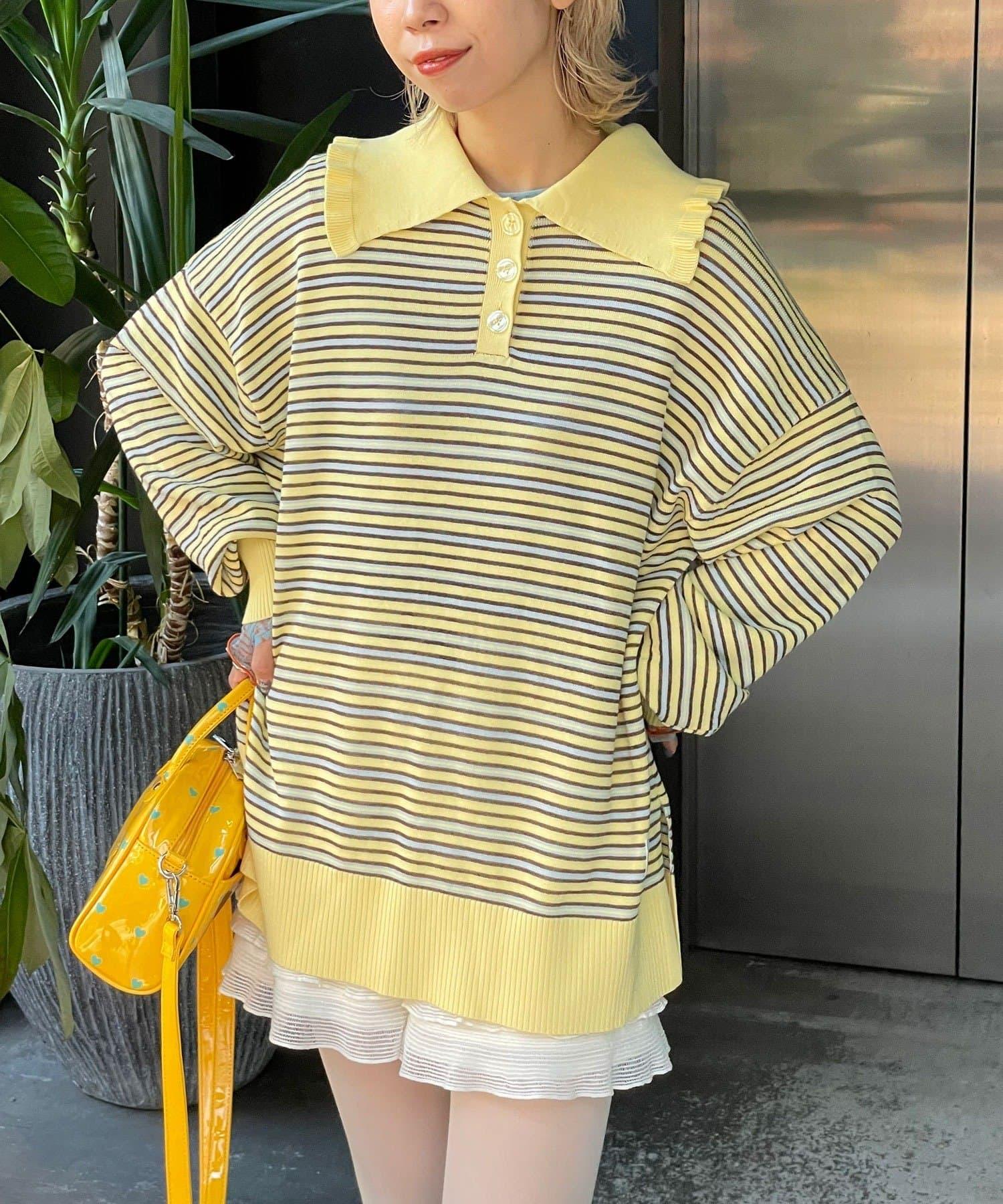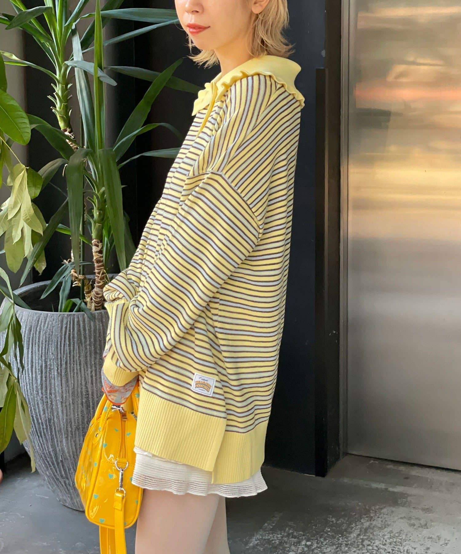 HELLO.SANFRANCISCO 大領條紋設計 POLO款 針織上衣