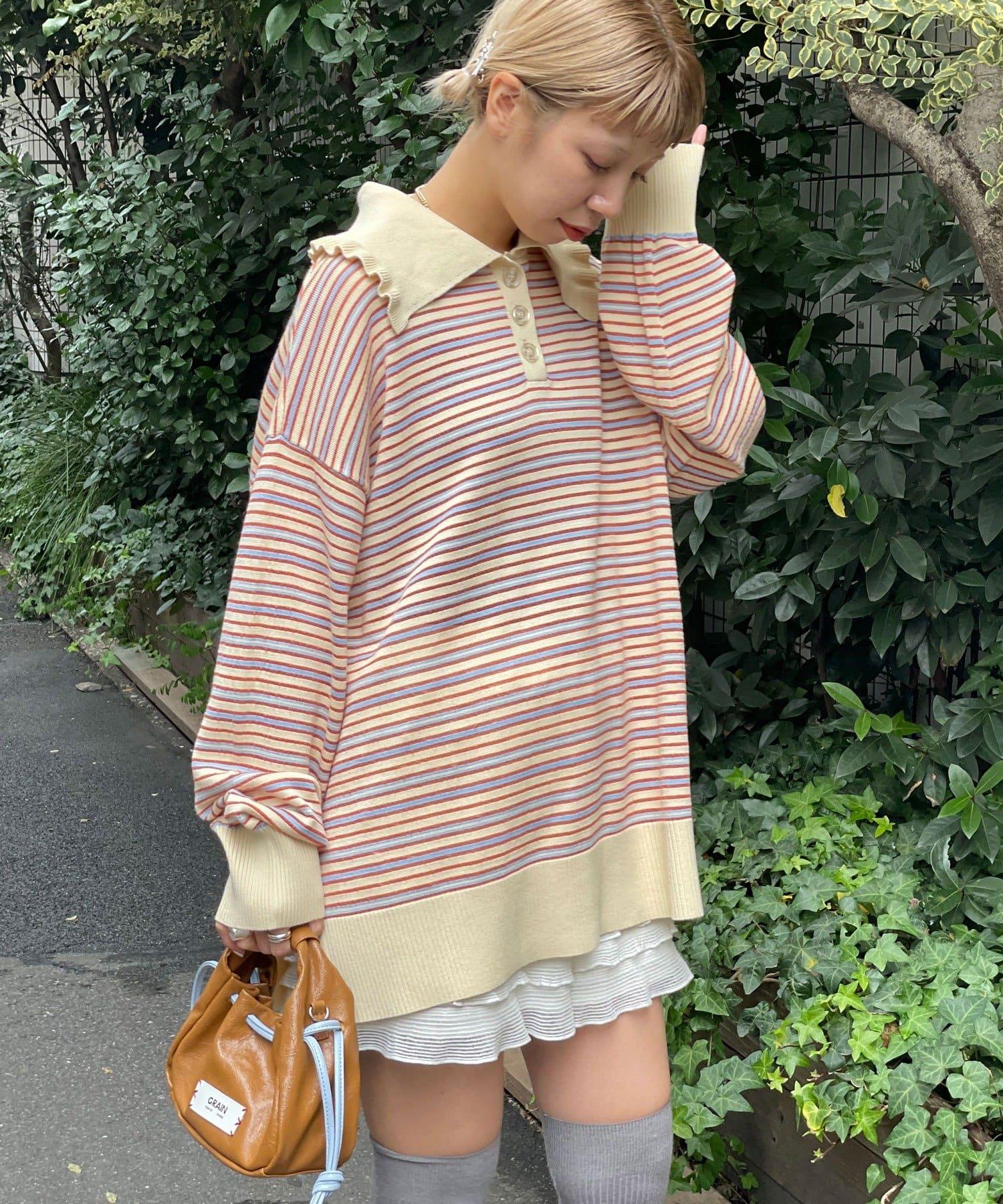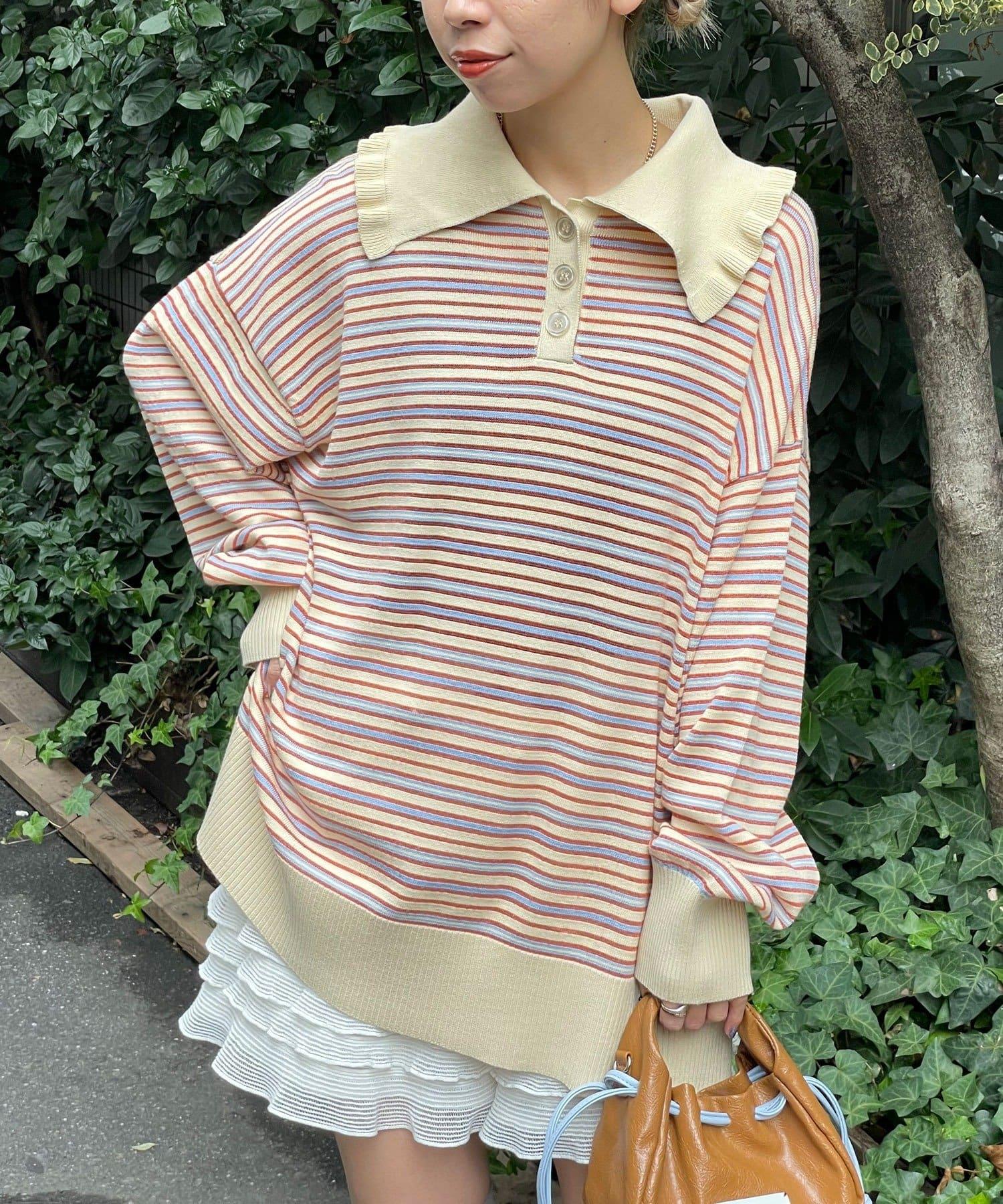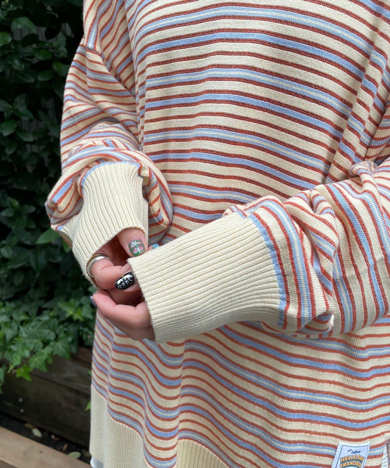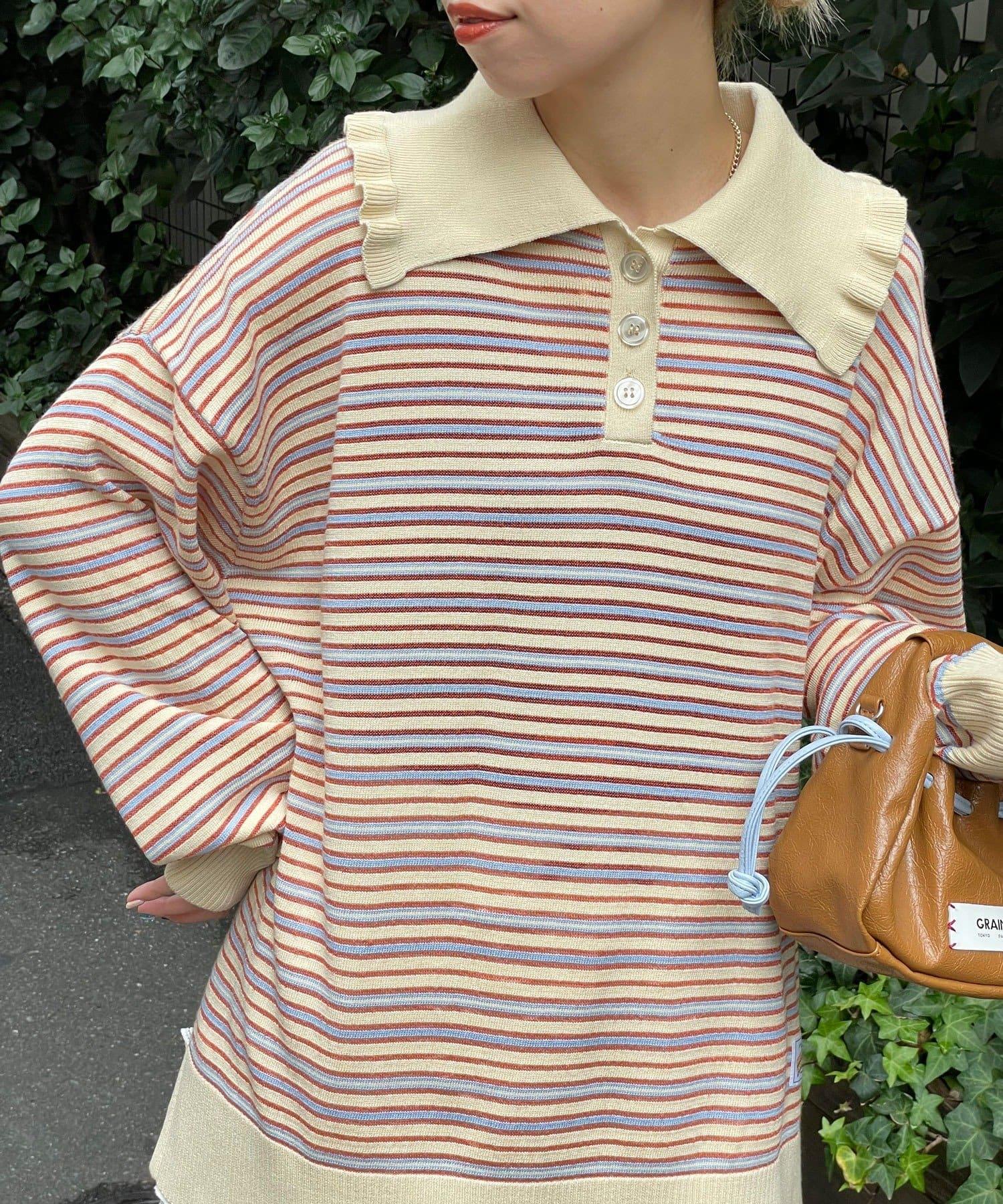 HELLO.SANFRANCISCO 大領條紋設計 POLO款 針織上衣