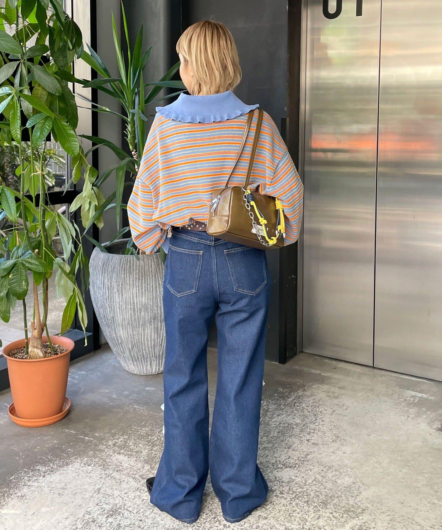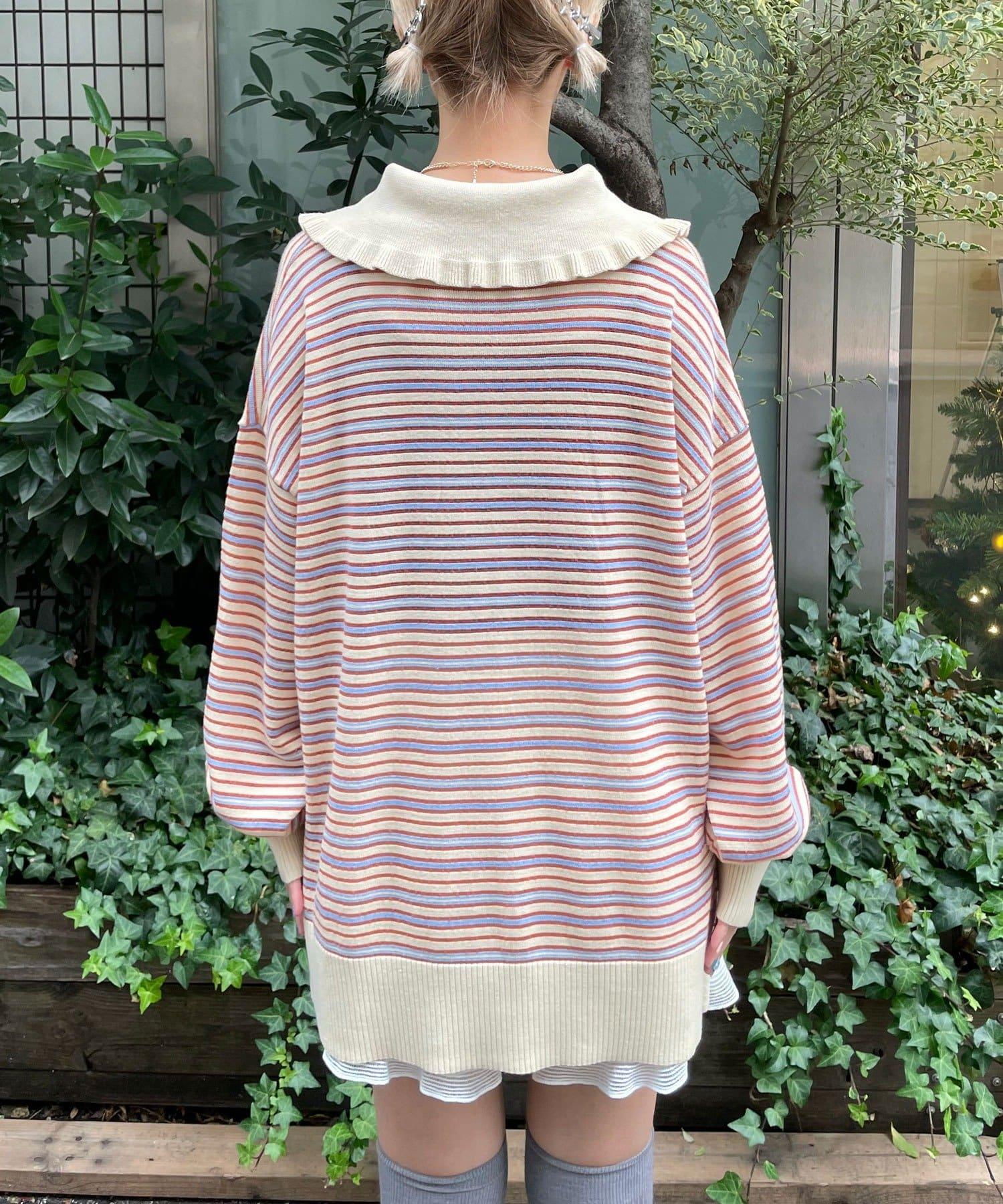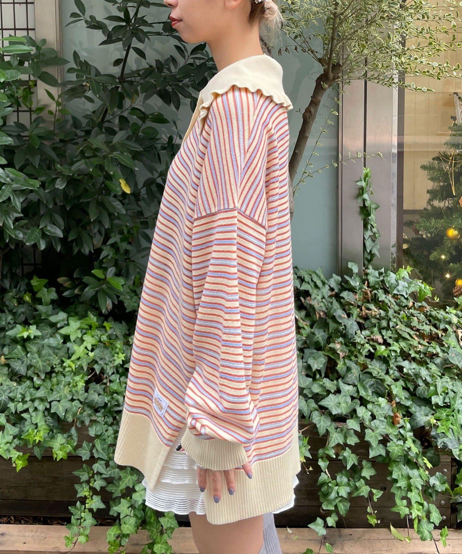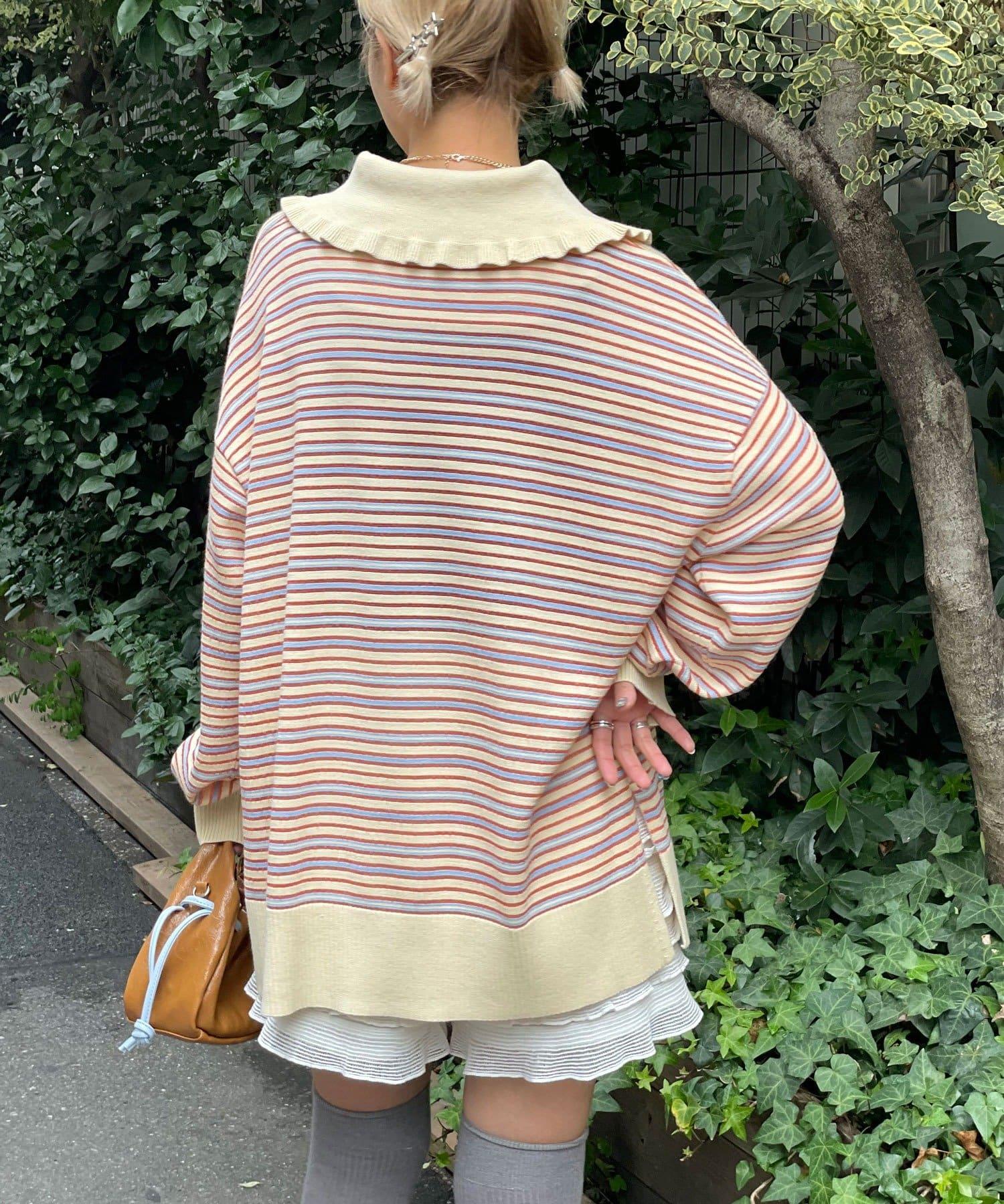 HELLO.SANFRANCISCO 大領條紋設計 POLO款 針織上衣