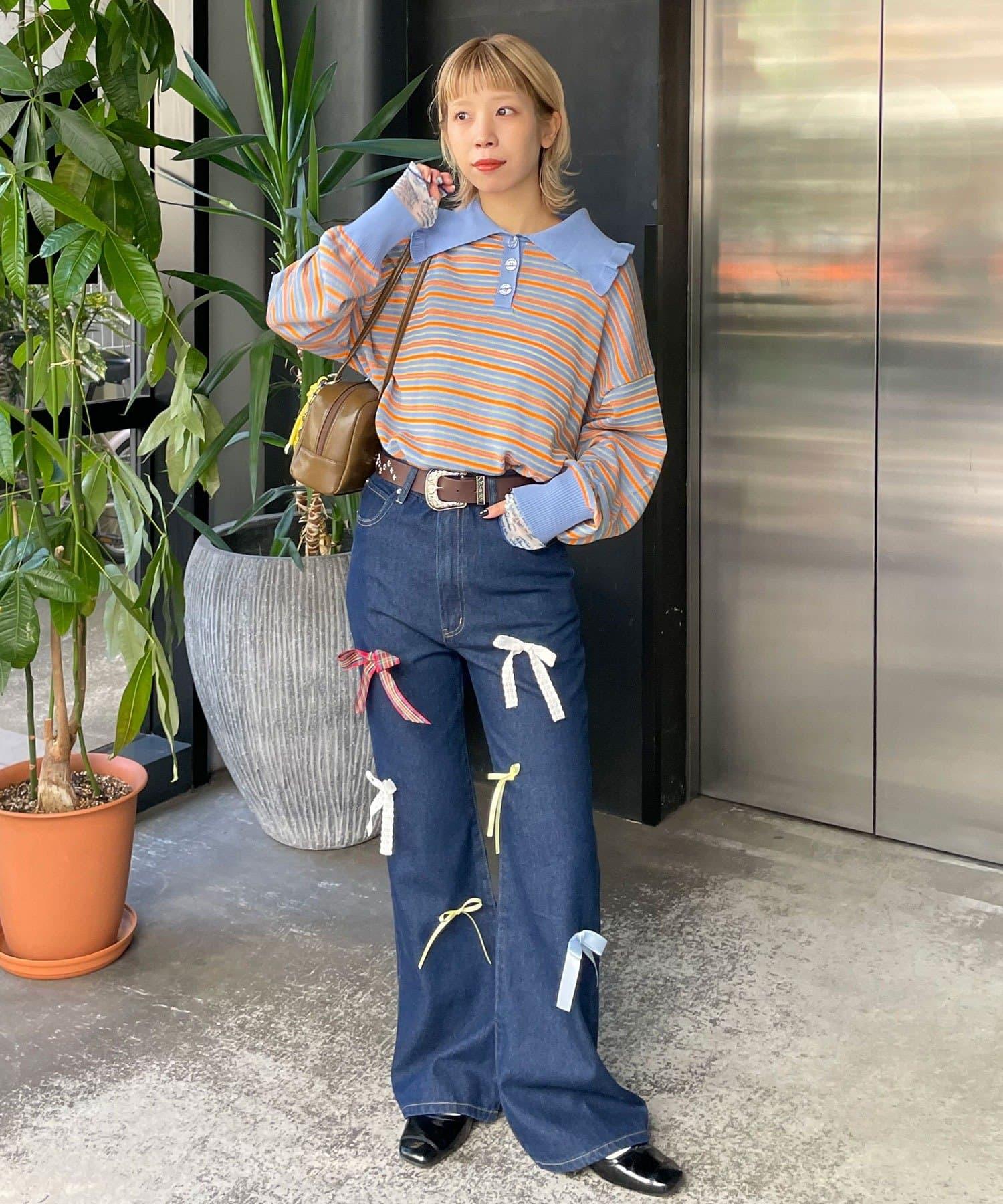搭配牛仔褲或休閒褲,打造休閒、甜美的造型。