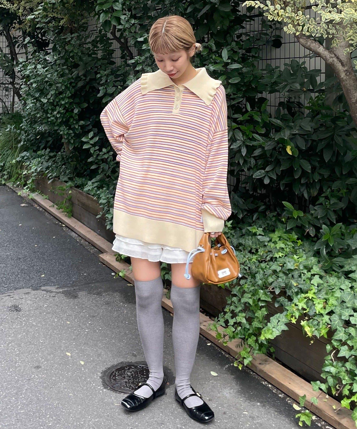 條紋 polo 針織衫,復古配色,充滿情調。