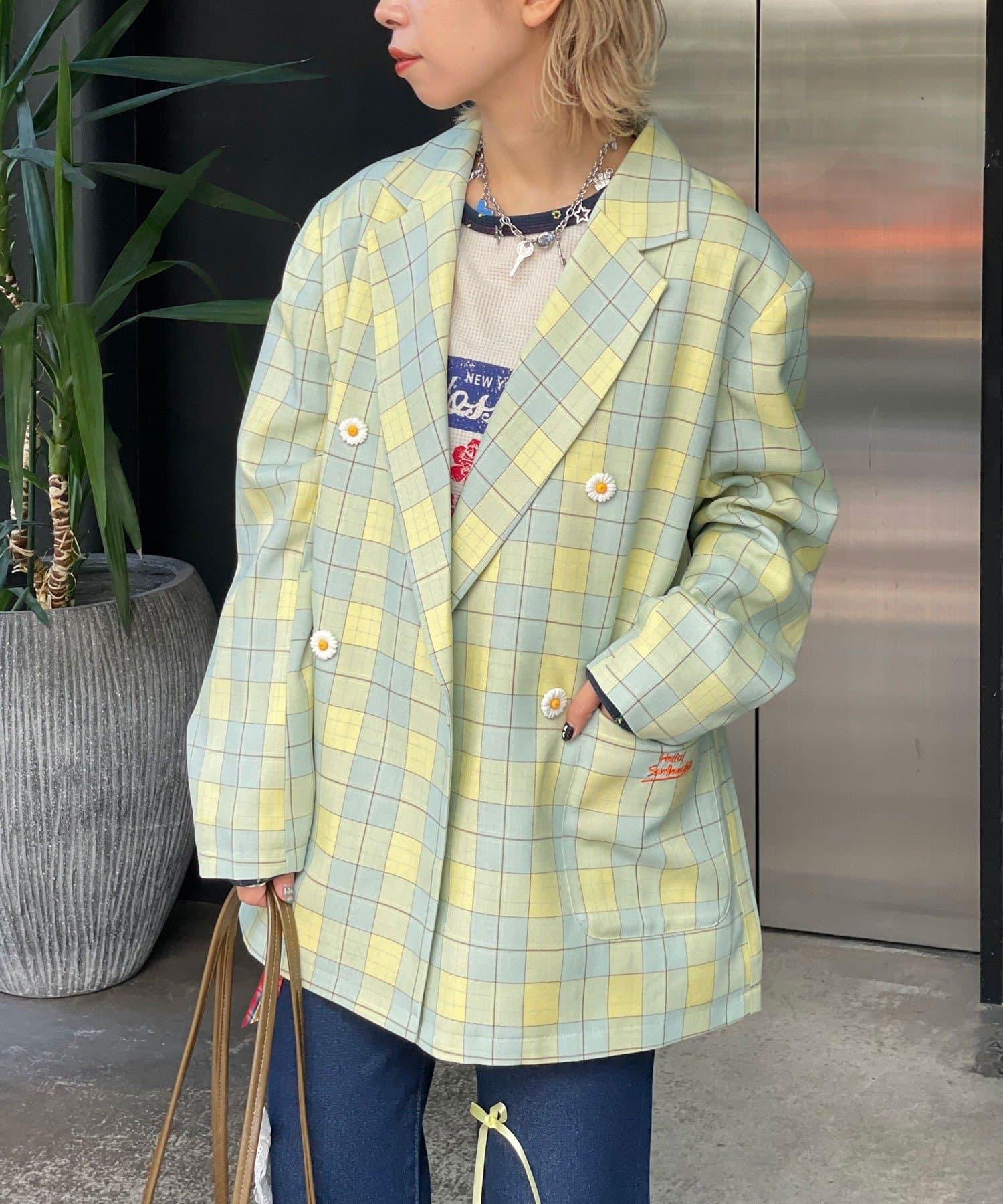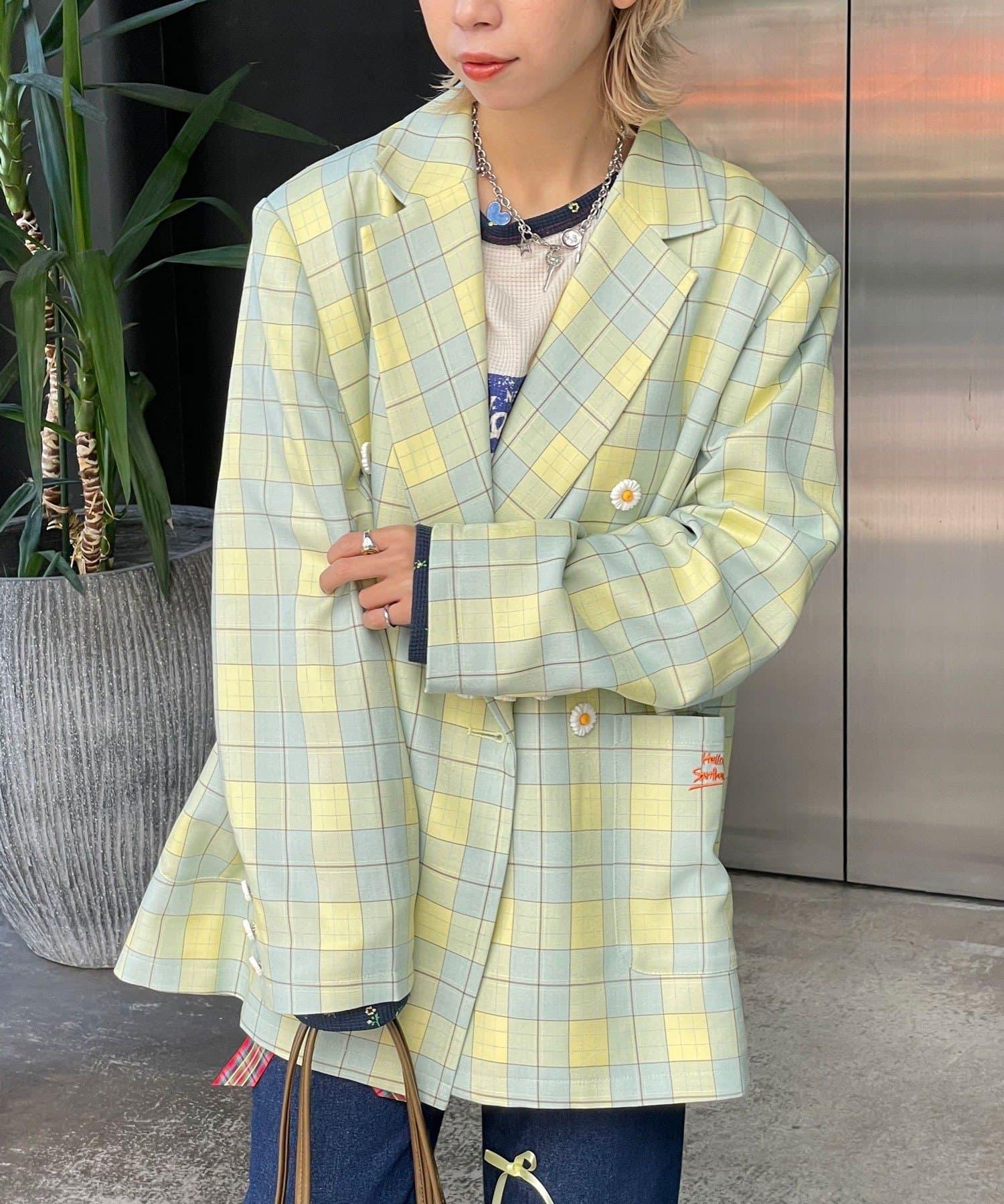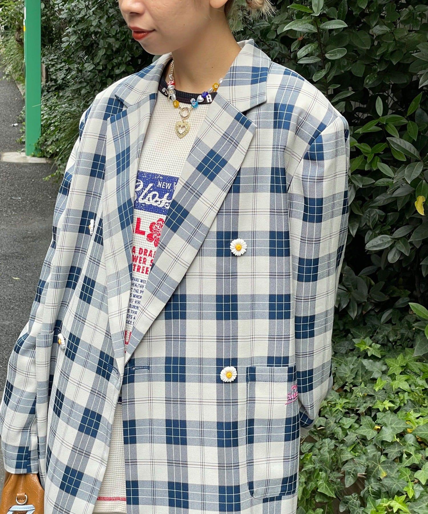 HELLO.SANFRANCISCO 花形紐扣格紋寬鬆夾克