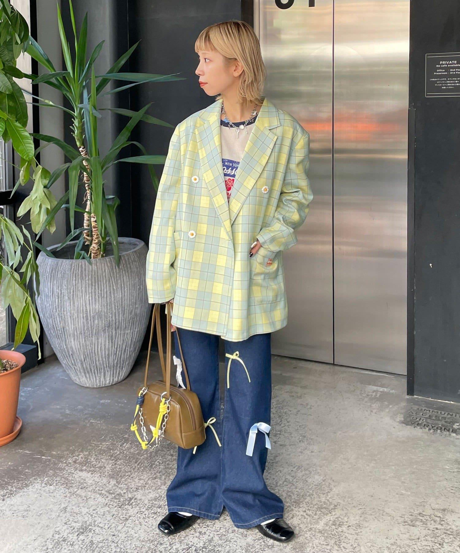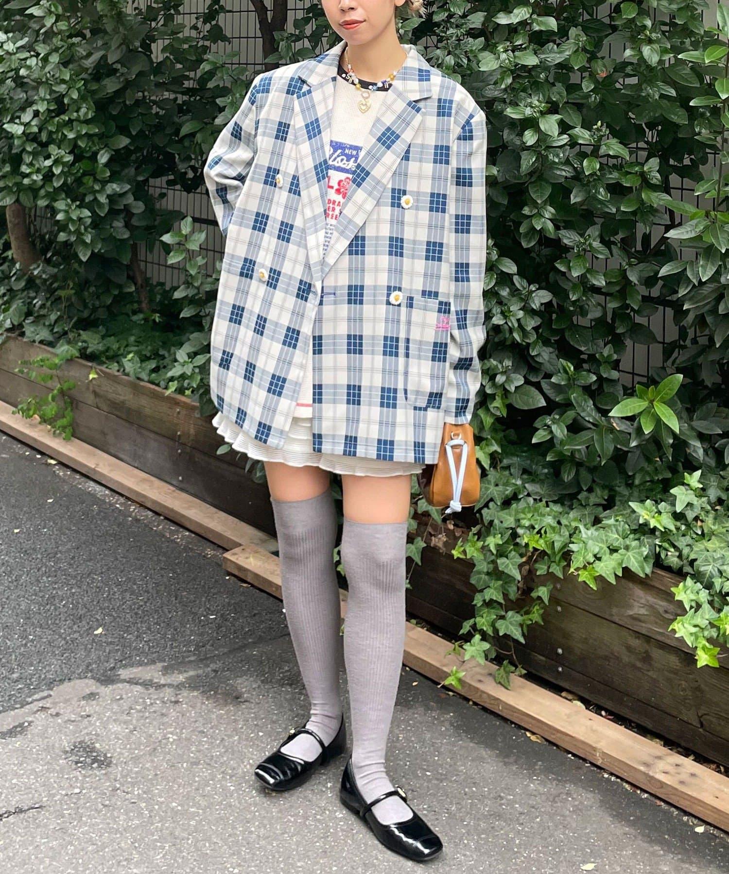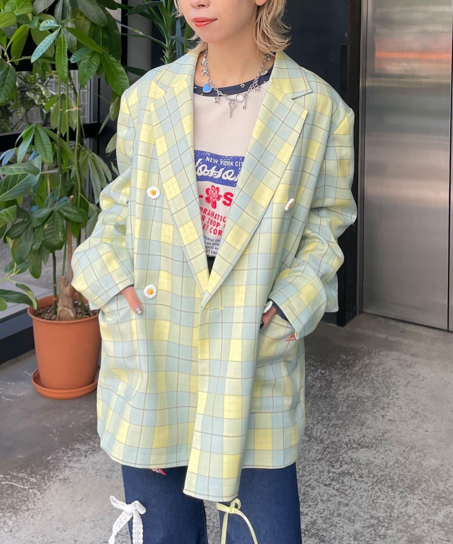 HELLO.SANFRANCISCO 花形紐扣格紋寬鬆夾克