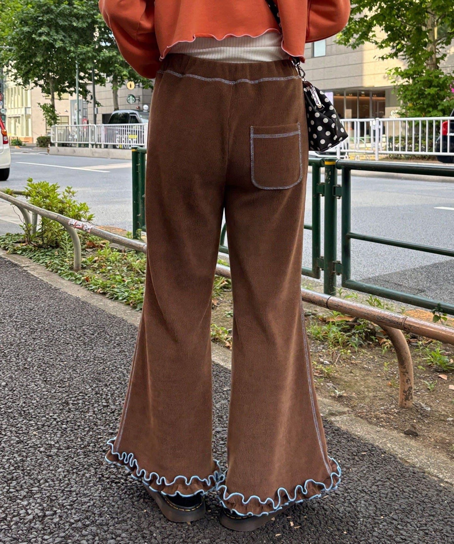 【HELLO.SANFRANCISCO/你好,舊金山】燈芯絨下襬荷葉邊喇叭褲