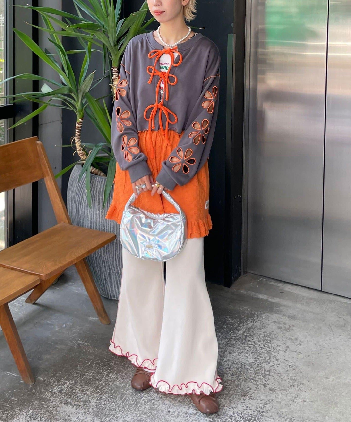 側面的絲帶細節和左側下襬上的一點品牌標籤增添了微妙的趣味感。
