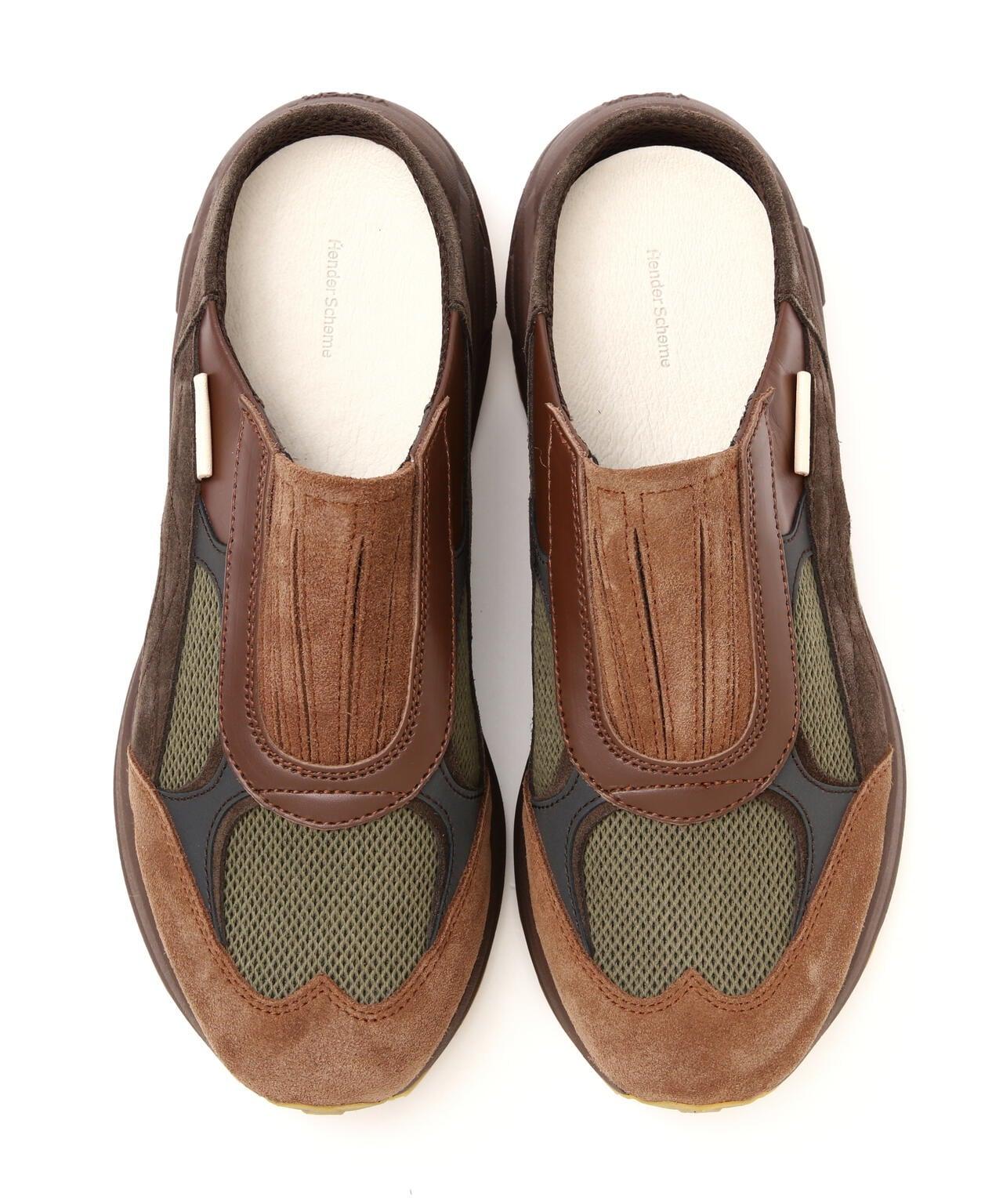 Hender Scheme/ ender schema/polar mule 混合動力運動鞋極地騾子鞋款是極地運動鞋的騾子版。它的特點是每一部分都使用了不同類型的牛皮和山羊皮。襯裡、鞋墊和鞋底採用運動鞋的概念,而鞋面則充分利用皮鞋技術,創造出一種將不同元素完美協調的新型鞋款。