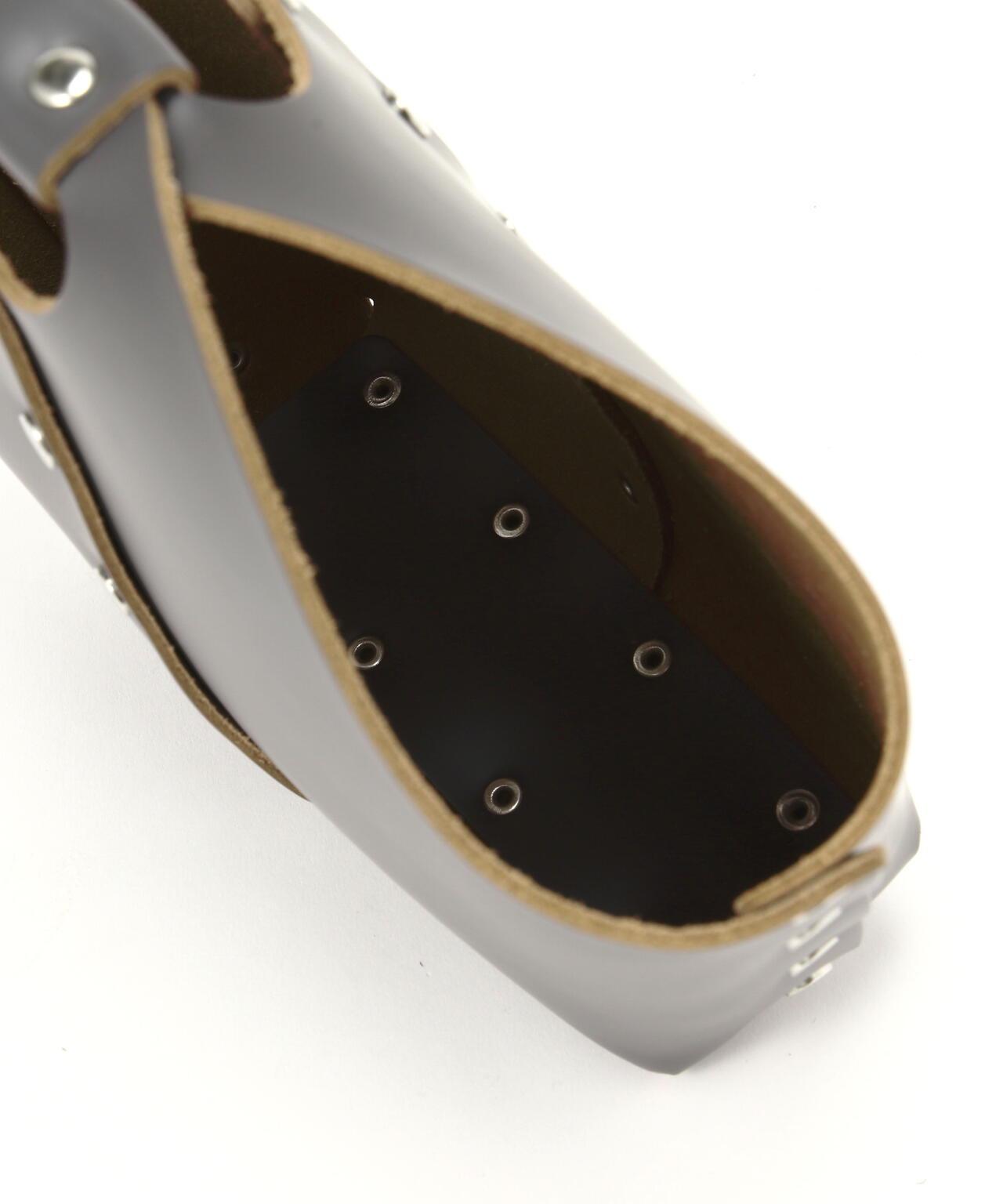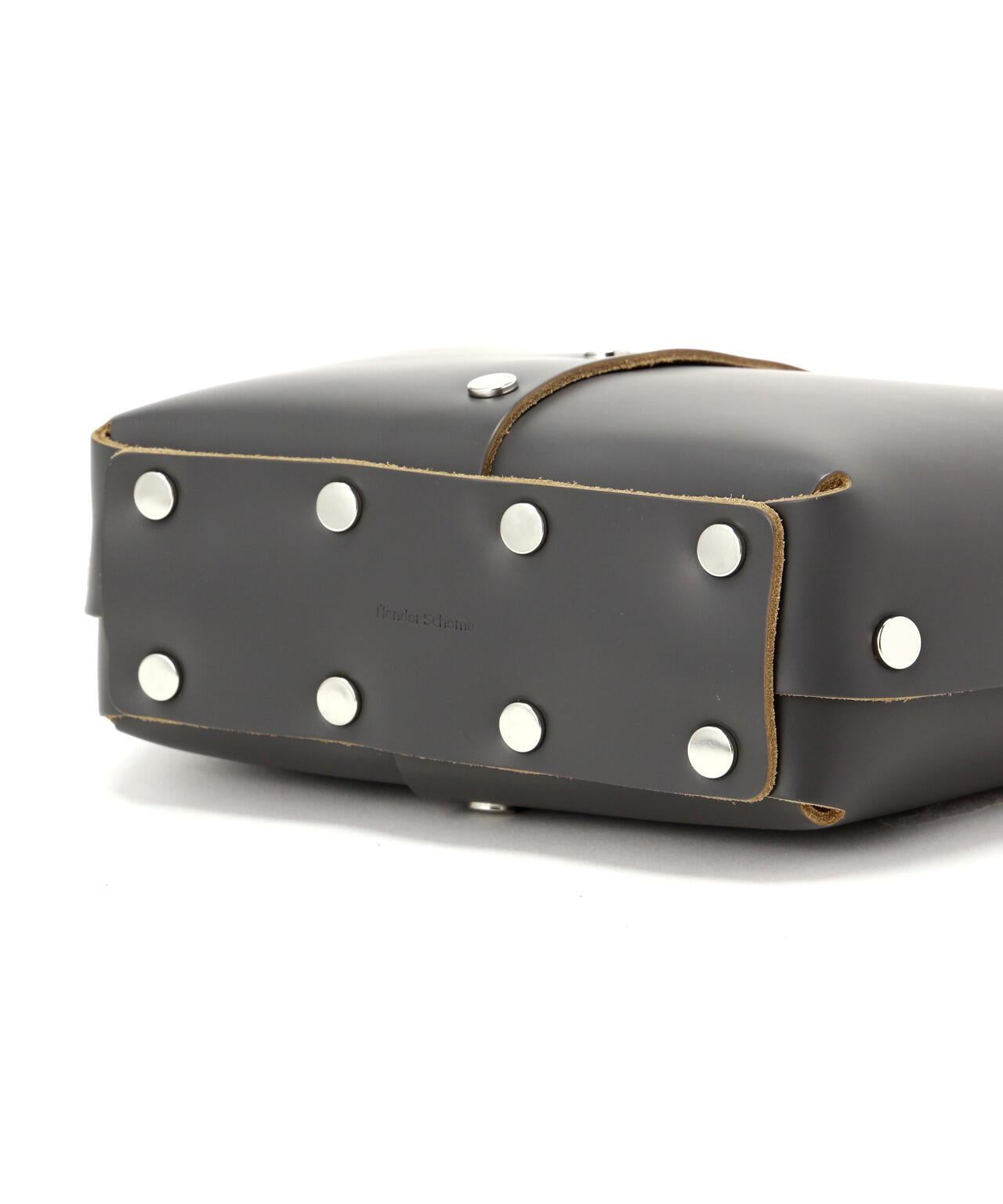 Hender Scheme/assemble cage bag small 此款產品屬於 Assemble 系列,該系列採用剪裁好的皮革,不使用縫合線,而是通過填縫的方式進行塑形和構造。這款手袋採用牛皮製成,與 Scheme 一貫的皮革品質不同,這是一種閃亮、奢華的皮革。其設計俏皮可愛,外觀令人印象深刻,通過鉚接切割皮革而不使用縫線,就像組裝塑料模型的部件一樣。