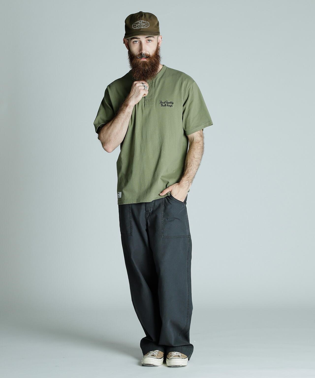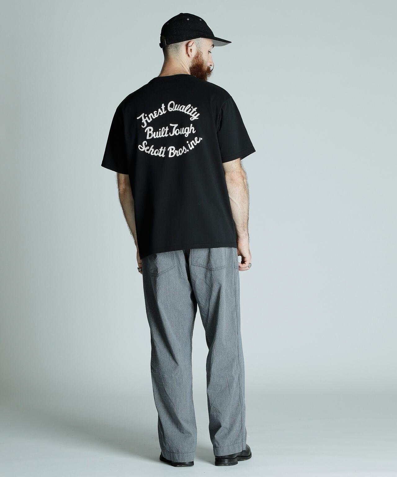 採用堅實厚實的 7 盎司紗體。硬、幹、粗糙的質地,加上只有開口紗才能帶來的蓬鬆、豐滿的手感,給人一種美國品牌的印象。採用捆綁式領口,縫製時將帶狀領口部分包裹在主體上。這樣的規格既能滿足大量使用,又不失厚實的衣身。T恤胸前繡有設計簡潔的徽標。胸前繡有精緻的刺繡,使 T 恤顯得低調而穩重。簡潔的徽標將 T 恤的設計串聯在一起,而刺繡的細節處理則給人以高品質的印象,使其成為一件可以長期穿著的服裝。材質:100% 棉 原產地:中國 [Schott / 肖特] 騎手夾克的代名詞。