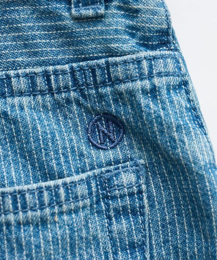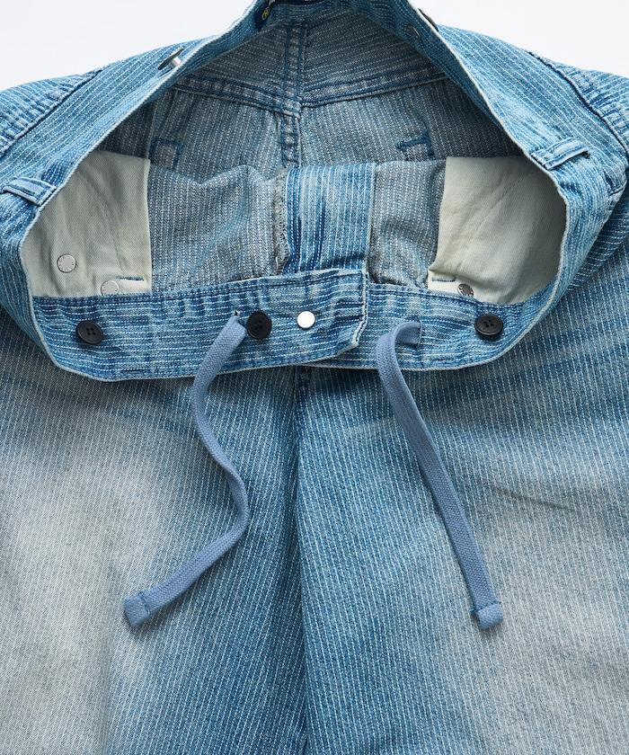圍兜可拆卸,腰部有轉軸,因此也可單獨作為褲子穿著。