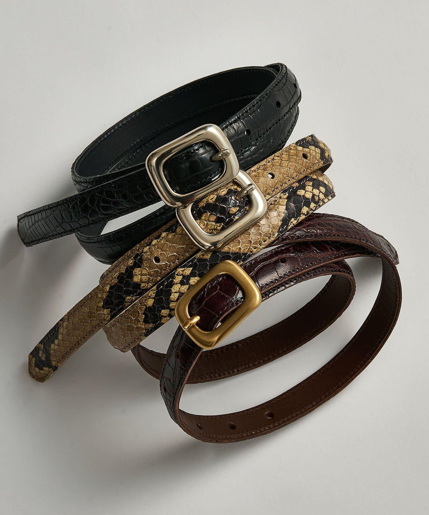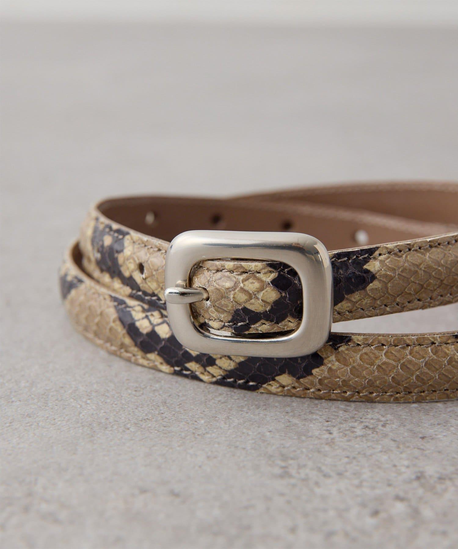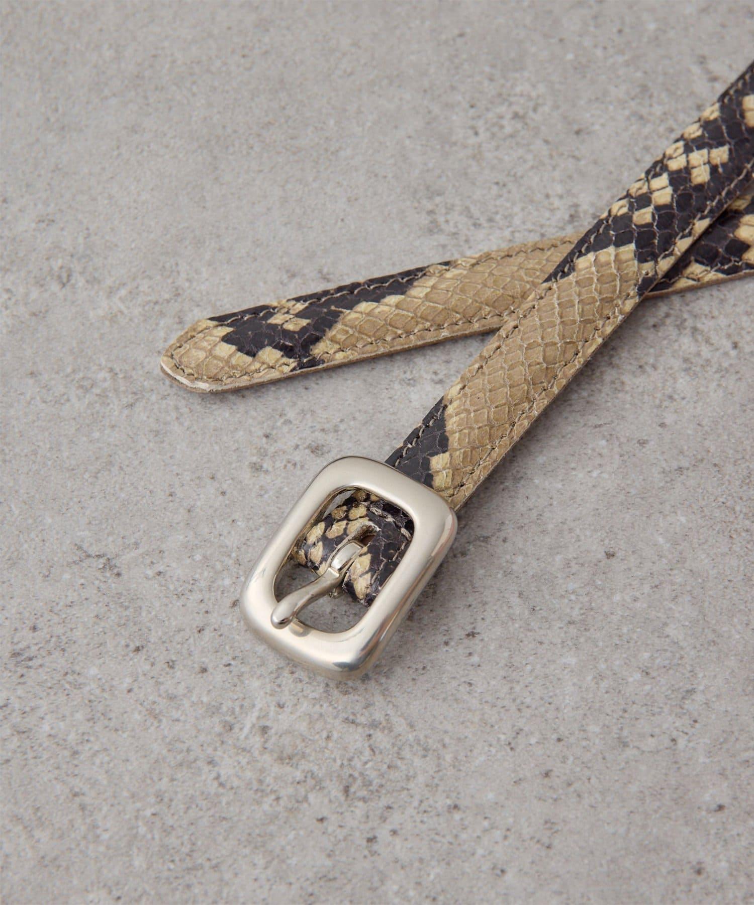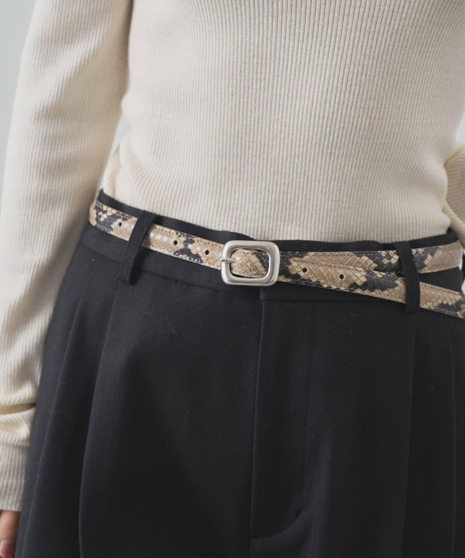 窄腰帶由模壓蟒蛇皮製成,特別注重材料的使用。