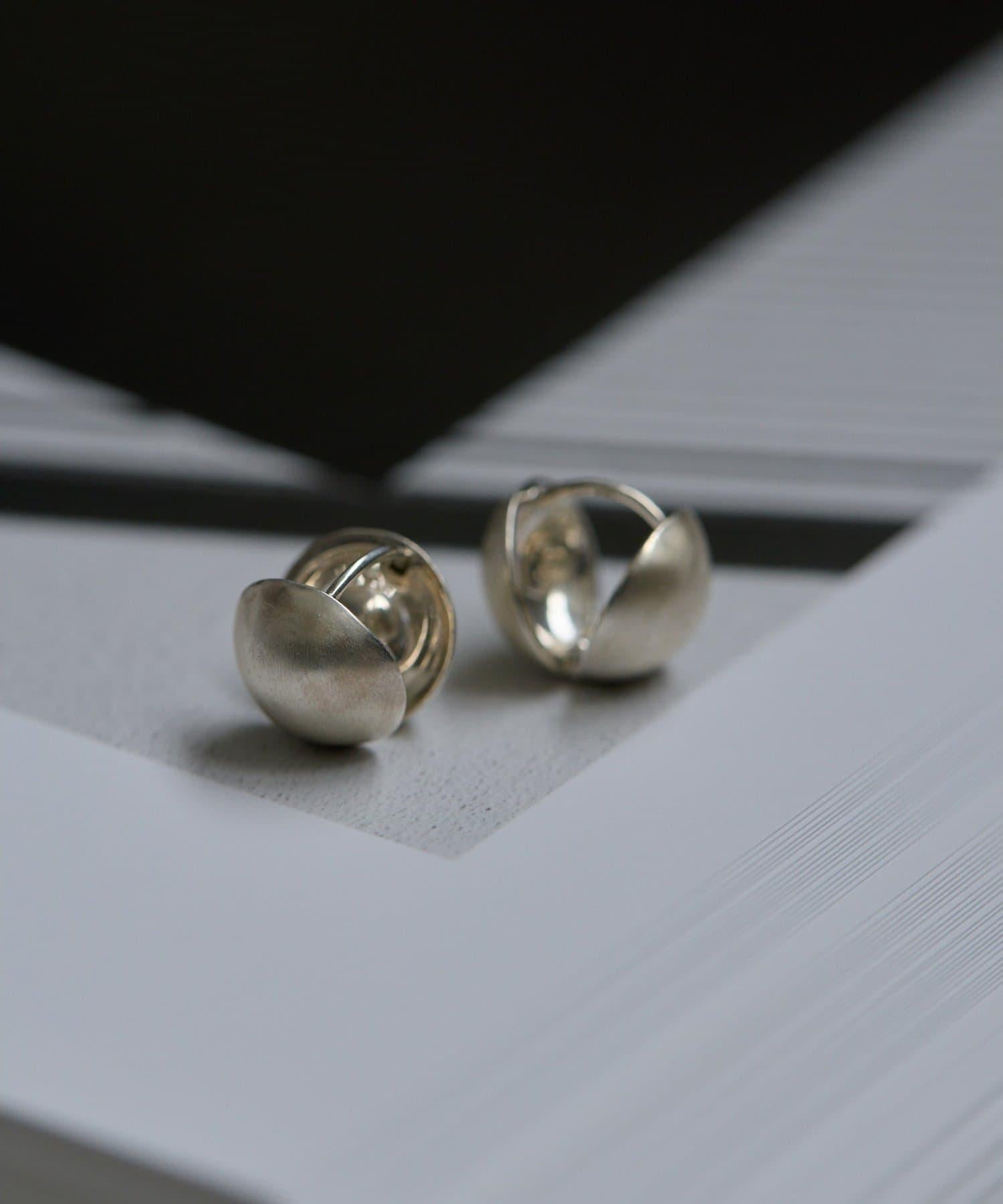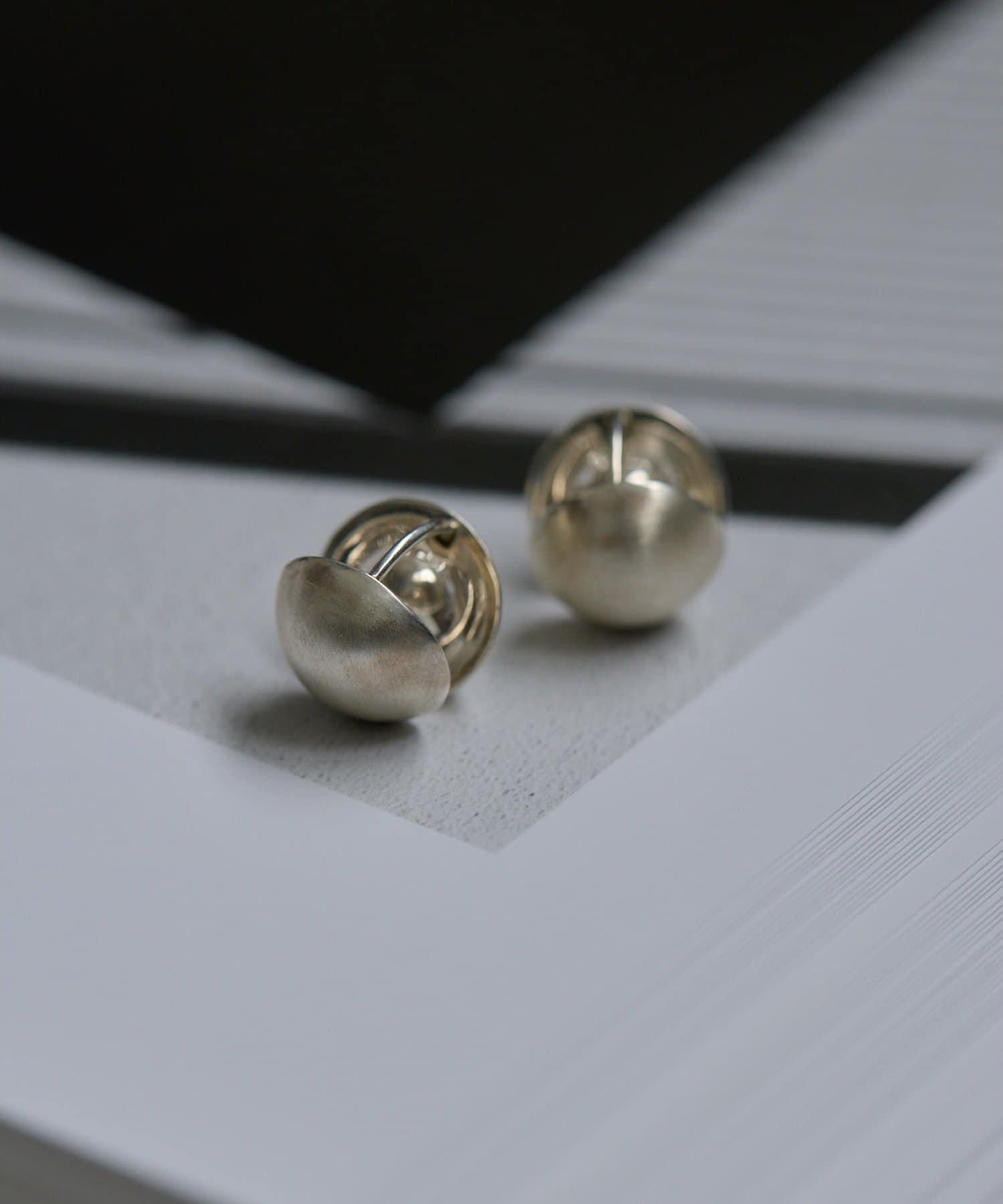 極簡風格的球形耳環,光澤度低,髮絲細膩。