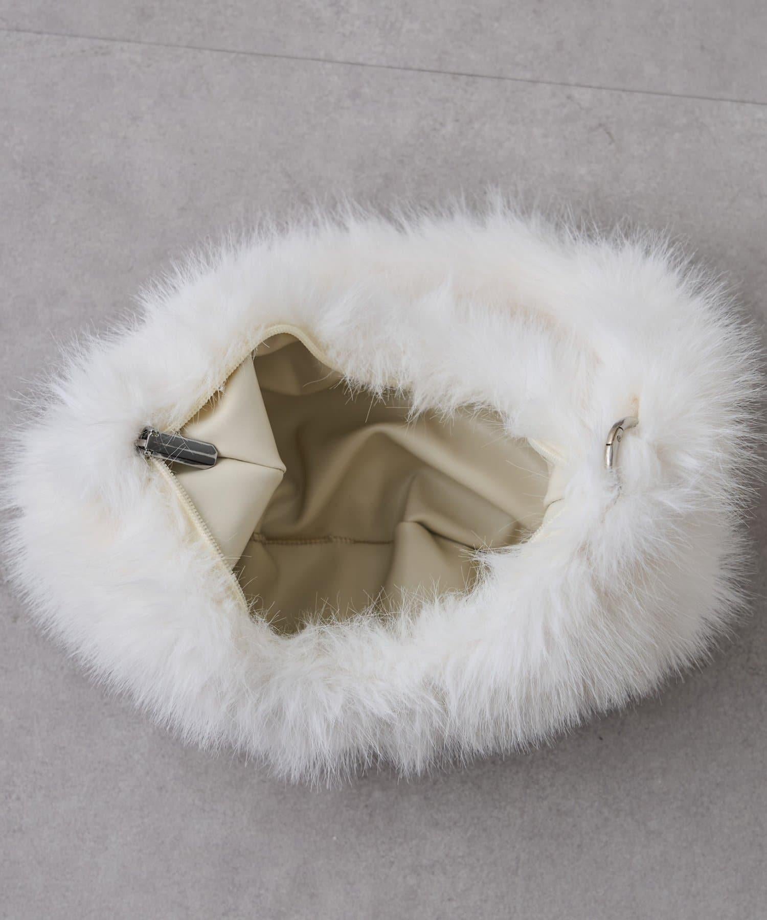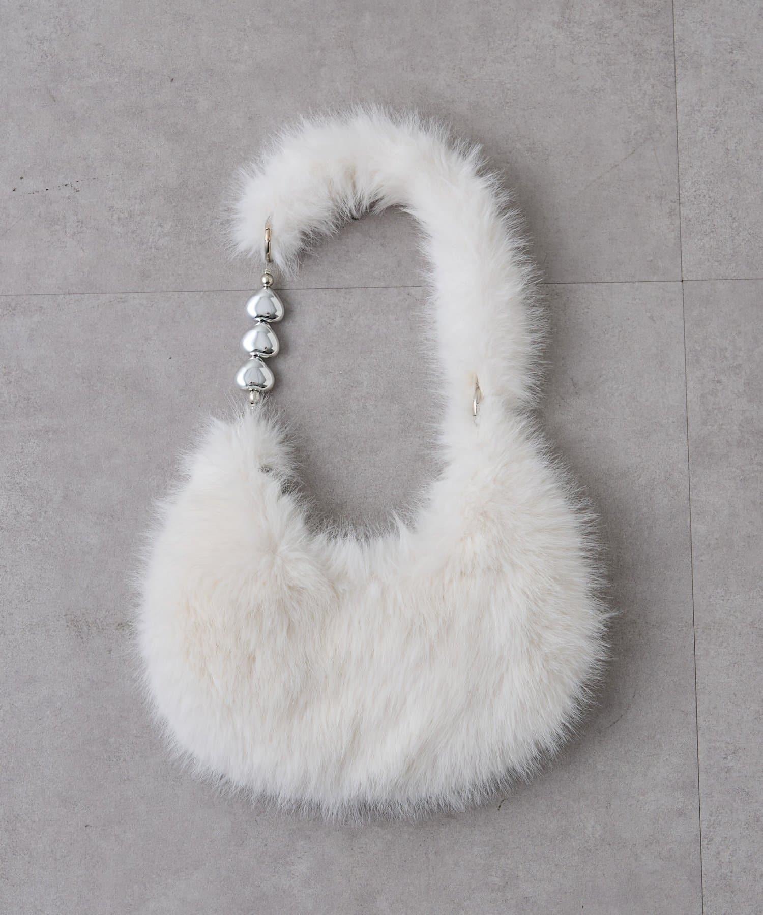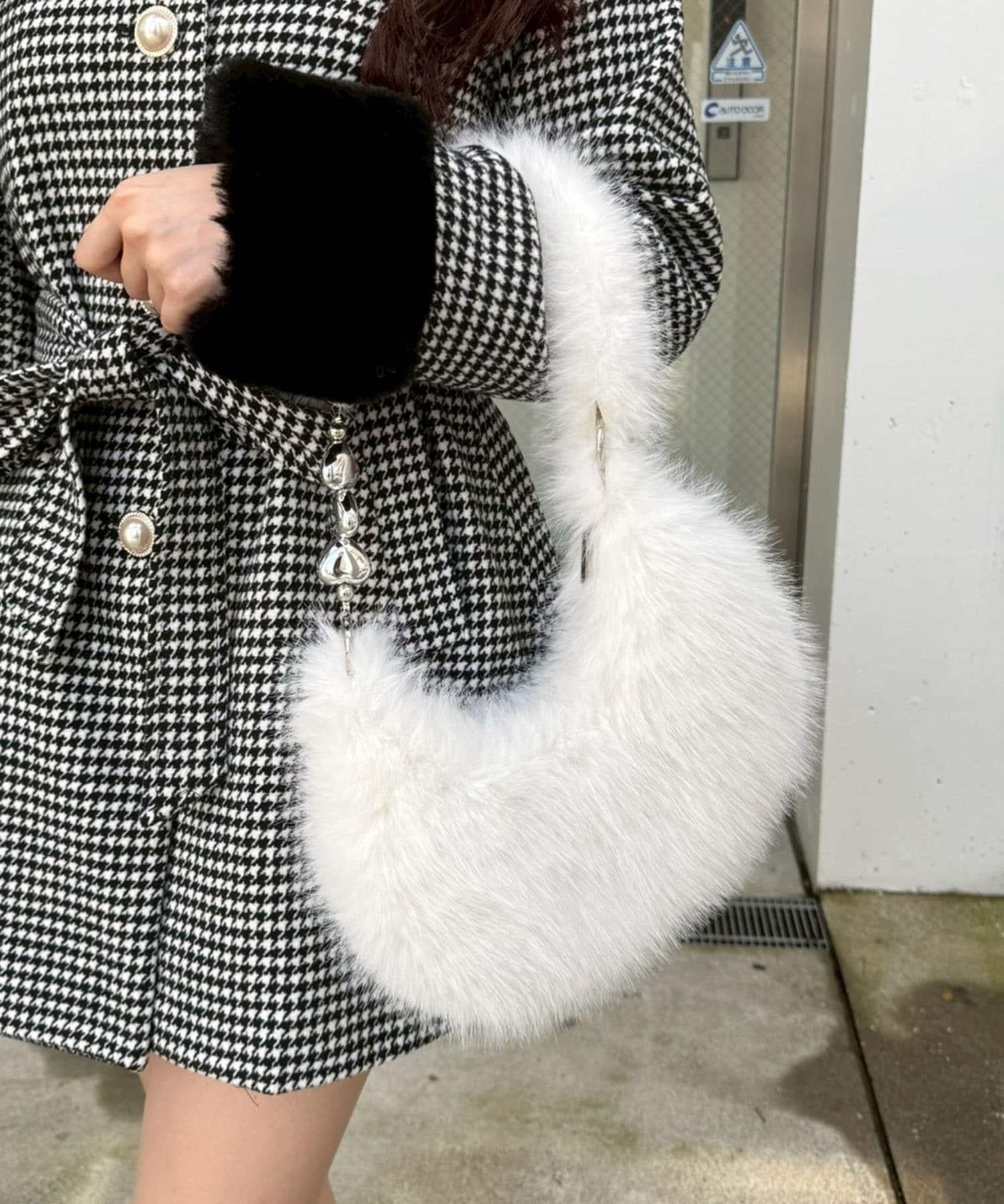 不對稱的手柄設計讓這款皮草包時尚感十足。