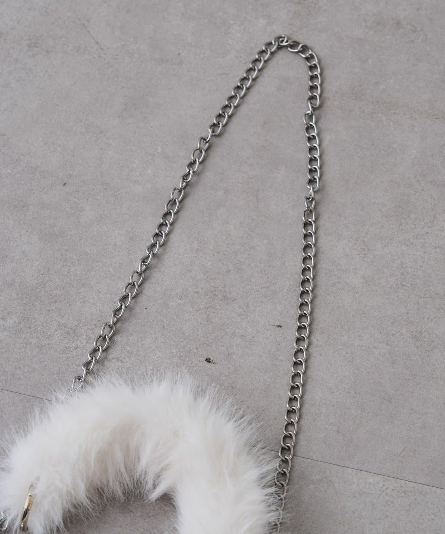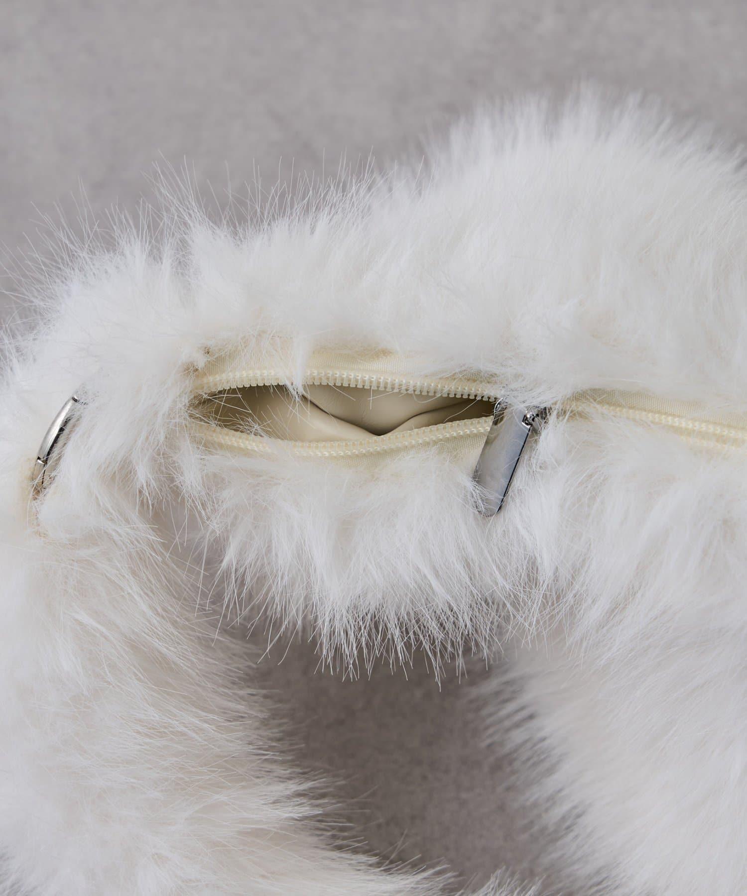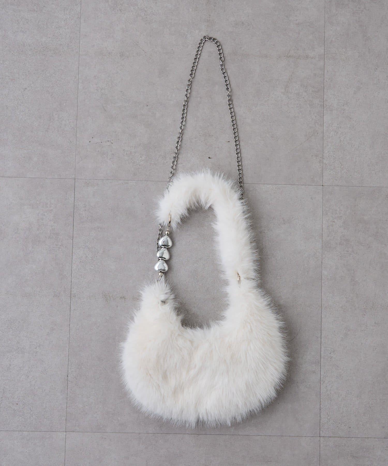 不對稱的手柄設計讓這款皮草包時尚感十足。