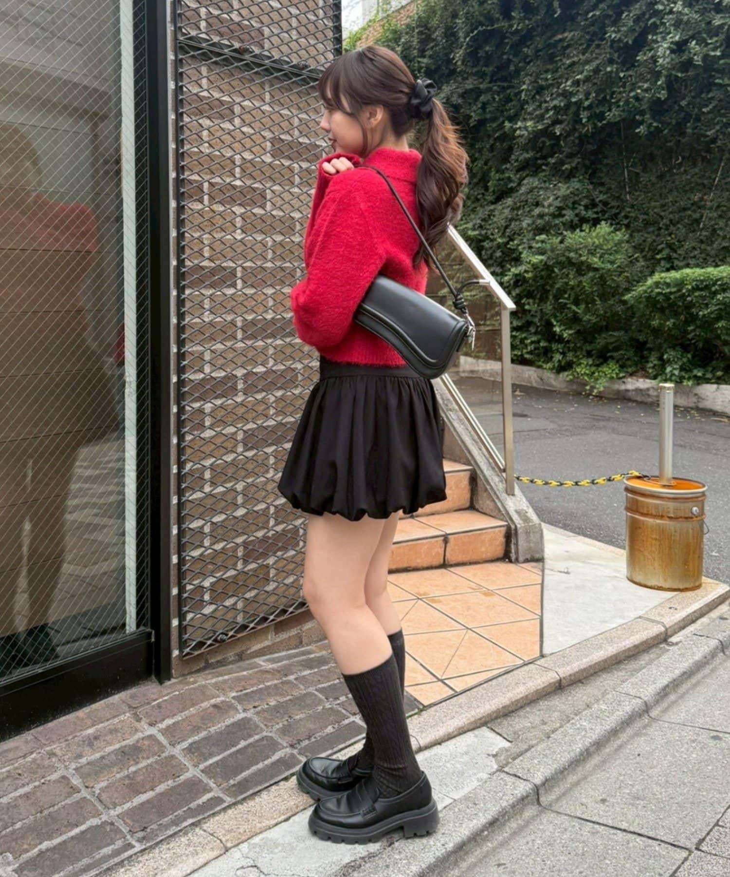 可作為帥氣雙裙上衣穿著的針織上衣,非常適合冬季出遊。
