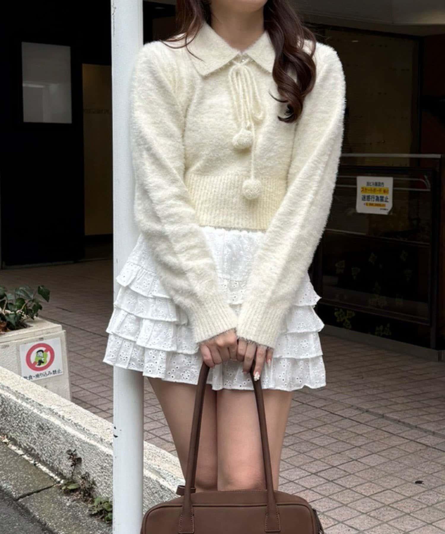 絨球絲帶很可愛!秋冬季 Polo 針織衫。