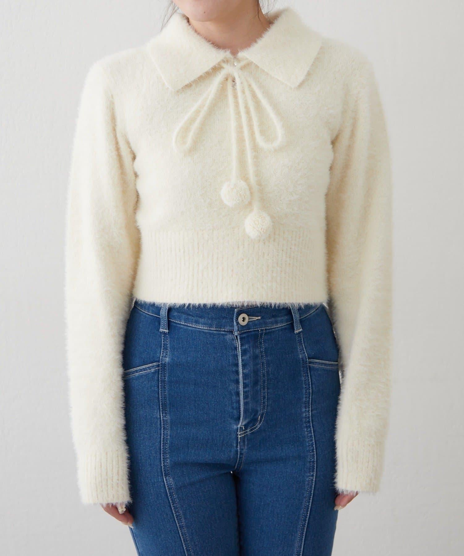 【HolidayCollection】羽毛裝飾針織POLO衫