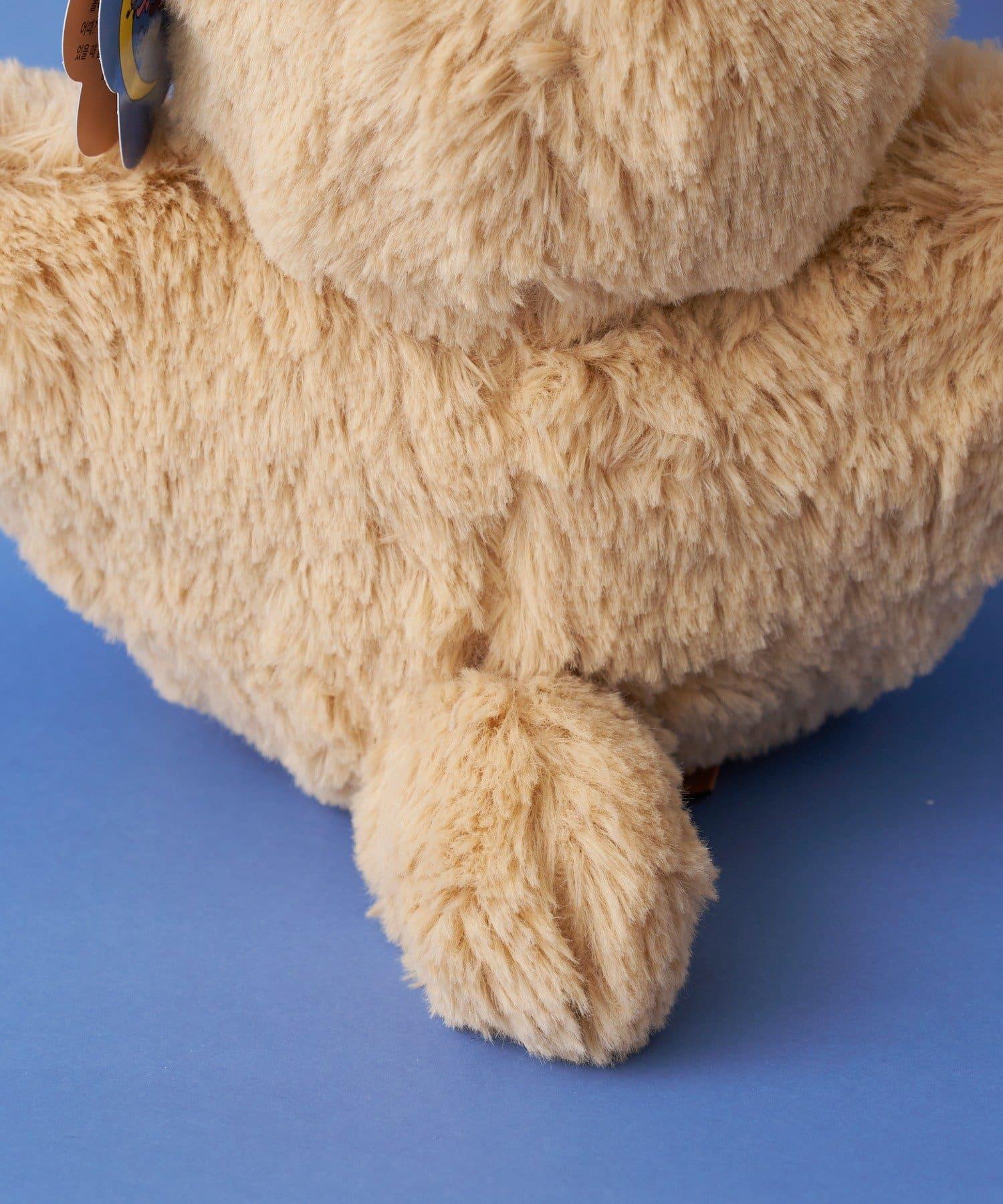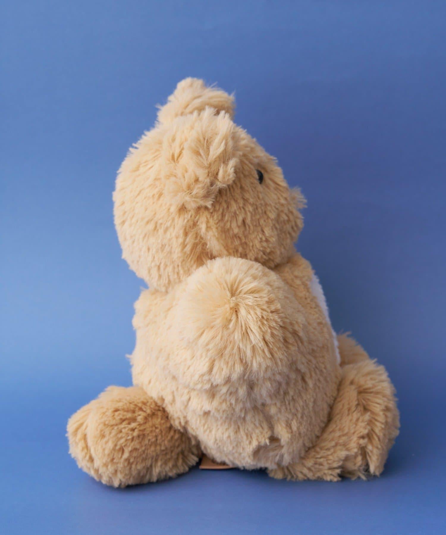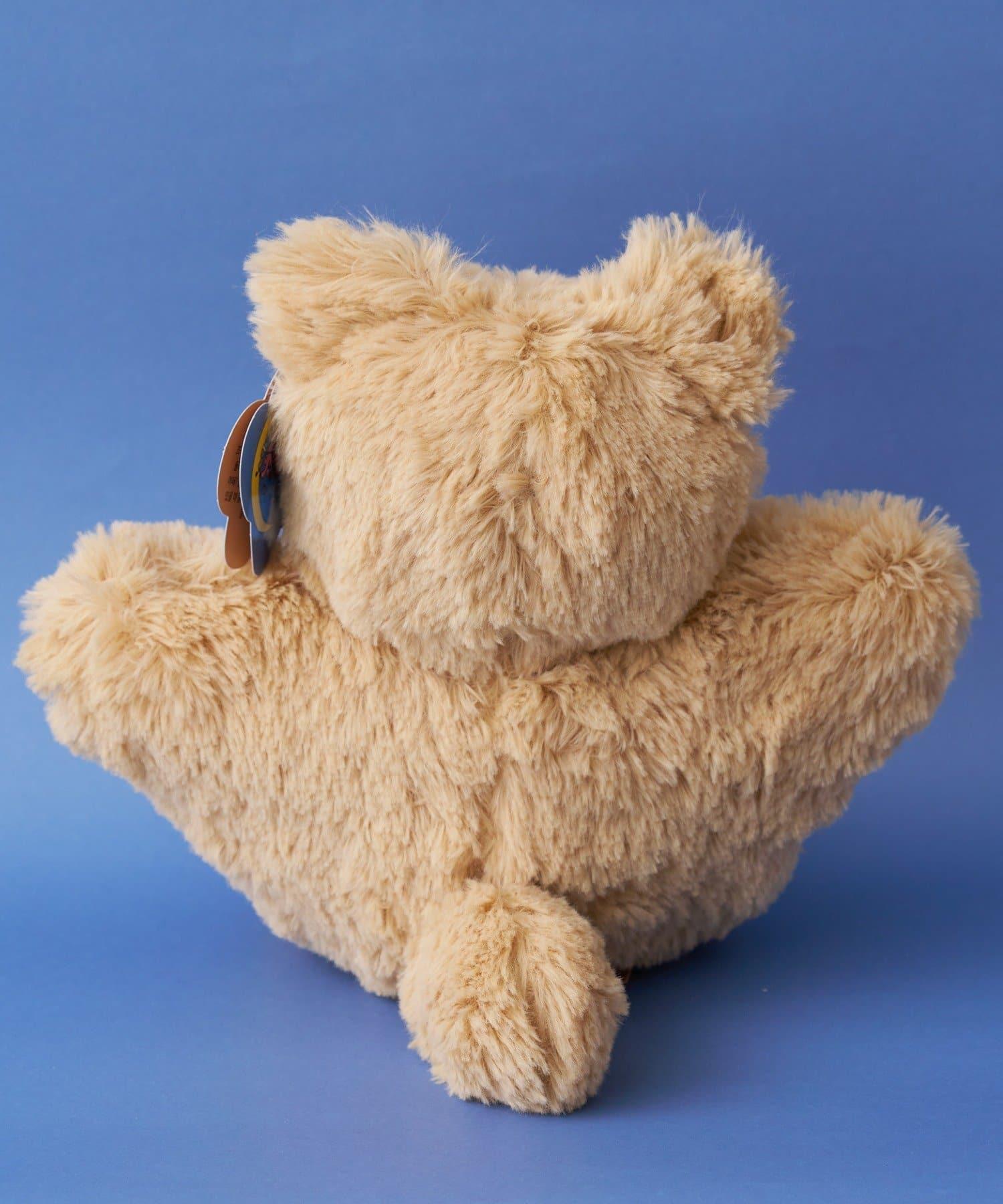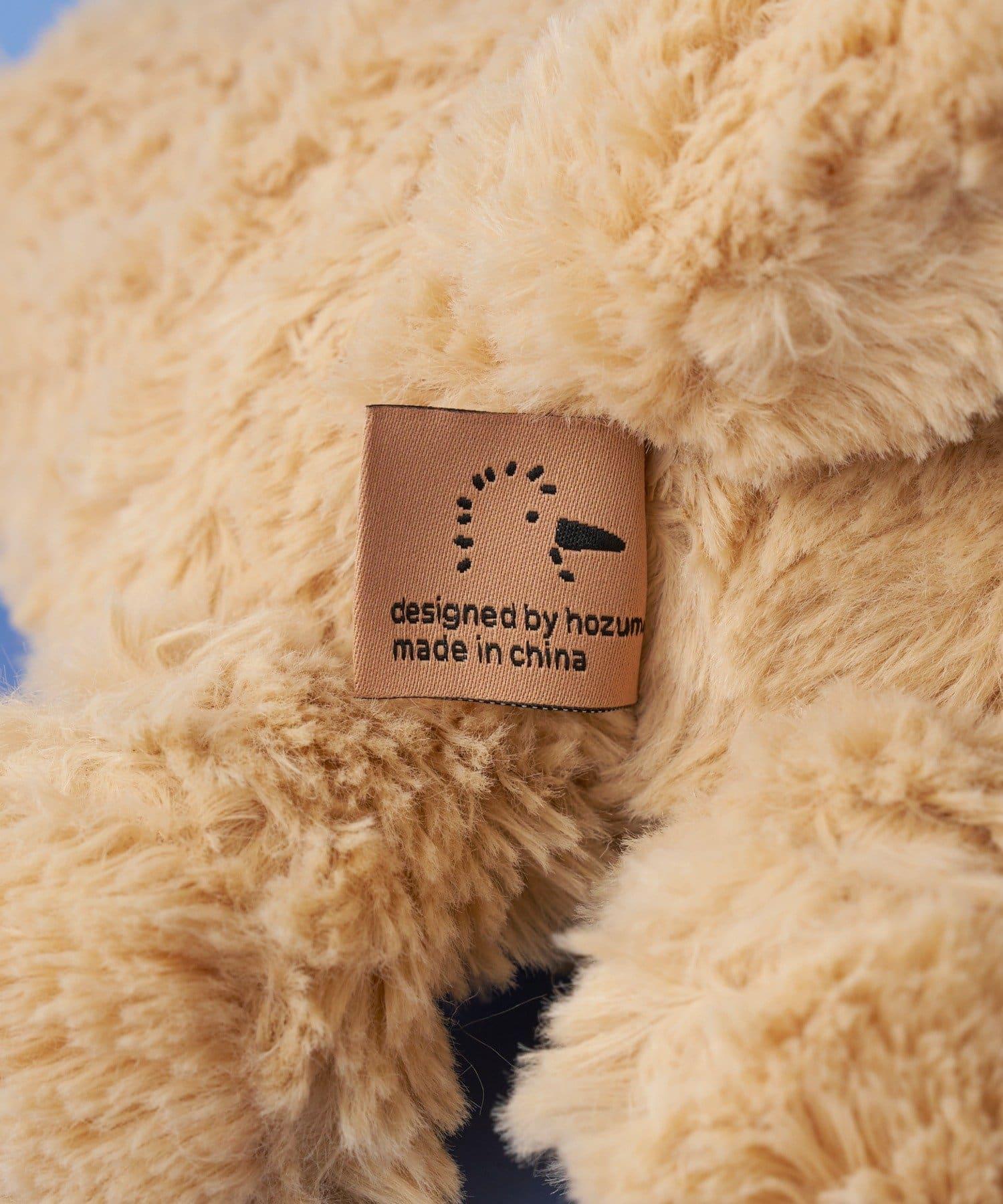 這是一隻造型獨特的毛絨熊。標籤內有一張圖,介紹了這隻小熊的特點。