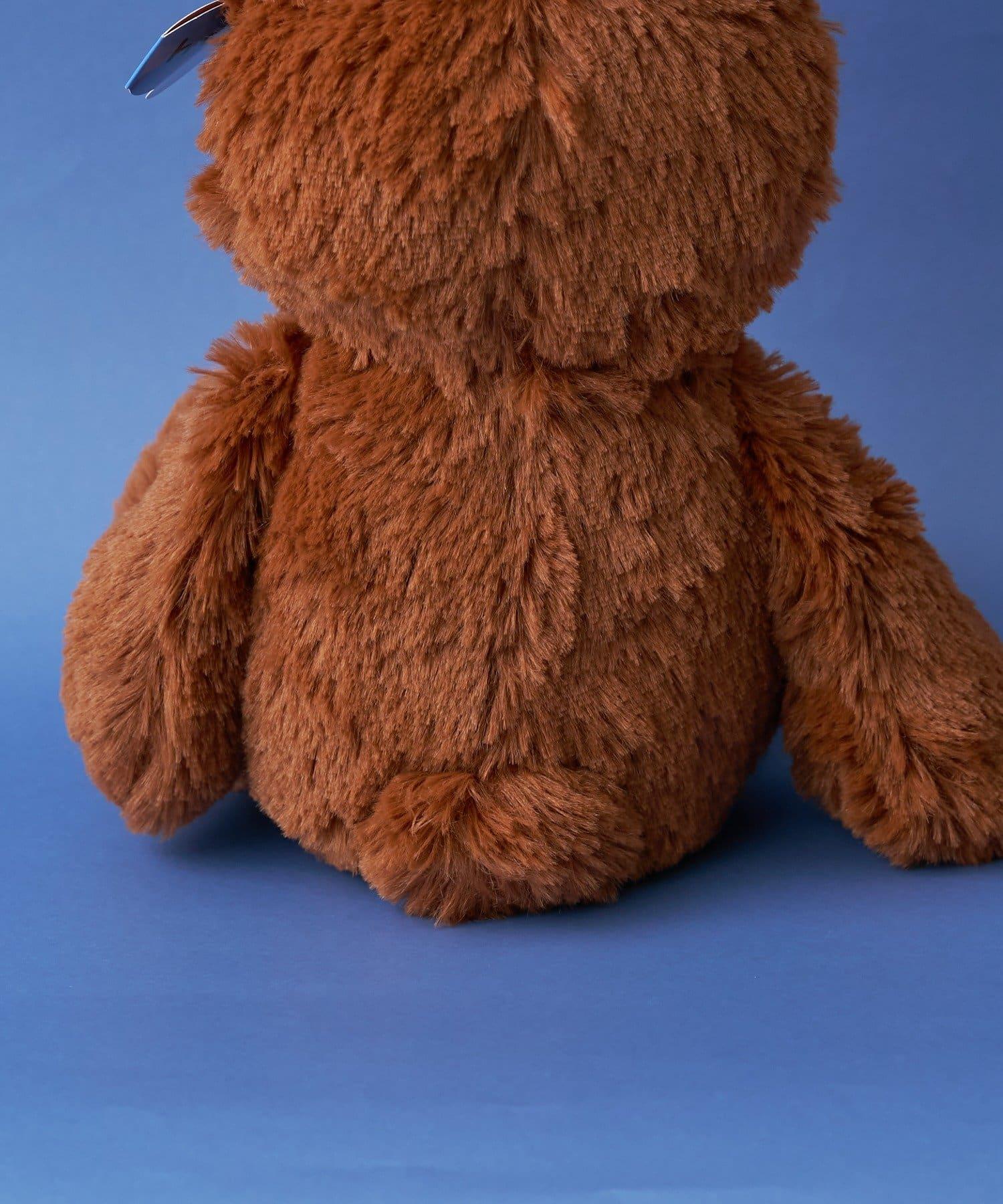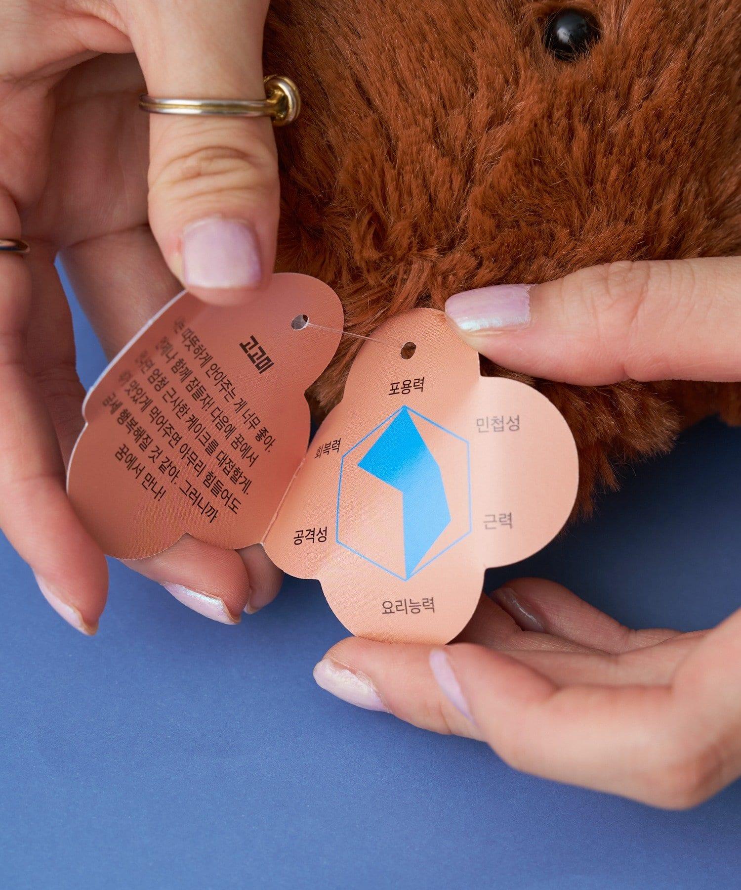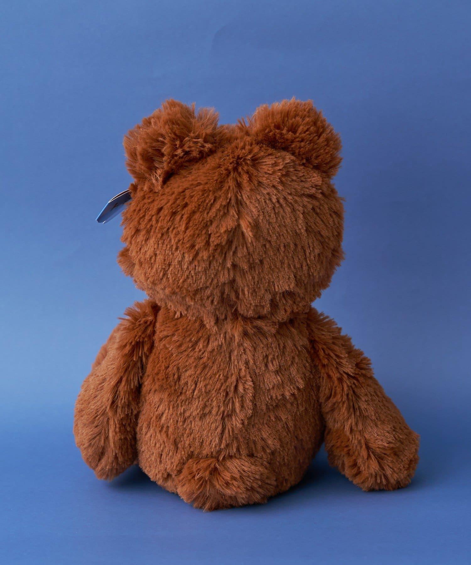 這是一隻可愛的毛絨熊。標籤內標明瞭這隻小熊的特徵。